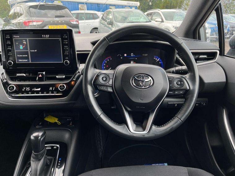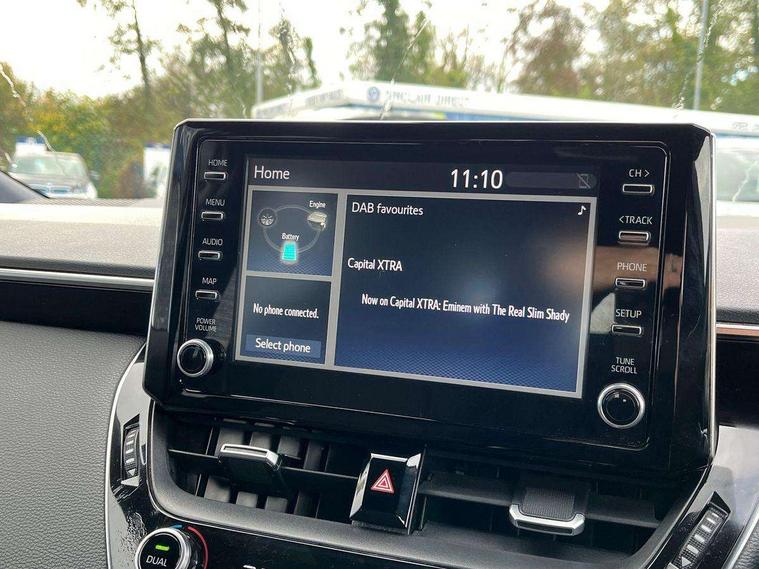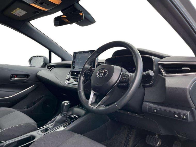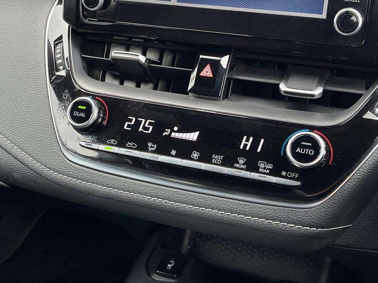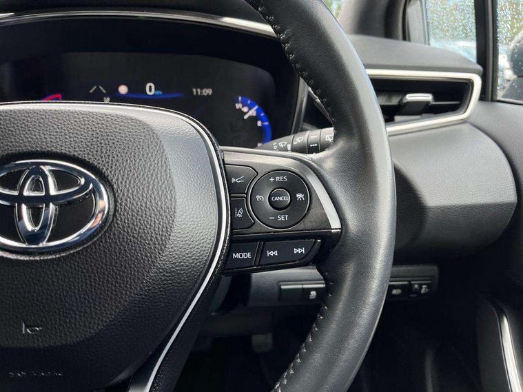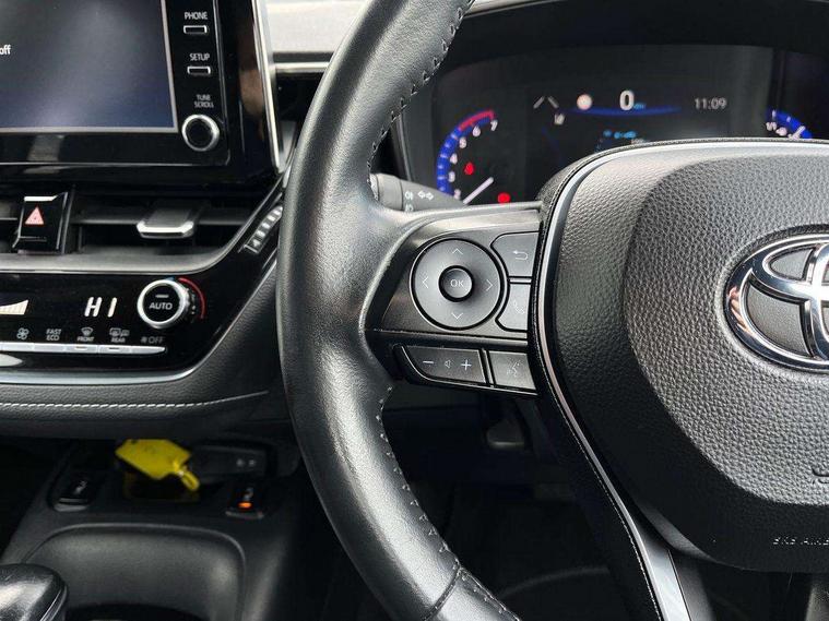 7" Multi information display screen, Bluetooth telephone connectivity, Connected car functionality upgrade, tracker, remote status and e-care, Dynamic radar cruise control (with RSA) including switch on steering wheel, E-call, Electrically assisted power steering, EV drive indicator, Lane Departure Alert (LDA) switch on steering wheel, Memory on adjustable speed limiter, Push button start, Reversing camera, Smartphone integration with Apple CarPlay and Android auto, Gasoline particulate filter, Vehicle Stability Control (VSC), 6 speakers, 8" Touchscreen with MM19 Multimedia system and voice recognition, AM/FM radio, DAB Digital radio, USB and Aux in connectors + 12V front outlet, Anti-jam protection on power windows, Auto up and down function on all power windows, Automatic headlights with high beam assist, Black metallic surround on lower front grille, Black toyota logo in front, Black window frames, Body colour rear spoiler, Body coloured bumpers, Body coloured door mirrors, Body coloured outside door handles, Follow me home headlights, LED daytime running lights, LED front fog lights, LED Headlights, LED High mounted stop light, Manual day/night rear view mirror, Power adjustable heated door mirrors, Power front windows, Power rear windows, Rain sensor, Rear side wing doors, Rear window defogger, Rear window wiper, Shark fin antenna, Time adjustment on intermittent wiper, Turning signal integrated indicators in door mirrors, Unique lower skirt, Unique side rocker with black insert, UV-filter on driver and passenger windows, 3 rear headrests, 3 seat bench in 2nd row, 3 spoke leather steering wheel + gear knob, 60/40 split folding rear seat, Adjustable speed limiter switch on steering wheel, Audio, multimedia and telephone switches on steering wheel, Boot light, Centre room light, Clean air filter, Driver and front passenger personal light, Driver and passenger assist grip, Driver and passenger sun visor with mirror and light, Dual zone automatic air conditioning with ECO mode switch, Fabric armrests, Front and rear cup and bottle holders, Front door pockets, Front head restraints, Front passenger seat, Heated driver and front passenger seats, Illuminated entry system in room lamp, ISOFIX seat fixing (2 fixings on rear outer seats), Leather gear shift with satin chrome on gear shift console, Manual height adjustable for driver and front passenger seat, Parcel shelf, Passenger seat back pocket, Pollen filter, Power adjustable lumbar support on driver seat, Power window switches with satin chrome inserts, Quilted fabric upholstery with grey stitches seats, Rear armrest with 2 cupholders, Rear passenger coat hooks (2), Satin chrome inside door handles, Shopping bag hooks in luggage compartment, Sliding armrest on centre console box, Slow opening glovebox with lights, Tilt/telescopic steering column, Voice recognition switch on steering wheel, Whiplash Injury Lessening (WIL) feature (active headrest) for seats, Toyota safety sense 2 pack - Corolla, 3x3 point rear seatbelts, Adjustable driver and front passenger seat belt extender to top anchor point, Anti lock braking system + Electronic brake force distribution, Brake assist function, Child locks on rear doors, Downhill Assist Control (DAC), Electronic parking brake, Emergency brake light signal (EBS), Front passenger airbag on/off switch, Front seatbelt reminder, HAC - Hill start assist control, Rear seat belt reminder, Seatbelt pretensioners and force limiters, Supplemental restraint system (SRS) 7 airbags - dual driver, dual side curtain, side impact and driver knee airbags, Traction control, Tyre pressure warning system, Acoustic vehicle alert system (AVAS), Alarm with motion sensor and immobilizer, Remote central locking + deadlocks, Satin chrome dash trim, Soft touch texture on upper dashboard, Unique wheel finish with red wheel cap,