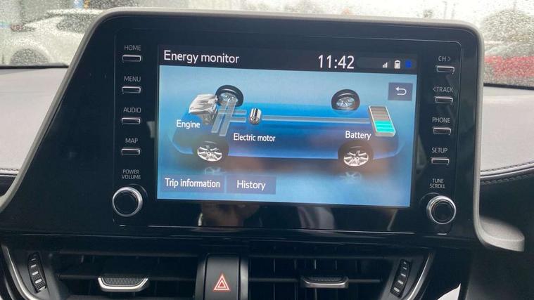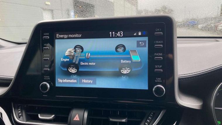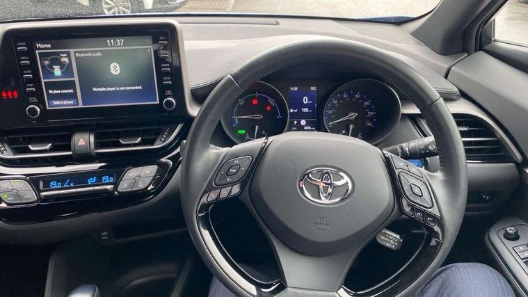 4.2" coloured TFT screen for multi-information display, Adaptive cruise control, Bluetooth connectivity, E-call, Electric power steering, Hybrid system indicator, Lane departure alert with steering control, Remote boot door release in cabin, Remote boot door release in key, Reversing camera, Road sign assist - RSA, Trip computer, Voice recognition, Vehicle Stability Control (VSC), 6 speakers, AM/FM radio, DAB Radio (Digital Audio Broadcasting), Toyota touch 2 multimedia system with 8" display, USB connector, Wi-fi connectivity, Anti-jam protection on power windows, Auto high beam, Auto up and down function on all power windows, Automatic headlights, Automatic headlights cut-off, Black and body coloured rear bumper, Black upper front grille, Body colour door handles, Body colour door mirrors, Body colour front spoiler lip, Body coloured front bumper, Boot door release with push button, Electric heated door mirrors, Follow me home headlights, Front and rear power windows, Front fog lights, Honeycomb lower front grille, LED daytime running lights, LED front light guide, LED High mounted stop light, LED rear brake lights, LED rear combination lights, Manual headlight levelling, Manually retractable door mirrors, Noise reduction layer on front windows and windscreen, Power adjustable door mirrors, Rain sensor, Rear side wing doors, Rear spoiler, Rear tailgate, Rear window defogger, Rear window wiper, Reflective LED headlights, Shark fin antenna, UV-filter on driver and passenger windows, UV-filter on rear windows, 12v power outlet - front, 3 rear headrests, 3 seat bench in 2nd row, 3 spoke leather steering wheel, 60/40 split folding rear seat, Adjustable rear headrests, Adjustable speed limiter switch on steering wheel, Assist grips front and centre pillar, Audio and telephone switches on steering wheel, Black front door assist grips, Boot light, Chrome interior door handles, Cloth upholstery, Driver and front passenger personal light, Driver and front passenger Whiplash Injury Lessening seats, Dual zone automatic air conditioning, Floor mats, Front cupholders, Front head restraints, Front sports seats, Glovebox with internal light, Hard tonneau cover, Hooks for luggage holding net, Humidifying Nanoe air purifier, Illuminated entry system, Isofix attachments on outer rear seats, Leather gearshift, Light on driver sun visor, Light on passenger sun visor, Manual telescopic steering wheel, Manual tilt steering wheel, Manually adjustable lumbar support on driver seat, Manually height adjustable driver seat, Manually height adjustable front passenger seat, Manually reclining driver seat, Manually reclining front passenger seat, Manually sliding driver seat, Manually sliding front passenger seat, Microphone on front personal light, Mirror on driver sun visor, Mirror on passenger sun visor, Multimedia switches on steering wheel, Pollen filter, Shopping bag hooks, Single front passenger seat, Slow opening on lower glovebox, Voice recognition switch on steering wheel, 16 Disk front wheel brake, 3x3 point rear seatbelts, ABS+EBD+Brake assist, Electronic parking brake, Front and rear seatbelt reminder, Front passenger airbag on/off switch, Hill start assist control (HAC), Pre collision system with pedestrian detection, Pre-tensioners and force limiters, Rear door child safety locks, SRS Airbags - Driver + Front passenger, front side, front and rear curtain and driver's knee airbags, Toyota safety sense, Tyre pressure monitoring system, Acoustic vehicle alert system (AVAS), Glass-breaking alarm sensors, Immobiliser, Intrusion alarm, Intrusion sensor, Motion sensor alarm, Power door locks, Power passenger window lock, Remote central locking, Black lower dashboard, Black upper dashboard, Grey deco line on upper dashboard, Matte black centre console, Tyre repair kit,