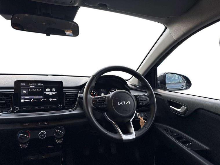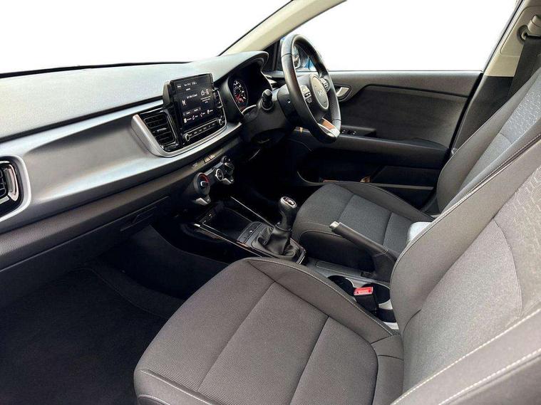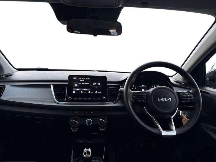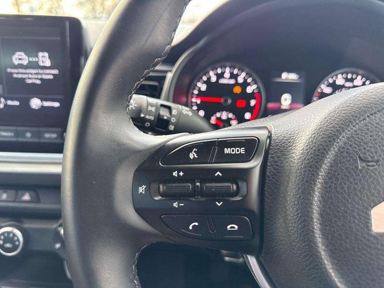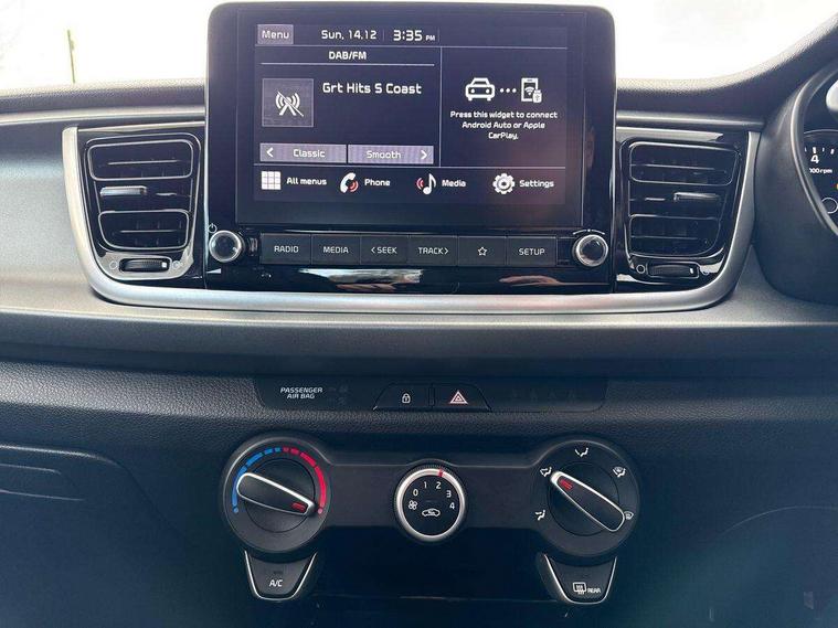 8" touch screen, Apple car play/Android Auto, Cruise control + speed limiter, Digital clock, Electric power steering, Emergency call service, Emergency stop signalling system, Gear selection indicator, Manual speed limit assist (MLSA), Outside temperature display, Rear parking sensor, Reversing camera system with dynamic guidelines (Integrated into centre fascia screen), Tachometer, Tailgate, Trip computer, Voice control system, Windscreen washer level indicator, Intelligent Stop and Go, 6 speakers, Bluetooth connectivity including audio streaming, DAB Digital radio, Front USB port for media connection, Rear USB port, Steering wheel mounted audio controls, 3rd brake light, Aeroblade-type front wipers, Automatic lighting control, Bi-function projection headlights, Black grille with chrome surround, Body colour bumpers, Body colour door handles, Body coloured door mirrors, Cornering light, Electric adjustable/heated/folding door mirrors, Front electric windows with driver's auto up/down function, Headlamp levelling, Heated rear window, LED daytime running lights, LED indicators in door mirrors, Projection front fog lights, Projection headlights, Rear electric windows, Rear fog lamp, Rear side wing doors, Rear wash/wipe, Speed variable front wipers, Tinted glass, Welcome home function, 3 passenger assist grips, 3 seat bench in 2nd row, 60/40 split/folding 2nd row of seats, Air conditioning, All round height adjustable headrests, Centre Console with Storage Box and Sliding Armrest, Dash illumination dimmer switch, Driver's seat height adjuster, Driver/passenger sunvisors and illuminated vanity mirrors, Front and rear door map pockets with bottle holder, Front passenger seatback pockets, Front USB charger port and 12V socket, ISOFIX top tethers and lower anchor points, Leather trimmed gearshift, Leather trimmed steering wheel, Load area light, Luggage area parcel shelf, Luggage hooks, Overhead console with sunglasses holder, Premium cloth upholstery, Silver interior door handles, Single front passenger seat, Tilt/telescopic adjustable steering wheel, Advanced driving assistance pack - Rio, 3-point front seatbelts, 3x3 point rear seatbelts, ABS with Electronic Brakeforce Distribution (EBD) and Brake Assist System (BAS), Automatic unlocking of doors in case of impact, Cornering brake control (CBC) and Straight line stability (SLS), Electronic stability control (ESC) and vehicle stability management (VSM), Front seatbelt pretensioners + load limiters, Height adjustable front seatbelt anchors, Hill start assist control (HAC), Passenger airbag deactivate switch, Rear child proof door locks, Seatbelt warning, Traction control, Twin curtain airbags, Twin front airbags, Twin front side airbags, Tyre pressure monitoring system, Anti theft alarm, Deadlocking system, Engine immobiliser, Locking wheel nuts, Remote central door and tailgate locking with fold-away key, Speed sensitive auto door locking, Visible vehicle identification number, Silver fascia trim, 15" Alloy wheels, Tyre mobility system,