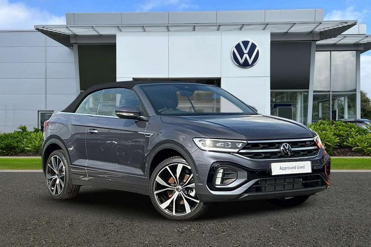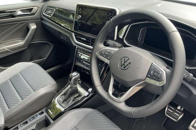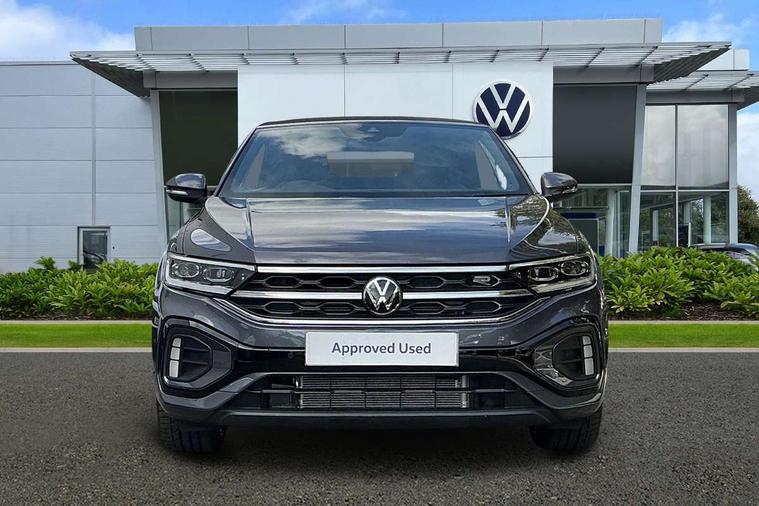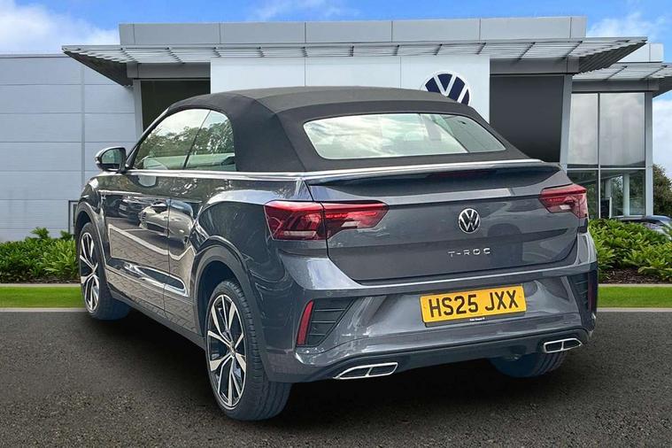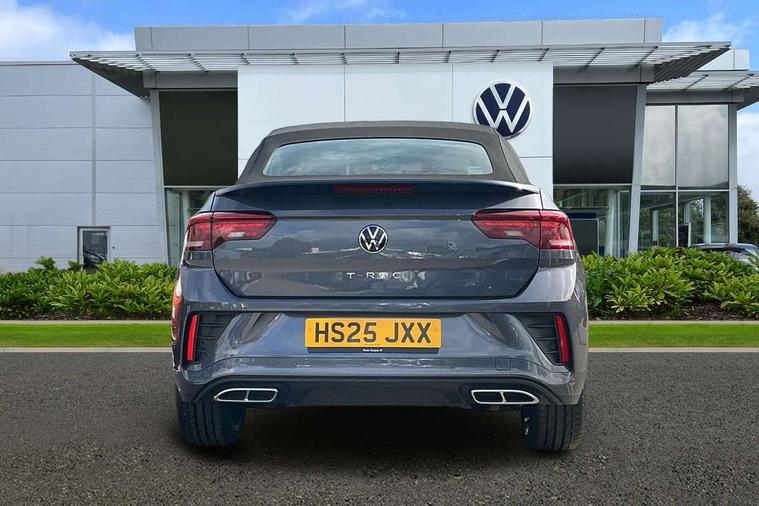 Adaptive cruise control and speed limiter, Advanced driver attention and drowsiness monitor, Brake pad wear indicator, Car information display, Digital Cockpit Pro with 10.25" Display, Driver tips and journey analysis, Dynamic road sign display, Emergency call service, Modified key software - reduce switch off time for key status change to Long no motion, Multifunction computer with visual gear change recommendation for fuel consumption, Multifunction front facing camera, Online services, Park assist including front and rear parking sensors, Speedo and rev counter, electronic odometer, trip, service interval display and exterior temperature gauge, Start/stop system with brake energy recovery, Tailgate/trunk lid release from outside, Warning sound and light for front seatbelts unfastened, Wireless App-Connect for apple Carplay and android Auto, Digital radio reception (DAB), Diversity antenna for FM reception, Mobile phone interface with inductive charging feature, Music playback - MP3, WMA and AAC files, SMS functionality - read, compose and send SMS messages using touch-screen display, Title and cover art display, USB-C Interface and USB charging socket, We Connect and We Connect Plus functionality, Ambient lighting with logo projection, Auto dimming interior rear view mirror, Automatic hazard lights activation under emergency braking, Automatic headlight control with LED separate daytime running lights with coming/leaving home function, Black roof, Body colour door handles, Body colour rear boot spoiler, Chrome effect left and right trapezoid exhaust tailpipe fascia surround, Chrome trim on upper and lower radiator grille, Dark red rear combination lamps in LED technology, Dusk sensor, Exterior mirrors aspherical on driver side, convex on front passenger side, Heat insulating glass windscreen, LED 3rd brake light, LED rear number plate lights, Power operated canvas convertible top, Power windows with comfort operation and circuit breaker, R-Line design body coloured bumpers, Rain sensor, Rear boot, Rear exhaust tailpipe, Rear fog light on one side and reversing lights on both sides, Remote electrically foldable door mirrors, puddle lights and reverse activated passenger door mirror, Volkswagen roundel, Windscreen wiper with intermittent wipe light, Without exterior ambient lighting, 12V socket in centre console storage area, 2 LED front reading lights, 2 seat bench in 2nd row, 50:50 Split folding rear seat backrests with fixed rear seat bench, Air care climatronic air conditoning system with active combination filter and 2-zone temperature control, Black door lower parts with chrome trim, Chrome plated surround to light, mirror and window switch, Door and side trim panel with leatherette insert, Easy entry backrest release, Front and rear carpet mats with black stitching, Front centre armrest, Front cupholders x 2, Front door pockets, Front seat back storage pockets, Front sports comfort seats with manual height adjustment, Heated leather wrapped multi function sports steering wheel with tiptronic, Height/reach adjust steering wheel, Inserts of front seats and outer rear seats in ArtVelours titan black, Instrument lighting, white adjustable panel illumination, Interior light delay, Interior light in footwell, Interior lighting with switch off delay and contact switches on all doors, Interior white ambient lighting and surround lighting, Isofix child seat preparation, Lockable glove compartment with light, Luggage compartment lighting, Power adjustable lumbar support in front, Rear head restraints, Single front passenger seat, Stainless steel pedals, Sun visors with illuminated vanity mirrors, Unique R Line door sill protectors, Driver assistance pack without proactive passenger protection - T-Roc Cabriolet DSG, 2 x 3-point seatbelts/outer rear seats with ECE label, Driver and front passenger airbag with front passenger airbag deactivation, Driver and front passenger safety-optimised head restraints, Drivers seatbelt reminder, Electronic parking brake, Electronic Stability Control (ESC) including ABS, ASR and EDL, Front and rear disc brakes, Front assist with autonomous emergency braking, Pedestrian monitoring, Predictive pedestrian protection, Rigid safety cell with front and rear crumple zones, Side airbag/thorax airbag system, for front passengers, Three point height adjust front seatbelts + pretensioners, Two tone horn, Tyre pressure loss indicator, Volkswagen roadside assistance, Anti-theft alarm system with interior protection and central locking system with SAFELOCK, radio remote control and 2 remote control folding keys, Electronic engine immobiliser, Trims for alloy wheels,