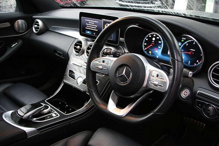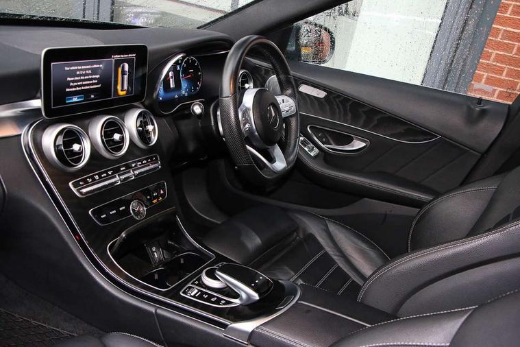 12.3" digital instrument cluster display, 360 degree parking camera, Active park assist with parktronic system, Attention assist, Bluetooth system, Collision prevention assist plus, Comand Online HDD Nav with media interface, radio/CD/DVD/MP3, 10.25 screen, linguatronic voice control, DYNAMIC SELECT with a choice of driving modes (ECO, Comfort, Sport, Sport+ and Individual), Multi function trip computer, Outside temperature gauge, Power opening/closing tailgate, Remote boot release, Service indicator (ASSYST PLUS), Smartphone integration with Apple CarPlay and Android auto, Wireless charging, Diesel particulate filter, 2 USB ports in centre console, Burmester surround sound system, DAB Digital radio, SD card slot, Steering wheel mounted audio controls, Adaptive brake lights, Aerial in rear window, AMG body styling, Body coloured bumpers, Body coloured door mirrors, Chrome pins diamond radiator grille with integrated stars, Chrome roof rails, Electric front sliding and fixed rear panoramic glass sunroof, Electric windows one touch open/close, Electrically adjustable and heated door mirrors, Green tinted glass, Heated windscreen washers, LED daytime running lights, LED Indicators, LED tail lights, LED third brake light, Multi beam LED headlights, Rain sensor windscreen wipers, Rear wiper, Side windows surround in polished aluminium, Twin exhaust pipes, 2 cupholders in front centre console, 3 spoke flat bottom AMG steering wheel in nappa leather, 40:20:40 split folding rear seats, AMG floormats, AMG sports seats, Auto Mercedes-Benz child seat recognition sensor, Dual zone automatic climate control, Electric front seat height adjustment, Front and rear head restraints, Front centre armrest with storage compartment, Front door sills with Mercedes Benz lettering, Gearshift paddles, Heated front seats, Illuminated glovebox, Interior lighting - 64 colour Ambient lighting, Load compartment cover, Multifunction steering wheel, Rear top tether child seat ISOFIX attachment, Sports pedals with stainless steel surfaces and rubber studs, Sunvisors with illuminated vanity mirrors, Lighting pack - C class, Mirror pack - C Class, Seat comfort pack - C Class, Stowage space pack - C Class, 3 rear 3 point seatbelts, ABS with Brake Assist, Active bonnet, Adaptive brake system, Black seat belts, Brake calipers with Mercedes-Benz lettering + perforated brake discs, Child proof door locks, Crash sensor, Drivers knee airbag, Drivers pelvis airbag, Dual stage driver/passenger airbags, Electronic parking brake, ESP with ASR, Front passenger seat occupancy sensor, Front side airbags, Hill start assist, Rear seatbelt warning indicator, Tyre pressure monitoring system, Warning triangle and first aid kit, Window airbags, Alarm system/interior protection/immobiliser, Chrome surround electric key, Keyless entry and keyless start, Remote central locking, Tyre inflation kit,
