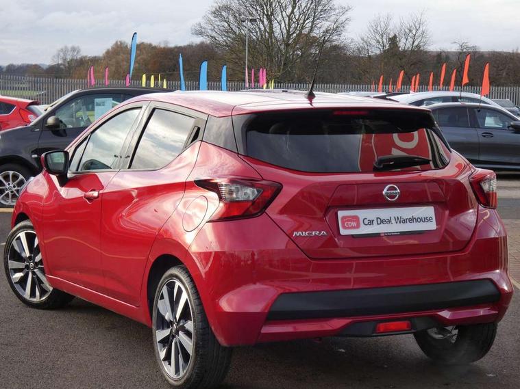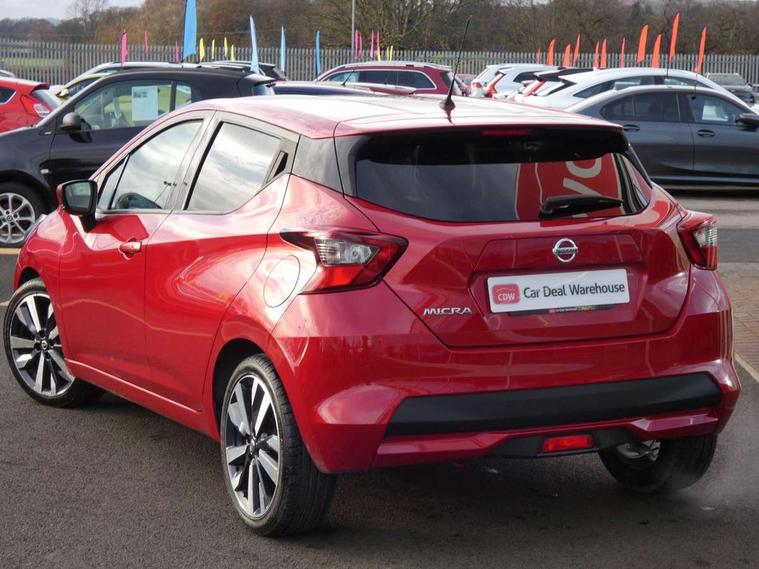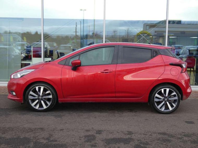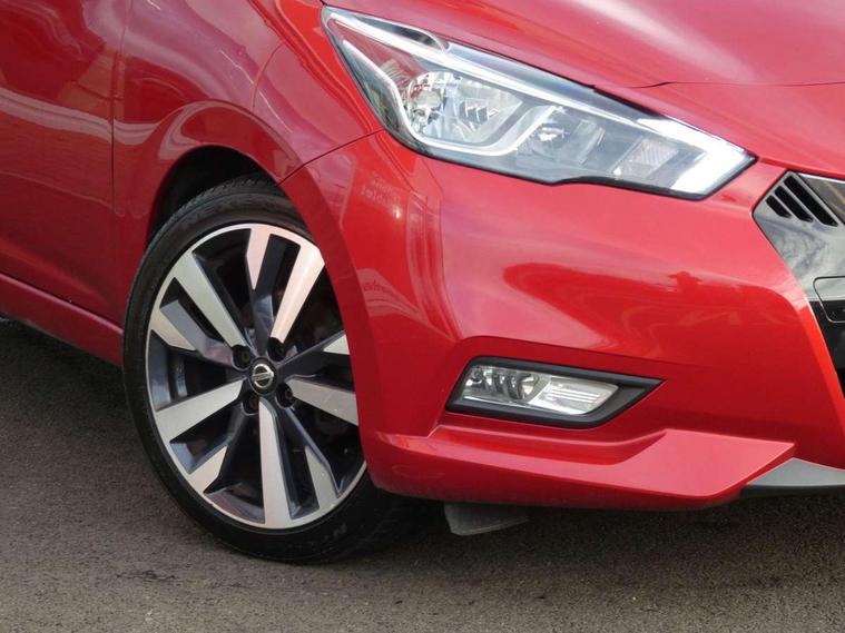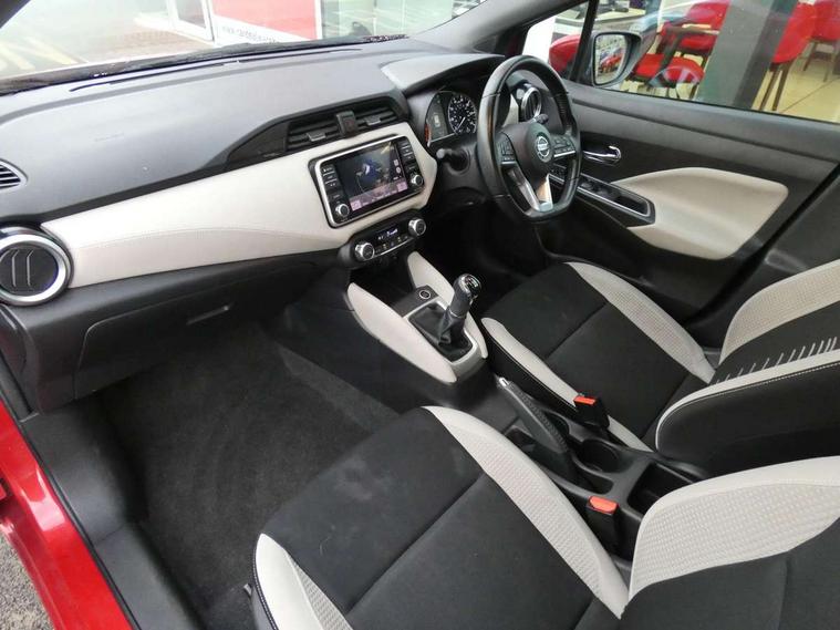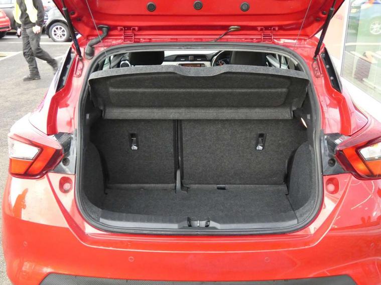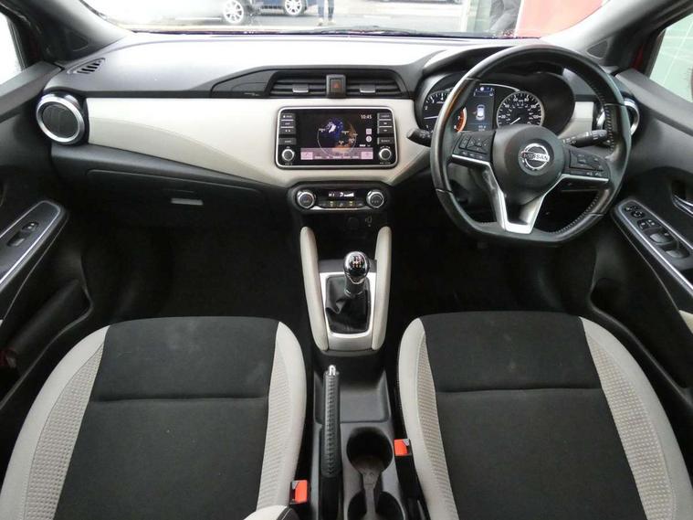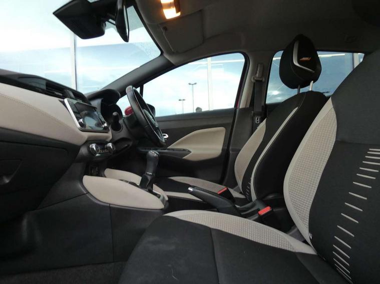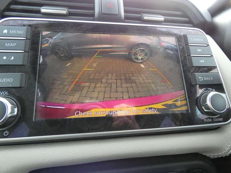 5" TFT driver information centre, Adjustable speed limiter, Bluetooth system, Cruise control, Lane departure warning system, Nissan connect sat nav system, Outside temperature gauge, Rear parking sensors and rear view camera, Smartphone integration with Apple CarPlay and Android auto, Stop/start system, Tomtom connected services, Traffic sign recognition, Trip computer, Aux-in socket, BOSE sound system with 6 speakers, DAB Digital radio, MP3 player, Steering wheel mounted audio controls, USB/iPod connection, Auto dimming rear view mirror, Automatic activation of hazard warning lights, Automatic headlights, Body coloured door handle inserts, Electric folding door mirrors, Electrically adjustable door mirrors, Front and rear electric windows, Front fog lights, Heated door mirrors, High beam assist, High mounted stop lamp, LED daytime running lights, LED indicators in door mirrors, Rain sensor windscreen wipers, Rear privacy glass, Rear roof spoiler, Rear wiper, 12V power point front, 3 cupholders, 3 height adjustable rear headrests, 60/40 split folding rear seat, Automatic air conditioning, Boot carpet, Boot compartment cover, Boot light, Chrome interior door handles, Driver's seat manual height adjust, Driver/passenger sunvisors and vanity mirrors, Front and rear door pockets with bottle holders, Front console storage box, Gear shift indicator, Height adjustable front headrests, Height adjustable steering wheel, Isofix front passenger and rear seat preparation, Leather handbrake, Leather wrapped gear shift knob, Leather wrapped steering wheel, LED ambient lighting, Luggage compartment lighting, Map reading lamp, Parcel shelf, Passenger seat back pocket, Reclining front seats, Satin silver accents on steering wheel, Satin silver air vents, Silver gearknob, Synthetic leather instrumental panel inserts, ABS+EBD+Brake assist, Crash sensor, Driver/Front Passenger airbags, ESP + ASR traction control + CSV understeer control, Forward emergency braking, Front and rear curtain airbags, Front side airbags, Height adjustable front seatbelts with pre-tensioners and load limiters, Hill start assist, Intelligent emergency braking with pedestrian recognition, Manual passenger airbag deactivation function, Rear seatbelts with pre-tensioners and load limiters, Seatbelt warning, Three 3 point rear seatbelts, Tyre pressure monitoring system, Warning triangle and first aid kit, Anti-theft immobiliser, Intelligent key with push button ignition, Remote central locking, 17" Alloy wheels, Tyre repair kit,