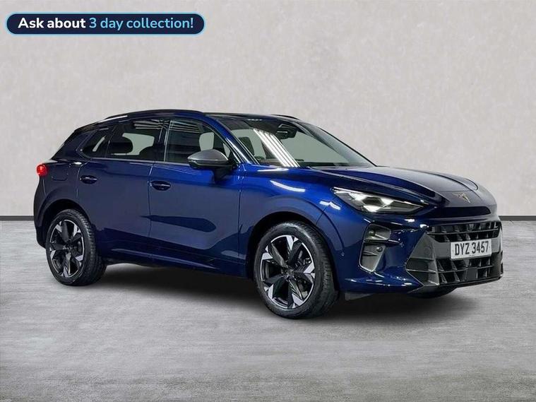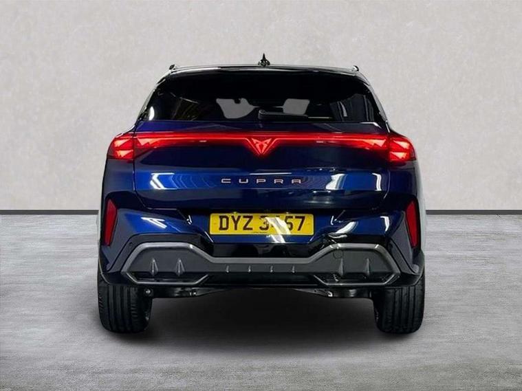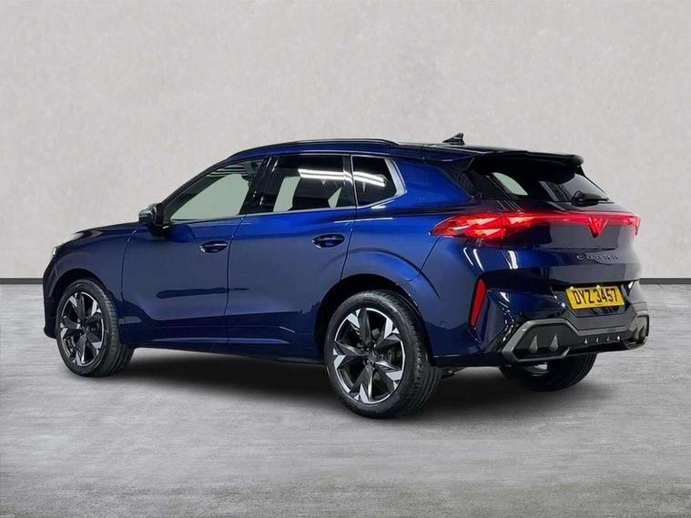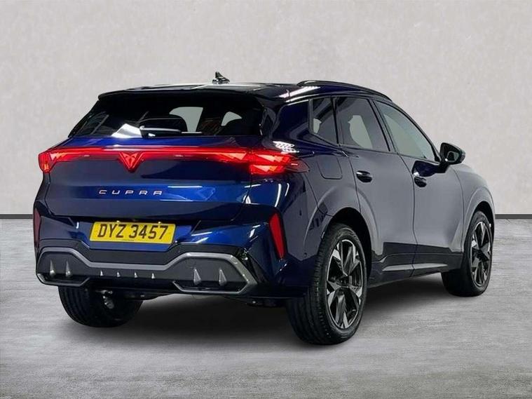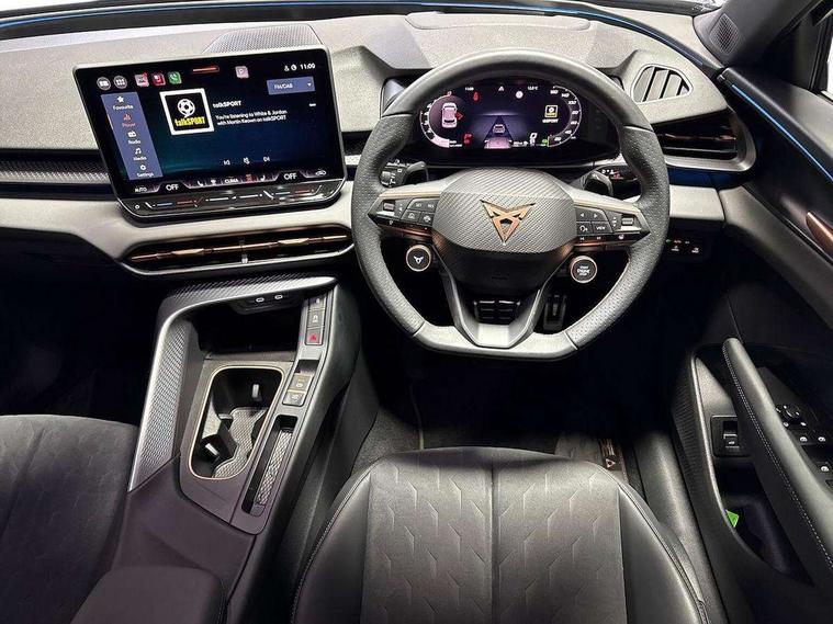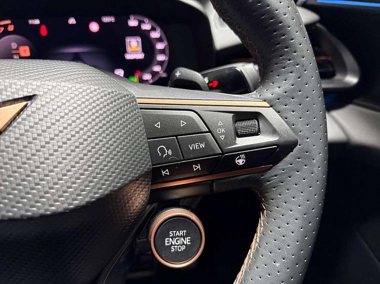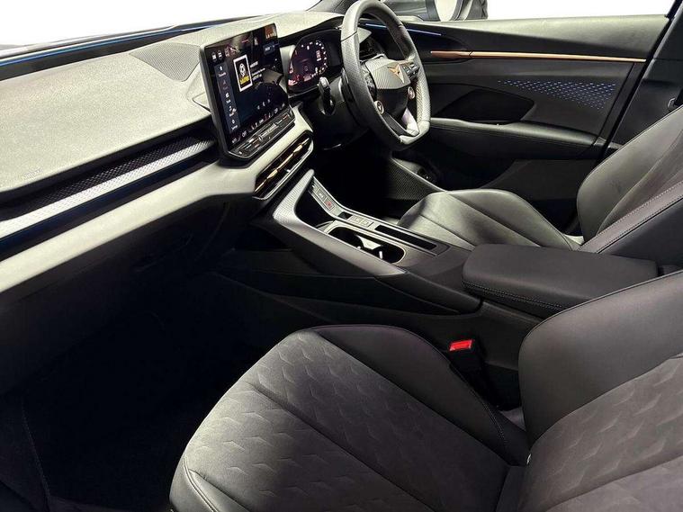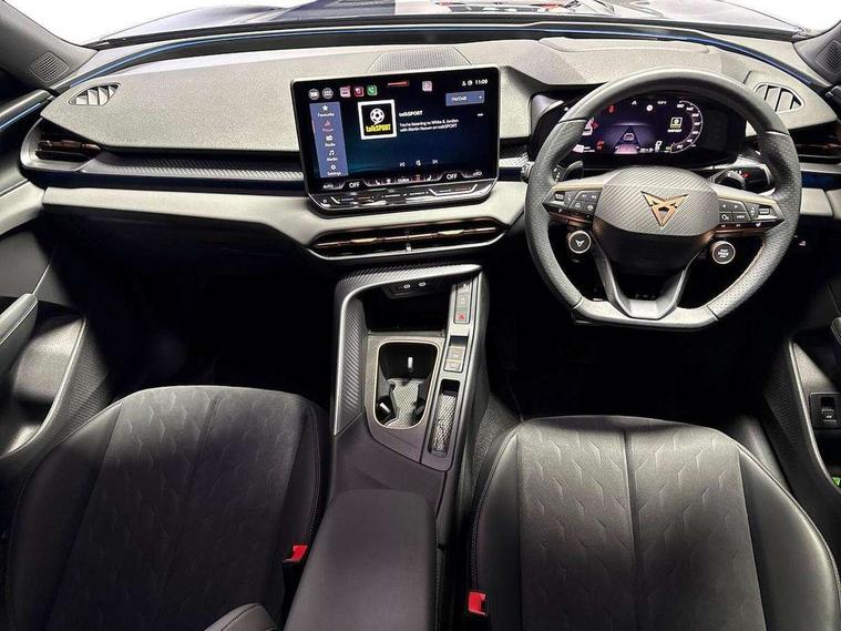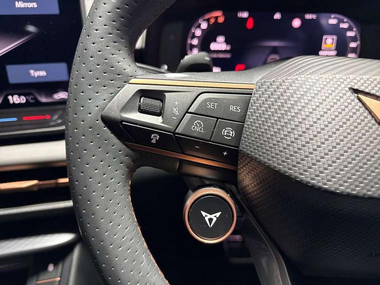 10.25" digital cockpit and configurable dashboard, Adaptive cruise control with follow-to-stop and speed limiter, Advanced driver alert system, Advanced lane assist with semi-automatic vehicle control in a medical emergency and traffic jam assist, Driving profile selection and conventional shock absorber, Dynamic road sign display, E-call, Electric tailgate with virtual pedal, Emergency steering support with turn assist, Four x USB Type C ports (2 in front and 2 in rear), Front and rear parking sensors, Front assist (Forward collision warning with automatic braking) with multifunction camera and front cross traffic assist, Head up Display, Intelligent park assist, Media system with Nav - 12.9" touch display, voice control, full link phone (wired/wireless), DAB and Steering wheel mounted controls, Rear traffic assist, Side and exit assist, Speed sensitive power steering, Start/stop system with regenerative braking, Top view camera (front camera, rear camera, 2 side cameras), Wireless phone charger, Auto dimming rear view mirror, Black roof rails, CUPRA 3D rear lights with ceremony & swiping indicator and illuminated logo, Dark tinted rear windows, Daytime running lights with automatic headlight control and Coming and Leaving home function, Door mirrors with memory function and lowing function on passenger mirror, Dynamic headlight range control, Electric front/rear windows, Electrically adjustable, heated and folding door mirrors, Front fog lamps with cornering function, Heat reflecting windscreen, High beam assist, LED headlamps with signature "CUPRA LED", Rain sensing wipers, Rear fog light on one side, back up light on both sides, Rear side wing doors, Rear wash/wipe, Third brake light, Welcome lights (within exterior mirror housing), 3 seat bench in 2nd row, Black roof lining, Cupra sports pedals, Dinamica cloth upholstery, Driver seat memory function, Electrically adjustable front seats including lumbar support, Front and rear head restraints, Front and rear reading lights X 4, Front centre armrest, Heated front seats, Heated leather wrapped multi function sports steering wheel with tiptronic, Illuminated interior front door sills, Isofix, Operating voltage 12V, Single front passenger seat, Smart wraparound interior lighting, Sunvisors with illuminated mirror, Three zone climate control with control panel in rear, Unsplit rear seat bench, split folding backrest, with centre armrest, Variable luggage/load compartment floor, 3 point seatbelts in front with pretensioner and electric height adjustment, 3 point seatbelts on all rear seats, Brake control system - ESC and brake booster, Child proof door locks, Driver and front passenger airbags, Electronic parking brake, Front and rear disc brakes, Front interaction airbag, Front passenger airbag deactivation switch, Front side airbags with curtain airbags, Pre-crash front and rear seat belt tensioner, window closure and hazard lights, Tyre pressure monitoring system, Visual and acoustic seat belt reminder, electric contact in front and rear, Anti theft alarm, Keyless locking and starting system with keyless access, Locking wheel bolts, Black decorative trims, Chrome interior detailing, 19" Spectrum exclusive machine alloy wheels, Tool kit,