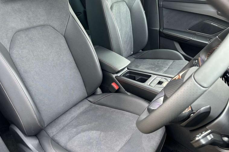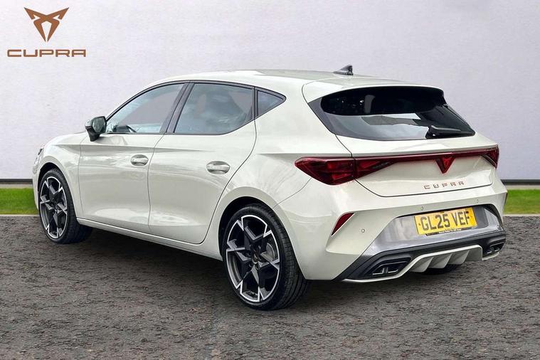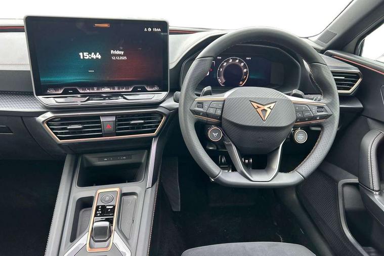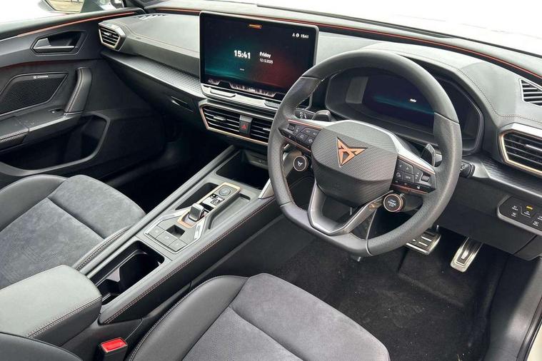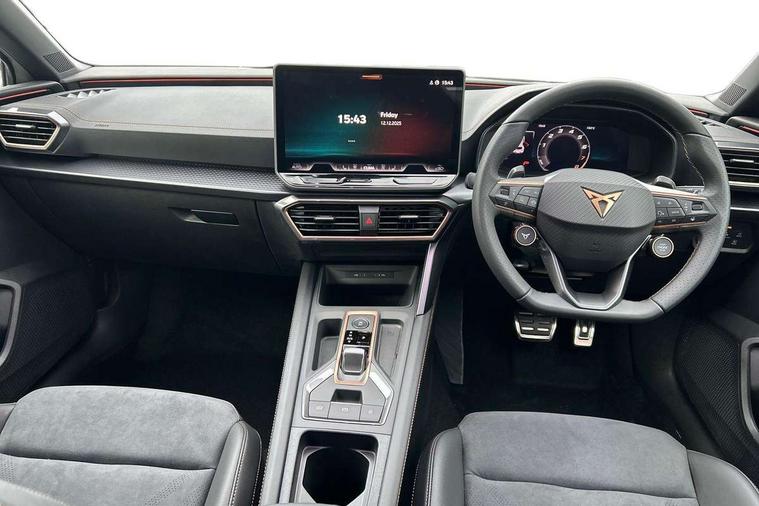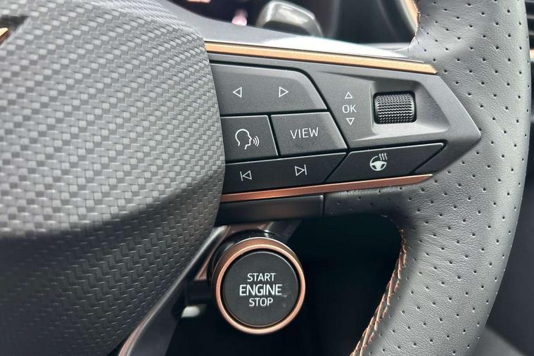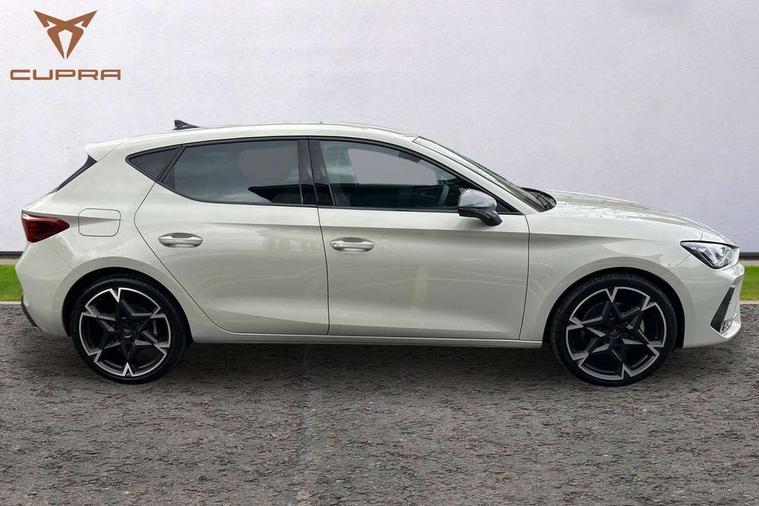 Adaptive cruise control with follow-to-stop and speed limiter, CUPRA drive profile selection with (Comfort/Sport/Individual), throttle response and gearshift mode, Digital cockpit, Dynamic road sign display, E-call, Four x USB Type C ports (2 in front and 2 in rear), Front and rear parking sensors, Front assist with forward collision warning braking reaction to vehicles, pedestrians and cyclists, Full link smartphone integration with Mirror Link, wireless Apple CarPlay and wired Google Android Auto, Lane assist, Lockable tailgate, Rear view camera, RPM, trip computer, outside temp gauge, instrument light brightness, low fuel warning light, lights on reminder, gearshift indicator, Service interval indicator, Start/stop system with regenerative braking, Wireless phone charger, Auxiliary input socket, Auto dimming rear view mirror, Body colour door handles, Body coloured bumpers, Cupra sports bumpers, Dark tinted rear windows, Electric front/rear windows, Electrically adjustable, heated and folding door mirrors, High beam assist, LED front fog lamps with cornering function, LED headlights with dynamic turn signals, tail lights, rear fog lights with rear coast to coast lighting, LED rear fog lamp, Rain sensing wipers, Rear side wing doors, Rear wash/wipe, Separate daytime running light with automatic headlight control and coming home feature, Third brake light, Welcome light with logo projector in door mirrors, 12v power supply in centre console, 3 seat bench in 2nd row, 5 headrests, 60/40 split rear bench seat with armrest, Ambient lighting (glovebox, footwell, ambient lighting multicoloured), Black headlining, Cupra sports pedals, CUPRA Supersports, heated steering wheel with satellite buttons, Dinamica cloth upholstery, Electrically adjustable driver seat and lumbar support with memory function + manually adjustable passenger seat, Folding boot cover, Front and rear reading lights X 4, Front centre armrest, Heated front seats, Height/reach adjust steering wheel, Illuminated interior front door sills, Interior wraparound lighting, ISOFIX points in outer rear seats with top tether anchorage points, Single front passenger seat, Storage pockets on rear of front seats, Sunvisors with illuminated mirror, Three zone climate control, Dynamic and comfort pack - Leon Cupra, Media system plus with 12.9" display + navigation pack - Leon Cupra, 3 point seatbelts on all rear seats, ABS, Brake control system - ESC and brake booster, Child proof door locks, Cupra black brake calipers, Driver and front passenger airbags with front passenger airbag de-activation, front side and curtain airbags, Electronic parking brake, Hill hold control, Rear disc brakes, Seat belt reminder for front and rear seats, Tiredness recognition system, Tyre pressure monitoring system, Anti theft alarm system with interior monitoring in cab, backup horn and towing protection, KESSY Advanced - Keyless start, keyless entry, Locking wheel bolts, Chrome and copper interior detailing, 19" Polar machined sport black and silver alloy wheel with 91Y tyres, Tool kit,