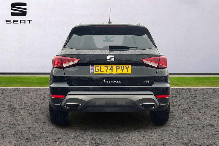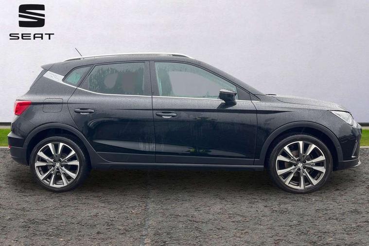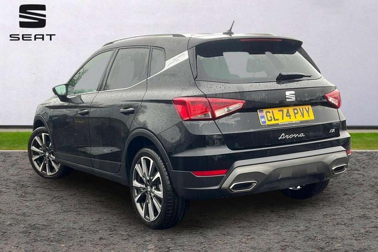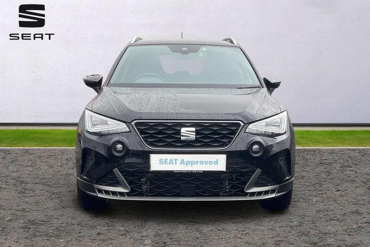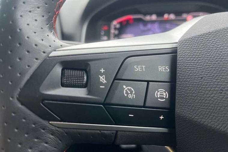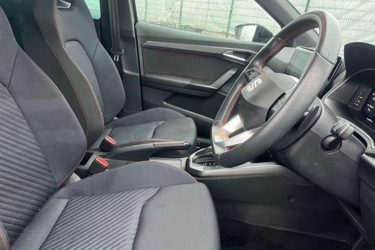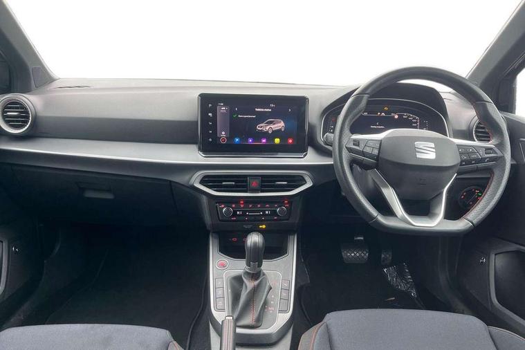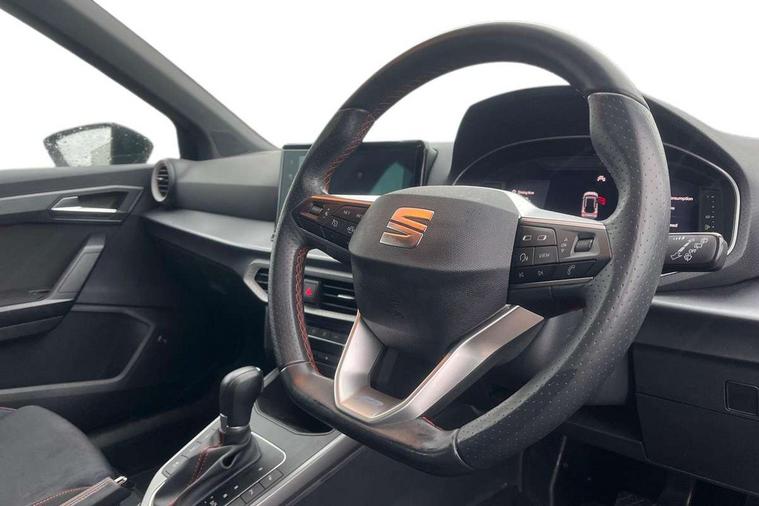 'Lights On' Reminder warning buzzer, 10" Digital cockpit, Digital clock, E-call, Electric speed sensitive power steering, Full Link Smartphone Integration with Mirror Link, Apple Car Play, Google Android Auto with USB Type C cable for Apple and Android compatibility, Lane keeping system, Low fuel warning light, Outside temperature display, Park assist system, Rear view camera, RPM counter, SEAT Drive profile - Four different models normal-sport-eco-individual, steering response, throttle response and gear shifts mode, Trip computer, Wireless phone charger, 9.2" colour touchscreen with navigation system, voice control and USB port (type c), Bluetooth interface for hands free and audio streaming, DAB digital radio and AM/FM radio, Steering wheel mounted audio controls, Anti theft roof antenna, Auto dimming interior rear view mirror, Automatic activation of hazard warning lights, Body coloured bumpers, Body coloured door handle inserts, Chrome roof rails and window surrounds, Dark tinted rear windows, Electric front/rear windows, Electrically adjustable, heated and folding door mirrors, Front fog lights with cornering function and rear fog light, FULL LED automatic headlights with dynamic headlight range control, coming and leaving home, LED daytime running lights, LED rear tail lights and licence plate lights, Protective side mouldings, Rain sensing wipers, Rear side wing doors, Rear spoiler, Rear window wash/wipe, Roof colour door mirrors, Third brake light, Twin exhaust pipe styling hidden exhaust pipe, Visible VIN plate, 2 cupholders, 3 seat bench in 2nd row, 60/40 split folding rear seat, Aircare filter, Black interior roof, Double boot floor, Driver sunvisor with covered mirror + card holder, Dual zone climate control, Front courtesy light with front reading lights, Front sport seats, Gear shift indicator, Grey interior air vents, Height adjustable front seats, Height/reach adjustable steering column, Illuminated boot, Instrument lighting with brightness control, Interior ambient lighting, Interior light in footwell, central console and door panel, ISOFIX points in outer rear seats with top tether anchorage points, Microsuede cloth upholstery + sports bucket seats, Passenger sunvisor with vanity mirror, Perforated flat bottomed leather steering wheel/gear knob/handbrake with red stitching and FR logo, Potentiometer, Single front passenger seat, Steering wheel mounted gearshift paddles, Two front and three rear height adjustable headrests, Interior chrome pack - Arona, Safe and driving pack (S) - Arona, 3 point seatbelts on all rear seats, ABS, Active front headrests, Child locks on rear doors, Driver and front passenger airbags with front passenger airbag de activation, front side and curtain airbags, Electronic Stability Control (ESC), Emergency Brake Assist (EBA) and front assist, Front and rear seatbelt reminder, Hill hold control, Multi-Collision braking, Tiredness recognition system, Traction control, Tyre pressure monitoring system, Alarm with back-up horn, Electronic engine immobiliser, KESSY Keyless entry and go, Locking wheel bolts, Remote central locking + deadlocks, Tow away protection, Titan black dashboard, 18" Performance Cosmo grey alloy wheels,