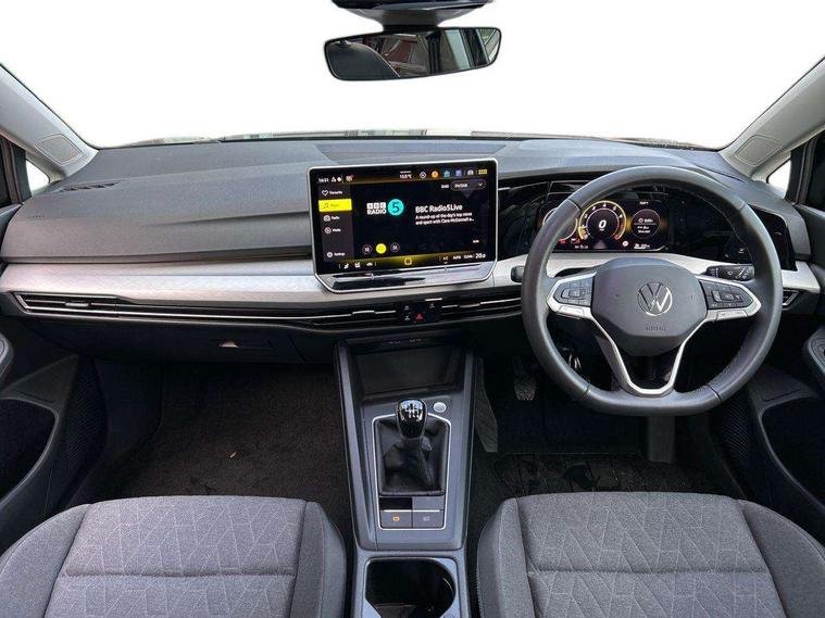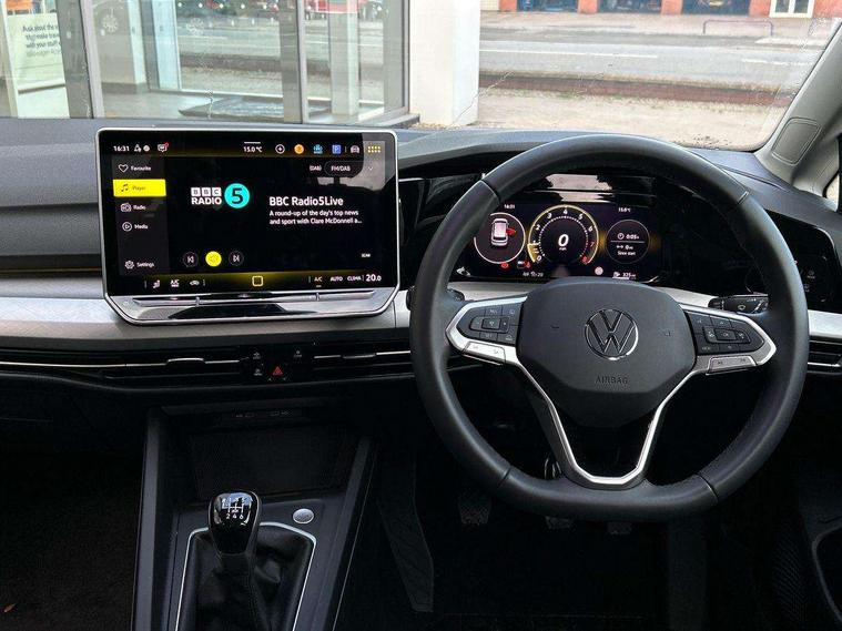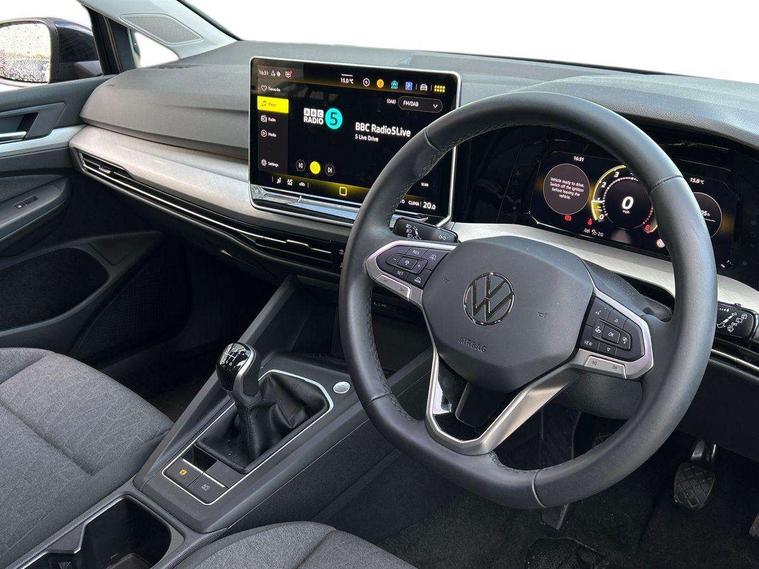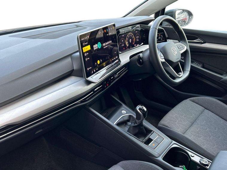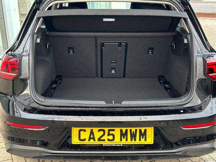 Activated carbon canister, Adaptive cruise control (ACC), Advanced driver attention and drowsiness monitor, Dynamic road sign display, E-Sim card for online connectivity, eCall emergency call system, Multi-color Digital cockpit pro, selection of different info profile possible, Multifunction front facing camera for distance control, Navigation system, Oncoming vehicle braking when turning including swerve support, Preparation for light assist system, Speed limiter, Speedo, rev counter, electronic odometer, trip, service interval display, exterior temperature and fuel gauge, Voice enhancer and voice control, Warning signal and warning light for front and rear seatbelts not fastened, We connect plus preparation, We connect preparation, Wireless app connect, Petrol Particulate Filter, Start-stop system with battery regeneration (recuperation - energy recovery during braking), XDS electronic differential lock for improved traction and handling, 2 USB C ports in front, 2 USB charging sockets on the centre console in the rear charging capacity upto 45W, Comfort telephony + wireless charging, without wireless aerial connection, Digital radio reception (DAB), Diversity antenna for FM reception, Gaming platform via car app, Infotainment system with 12.9" display, Mobile phone interface with inductive charging feature, 3rd brake light, Auto dimming rear view mirror, Auto headlights, Automatic headlamp activation with Coming home and Leaving home feature, Body colour door handles, Body colour door mirrors, Exterior ambient lighting with illuminated door handles, Exterior mirrors convex on the left and aspherical on the right, Front and rear electric windows, Heat insulating windshield made of laminated glass, LED daytime running lights, Rain sensor, Rear exhaust tailpipe, Rear fog light on one side and reversing lights on both sides, Rear side wing doors, Rear tinted glass 65% light absorbing from B pillar backwards, Rear windscreen washer and wiper with interval delay, Remote electrically foldable door mirrors, puddle lights and reverse activated passenger's door mirror, Standard bumpers, Welcome light with surround lighting, 12V socket in front centre console, 12V socket in luggage compartment, 3 rear head restraints, 3 seat bench in 2nd row, Chrome plated radiator grille inserts, air vent surrounds and light switch surrounds, Front centre armrest, Front head restraints, ISOFIX anchors for child seats on outer rear bench seats and on front passanger seat compatible for i-Size, Leather gearshift handle, Luggage compartment lighting, Rear cupholder and loadthough, Single front passenger seat, Soul black instrument panel, Split folding backrest with centre armrest and unsplit rear seat bench, Standard pedal cluster, Storm grey roof lining, Sun visors with illuminated vanity mirrors, Parking and comfort pack - Golf Estate/Hatchback, 3 point height adj front seatbelts + pretensioners, 3 rear three point seatbelts, ABS, Autonomous emergency braking front assist with pedestrian and cyclist monitoring, Child locks on rear doors, Driver and front passenger airbag with front passenger airbag deactivation, Electronic parking brake with auto hold, ESC (Electronic Stability Control), Extended pedestrian protection measures, Rear disc brakes, Two tone horn, Tyre pressure loss indicator, Volkswagen roadside assistance, Alarm with interior protection, Anti theft wheel bolts, Keyless start with SAFE lock, Preparation for alcohol interlock, Nature cross brushed decorative inserts for dashboard and front door panels,