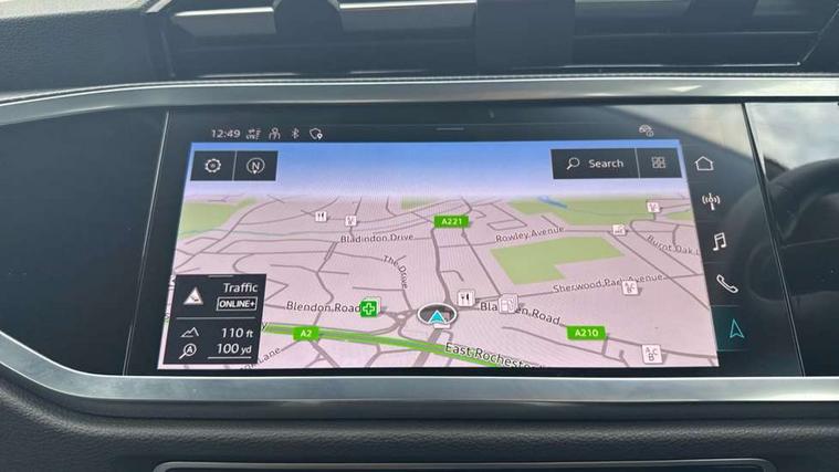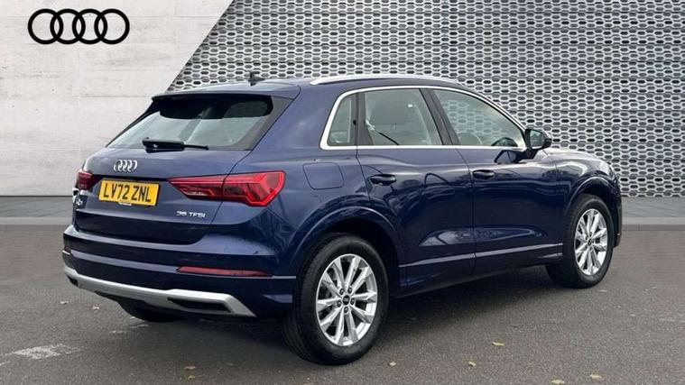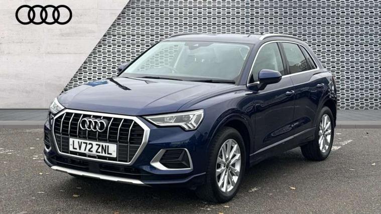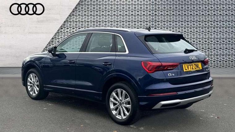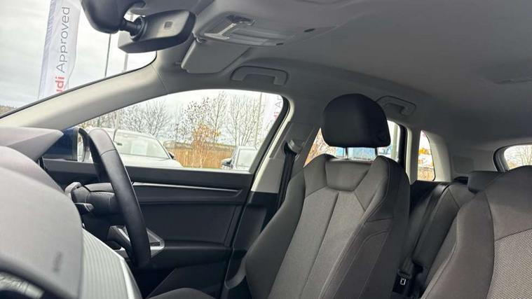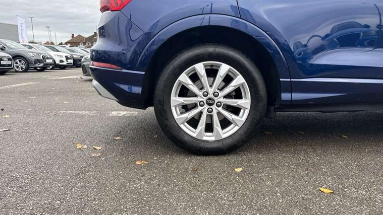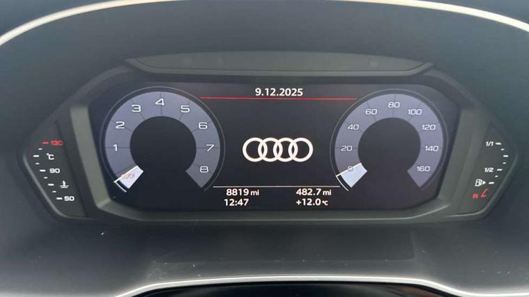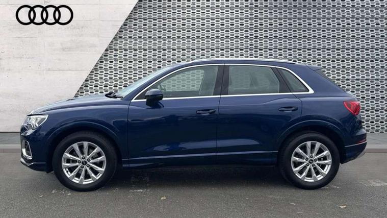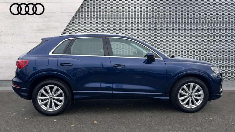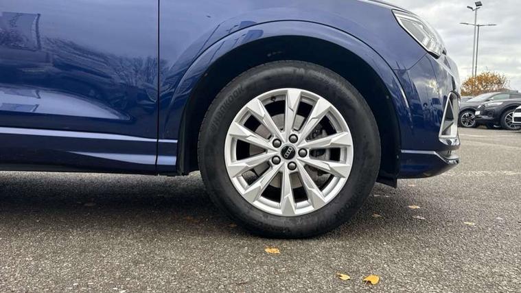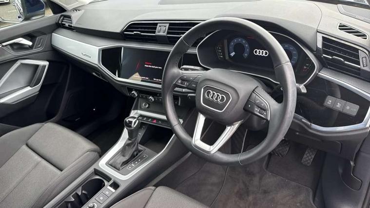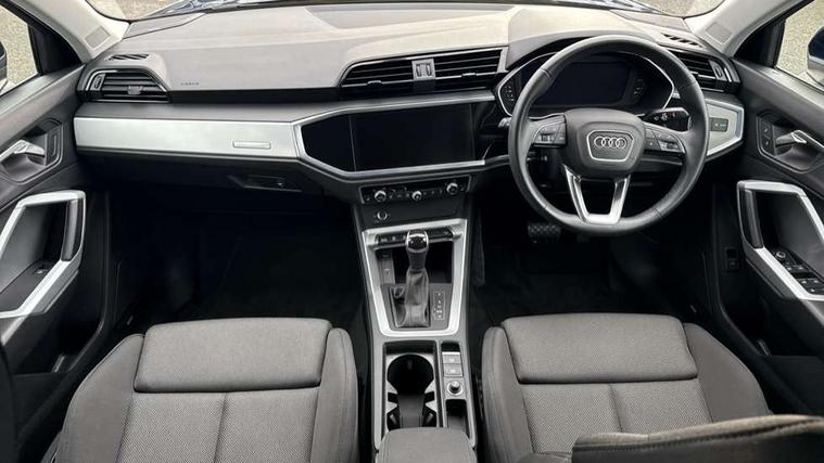 Amazon alexa Integration, Audi drive select, Audi lane departure warning, Audi Virtual Cockpit - 10.25" display, Bluetooth interface, Camera based traffic sign recognition, Legal emergency call, MMI Navigation Plus with high resolution 10.1 inch touchscreen colour display, Power operated tailgate, Progressive steering, Service interval indicator, Smartphone interface includes wireless Apple carplay/Android Auto, Start stop system with recuperation, Voice control system with natural language interaction, Standard suspension, 2 USB-C ports with charge and data functions, 6 passive loudspeakers, DAB digital radio module, Acoustic windscreen, Aluminium roof rails, Aluminium window trim, Auto dimming frameless rear view mirror, Body coloured bumpers, Electrically folding, adjustable and heated door mirrors with integrated LED side indicators and kerb view function for passenger side, Front and rear electric windows, Front fog lights, Front side air inlets in matt selenite silver, Front spoiler in matt selenite silver, Grille vertical bars in aluminium silver/Matt, High gloss black finish B and C pillars, LED Dynamic rear indicators, LED headlights with LED daytime running lights, LED rear lights, LED third brake light, Rain and light sensors, Rear diffuser strip in matt selenite silver, Rear side wing doors, Rear wiper, Titanium black radiator grille, Variable front intermittent wipers, 12V socket in rear centre console, 3 seat bench in 2nd row, 3 spoke multi-function leather steering wheel, 40:20:40 folding with manual adjustment for 60:40 forwards/backwards position and backrest angle, Door sill trims with aluminium inlay, Dual zone electronic climate control, Front and rear floor mats, Front and rear headrests, Front and rear roof module including reading lights, Front centre armrest, Glove compartment lighting, Height and reach adjustable steering wheel, ISOFIX child seat mounting for front passenger with airbag deactivation and outer rear seat including top tether attachment point for outer rear seats, Luggage compartment light, Lunar silver cloth headlining, Manual front seats with height adjustment, Single front passenger seat, Stainless steel luggage compartment sill finisher, Non smoking pack - Q3, 3x3 point rear seatbelts, 6 airbags - Driver, front passenger, curtain and side windows, Audi pre-sense front with pedestrain and cyclist recognition, Electrically operated child locks on rear doors, Electromechanical parking brake, Electronic stabilisation control including ABS, ASR and EDL, Front seatbelt reminder, Hill descent control, Hill hold assist, Pre sense basic, Seatbelt monitoring, Tyre pressure warning, Warning triangle and first aid kit, Anti theft alarm, Anti theft wheel bolts, Immobiliser, Remote central locking, Detail dashboard around MMI touch colour display in glass look, black with surround in aluminium look, Micrometallic silver inlay,
