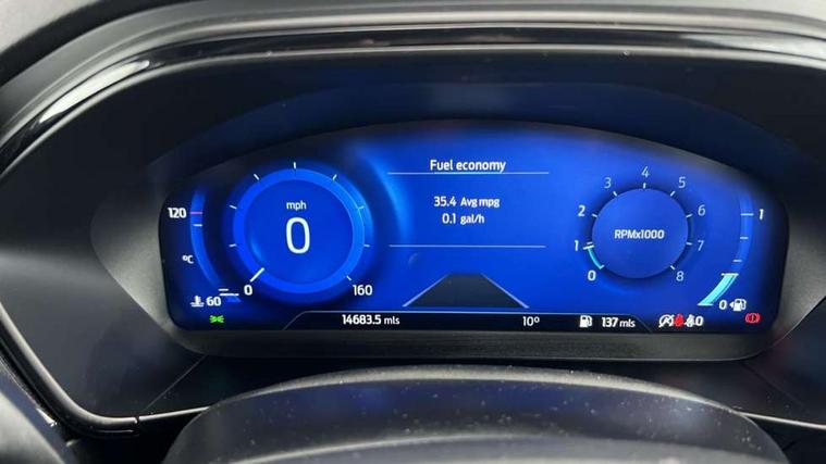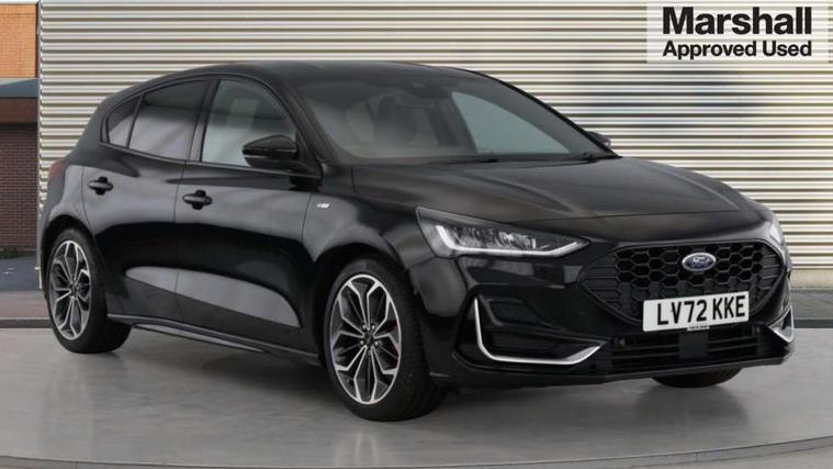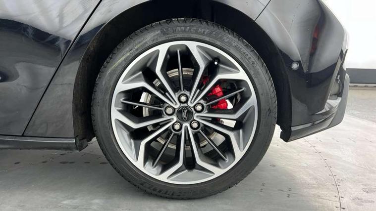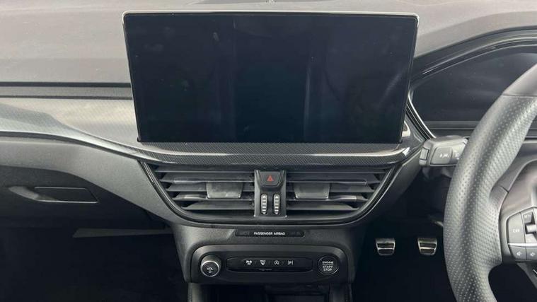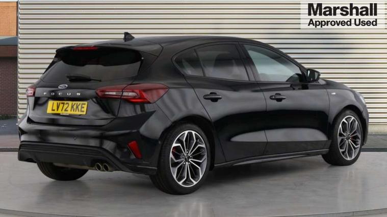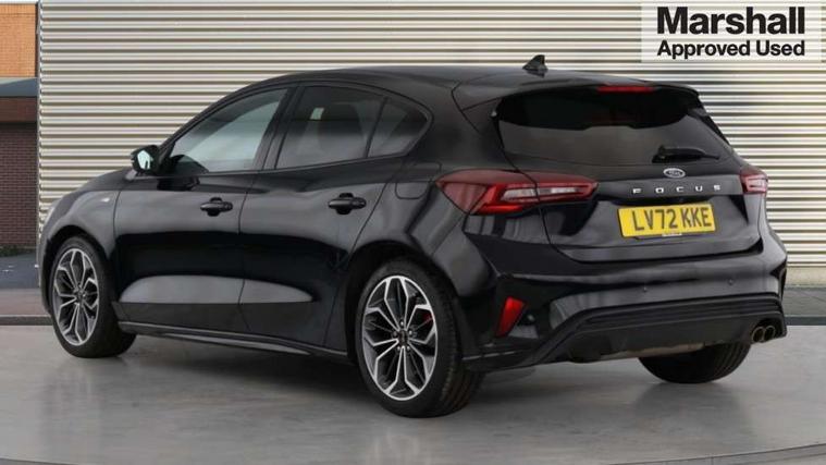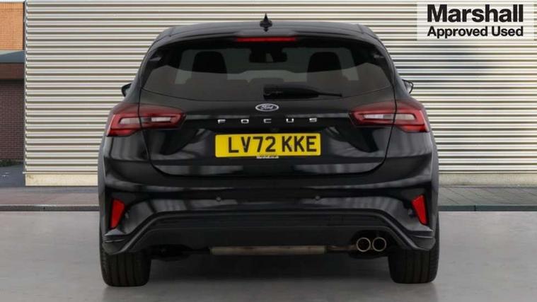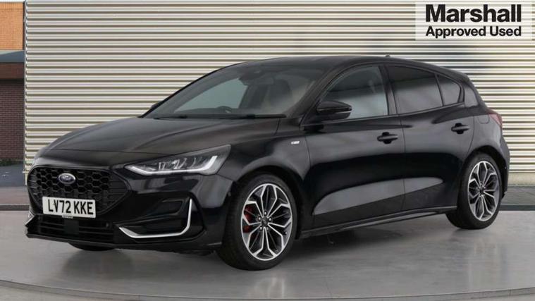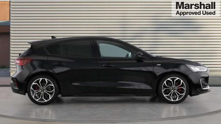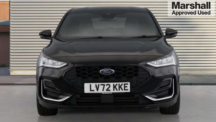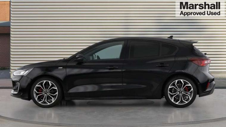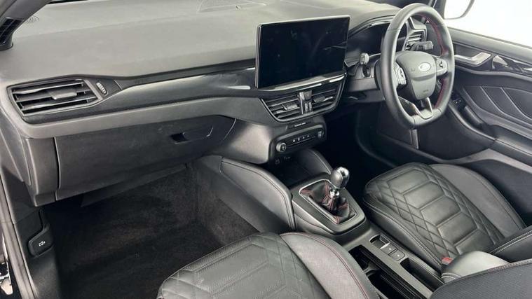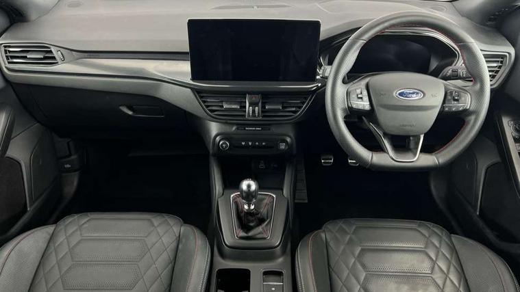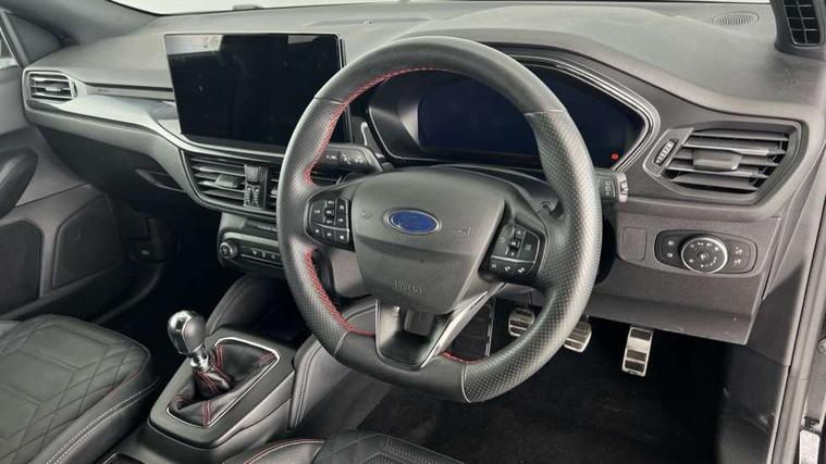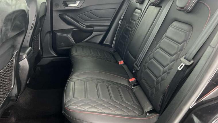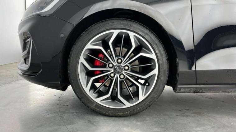 12.3" Digital instrument cluster, Bluetooth system, Digital clock, Easy fuel capless refuelling system, Eco mode, Ford SYNC4 Nav with 13.2'' touchscreen, DAB, Emergency Assistance, Apple Carplay & Android Auto, B&O Premium Audio with 10 speakers, FordPass Connect, Lane keeping system - lane keeping alert and lane keeping aid, PAS, Rev counter, Selectable drive mode, Service interval indicator, Trip computer, Wireless charging pad, Sports tuned suspension, 2 USB ports, Auto headlamps (on/off), Body coloured door handles, Electrically operated front and rear windows with one touch opening and closing, Electrically operated heated power fold door mirrors with puddle lamp with side indicators, Front variable intermittent wipers with electric wash, Heated rear window, LED daytime running lamp, LED rear lamps, LED third brake light, Polished twin tailpipe, Privacy glass, Quickclear heated windscreen, Rain sensor, Rear side wing doors, Tailgate wash/wipe, Unique ST-Line grille, full bodystyling kit, and large body coloured rear spoiler, 3 rear headrests, 3 seat bench in 2nd row, Dual zone electronic air temperature control, Full sensico premium upholstery, Height adjustable front headrests, Isofix child seat preparation, Load through ski hatch, Manual 4-way passenger seat adjusts, Power 4-way driver seat adjust, with power lumbar adjust, Reach + rake adjustable steering column, Single front passenger seat, Winter pack - Focus, 3x3 point rear seatbelts, ABS+Electronic Brake force Distribution, Auto hold function, Driver airbag, EDL traction control, Electronic parking brake, Electronic stability control, Front and rear seatbelt reminder, Front inertia reel height adjustable seatbelts with pre-tensioners, Front passenger airbag, Front side airbags, Passenger airbag deactivate switch, Post collision braking, Pre collision assist with autonomous emergency braking and pedestrian/cyclist detection, Red brake calipers, Remote/power child rear door locks, Side curtain airbags, Three rear inertia reel lap/diagonal seatbelts, Tyre pressure monitoring system, Keyless entry and keyless start, MyKey system, Remote central locking & engine immobiliser, Thatcham alarm with power door dead locks, 18" 5x3 spoke pearl grey high gloss machined finish alloy wheels with mini spare wheel,