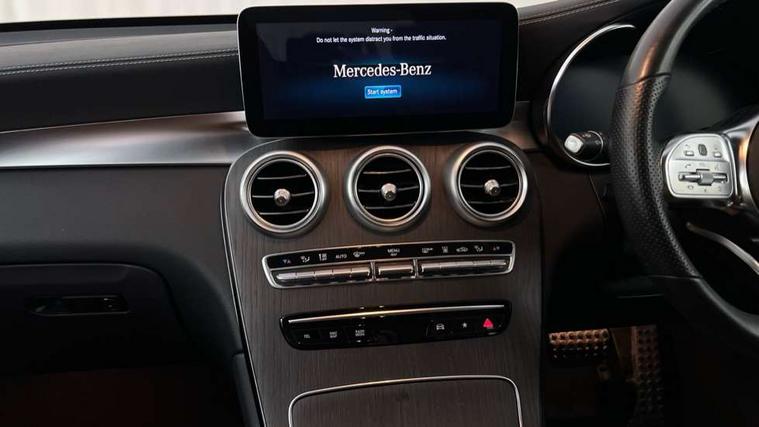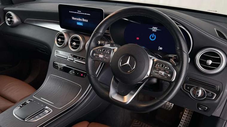 360 degree view camera, Active parking assist with parktronic system, Attention assist, Bluetooth interface for hands free telephone, Collision prevention assist plus, DYNAMIC SELECT with a choice of driving modes (ECO, Comfort, Sport, Sport+ and Individual), Easy pack automatic powered tailgate, ECO start/stop function, Hard disk navigation, Hey Mercedes Voice activation, Instrument cluster with12.3-inch digital instrument cluster display. High resolution instrument cluster screen with choice of three display styles, MBUX Interior assistant, Mercedes connect me with remote online services, Multi function trip computer, Outside temperature display, rear seatbelt status indicator, Remote and charging services plus, Remote boot release, Service indicator (ASSYST), Smartphone integration with Apple CarPlay and Android auto, Traffic sign assist, 1 x 3 pin domestic 8m straight charging cable, 1 x type 2 and 3 phase 4m straight wallbox cable, 4MATIC permanent four wheel drive, 50 litre fuel tank, 9G TRONIC plus automatic transmission with steering column gear selector, DIRECT SELECT steering wheel gearshift paddles, Diesel particulate filter, Sports suspension tuned for improved handling and driving dynamics, 5 speakers, Frontbass loudspeakers, MBUX multimedia system with DAB digital radio and touchpad, Media display 10.25-inch touchscreen display, Pre installation for Mercedes Benz Link, USB ports x 2 in centre console, Adaptive brake lights, Aluminium roof rails, AMG bodystyling - AMG front apron with sporty air intakes and chrome trim element, AMG diffuser-look rear apron with insert in black, Body colour door mirrors, Body coloured bumpers, Electric panoramic glass sunroof, Electric windows one touch open/close, Electrically adjustable and heated door mirrors, Front, side and rear exterior chrome trim, Headlamp assist automatic headlamp activation, LED high performance headlamps with integrated LED daytime running lights, LED tail lamp, Motor way mode function and locator lighting, Privacy glass with dark glass from B pillar backwards, Radiator diamond grille, Rain sensor windscreen wipers, Range adjustable headlights, Rear wiper, Running boards, Tinted glass all round with single layer safety glass, Two chrome plated tailpipe trim elements, 2 way rear head restraints, 3-spoke multifunction sport AMG steering wheel in black nappa leather with flattened bottom section, chrome insert and perforated leather in grip area, 40:20:40 split folding rear seats, Ambient lighting, AMG floor mats with edging and embroidered AMG lettering, AMG sports seats, Artico man-made leather upper dashboard with contrast topstitching, Automatic child seat recognition sensor, Black roof lining, Dividing net - rear, Double cup holder in centre console, Easy-pack removable load compartment cover, Front armrest with storage box, Front door sills with Mercedes Benz lettering, Front head restraints, Heated front seats, Illuminated and lockable glove compartment, Leather upholstery, Pre-entry climate control, Rear top tether child seat ISOFIX attachment, Sports pedals with stainless steel surfaces and rubber studs, Steering wheel with touch control buttons, THERMOTRONIC 3 zone automatic climate control, Interior lighting pack - GLC, Memory pack - GLC, Mirror pack - GLC, Storage pack - GLC, 3 rear 3 point seatbelts, Active bonnet, Adaptive brake system with HOLD function and brake drying in the wet, ASR, Black seat belts, Brake calipers with Mercedes-Benz lettering + perforated brake discs, Child proof door locks, Dual-stage airbags - driver and front passenger, driver knee bag and window bags for driver, front passenger and rear passengers, Electronic parking brake, Electronic stability programme (ESP) with curve dynamic assist and cross wind assist, Front and rear seatbelt reminder, Front passenger seat occupancy sensor, Hill hold function, Radar-based recuperation, Tyre pressure monitoring system, Warning triangle and first aid kit, Alarm system/interior protection/immobiliser, Automatic door locking, Keyless Go entry and starting function, Remote central locking, Anthracite open pore oak wood trim, 20" AMG 5 twin spoke alloy wheels painted in titanium grey with high sheen finish, Run flat tyres, Summer tyres,
