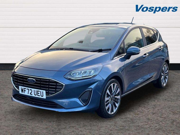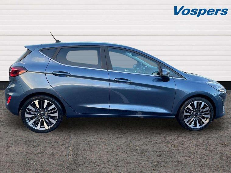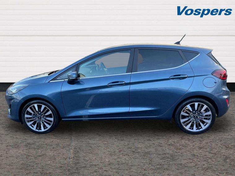4.2" TFT instrument cluster screen, Bluetooth system, Electric power steering, Ford easy fuel, Rear parking distance sensors, Selectable drive modes (Normal, Sport, Track), Traffic sign recognition, Trip computer, 2 USB ports, Auxiliary input socket, B&O Premium audio system with 8" touchscreen, 10 speakers, 360 degree sound system, Ford SYNC 3 navigation system and Ford pass connect, DAB Digital radio, Steering wheel mounted controls, Auto high beam, Body colour bumpers, Body colour door handles, Body colour rear spoiler, Body coloured electrically operated and heated door mirrors with side indicators, Chrome beltline trim, Chrome front grille, Chrome lower window surround, Cornering front fog lights, Electric front windows/one touch facility, Electric rear windows, LED Night signature to rear lights, Power foldable door mirrors with puddle lights, Quickclear heated windscreen, Rain sensing wipers and auto dimming rear view mirror, Rear privacy glass, Rear wiper, 3 spoke leather trimmed steering wheel with audio control, 60/40 split folding rear seat, Adjustable head restraints, Boot carpet, Centre console with opening armrest, 2x cupholders, 12v and USB, Chrome inner door handles, Drivers and Passenger lumbar support, EATC - Electronic Auto Temperature control, Footwell illumination, Front floor mats in velour, Front map reading lights, Front seat and rear pockets, Height adjustable passenger seat, Illuminated glovebox, Leather gear knob, LED ambient lighting, Load area light, Luxury woven headliner, Manual 4-way driver seat adjust, Overhead console with sunglasses holder, Pollen filter, Rake/reach adjustable steering wheel, Sensico partial premium upholstery, Sensico wrapped steering wheel, NCAP Pack - Fiesta, 3 point seatbelts on all rear seats, ABS+EBA, Curtain airbags, Driver and passenger airbags, Drivers knee airbag, Electronic stability control with hill start assist, Front passenger airbag deactivation, Front side airbags, Seatbelt warning, Two tone horn, Tyre pressure monitoring system, Ford keyfree system with Keyless entry and keyless start, MyKey system, Remote central locking & engine immobiliser, Thatcham Cat.1 alarm, 17" 8 spoke alloy wheels,