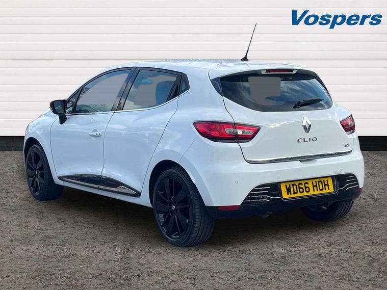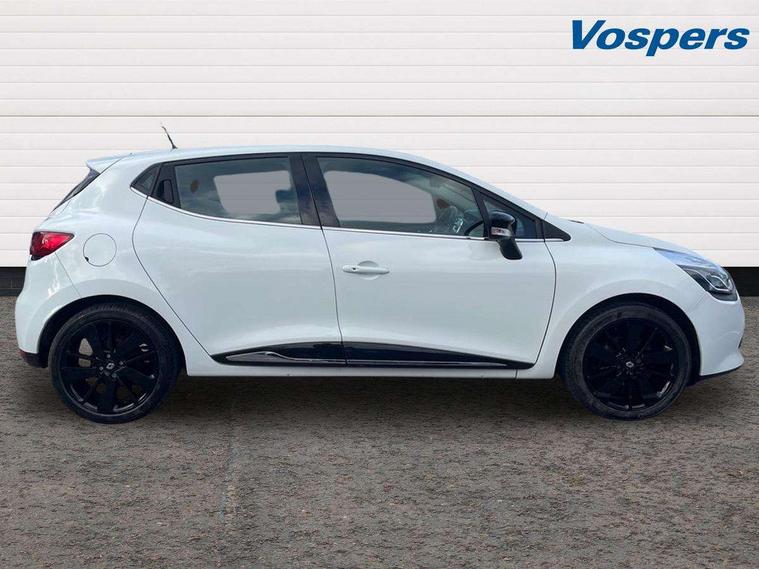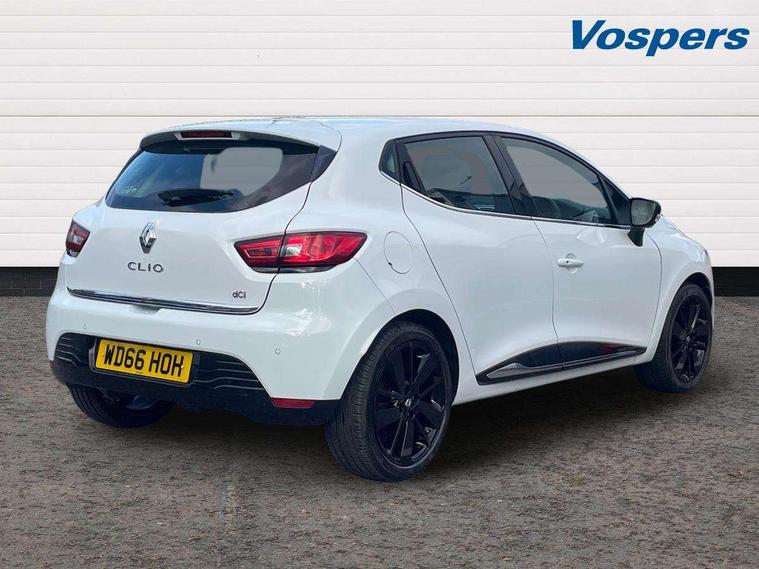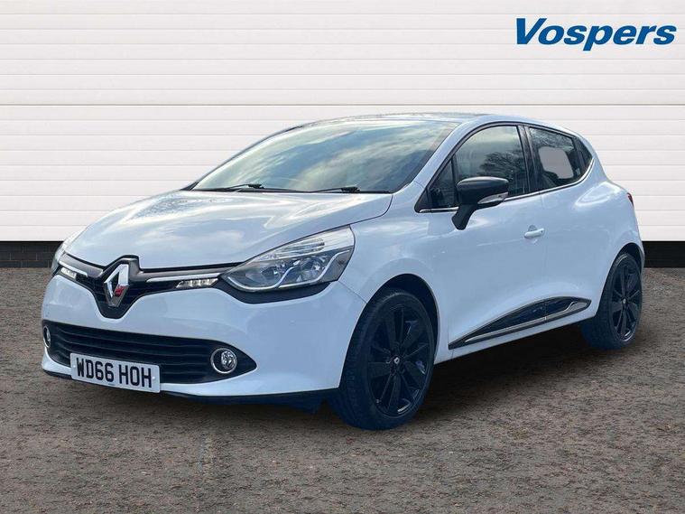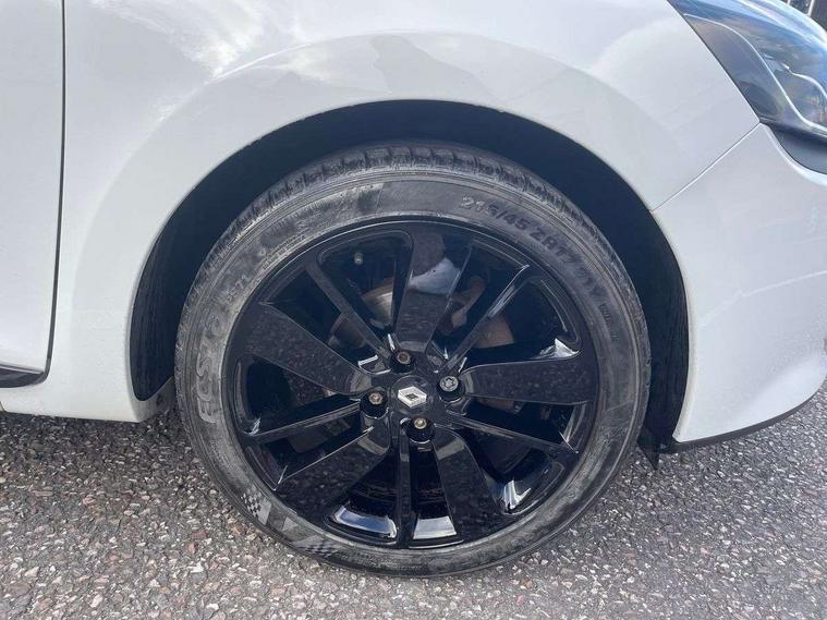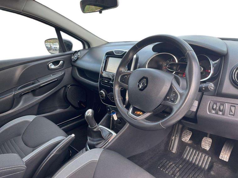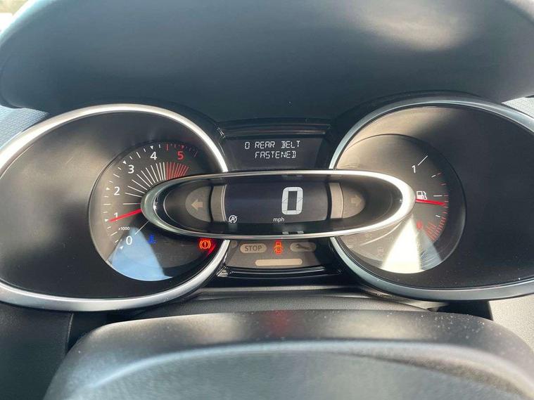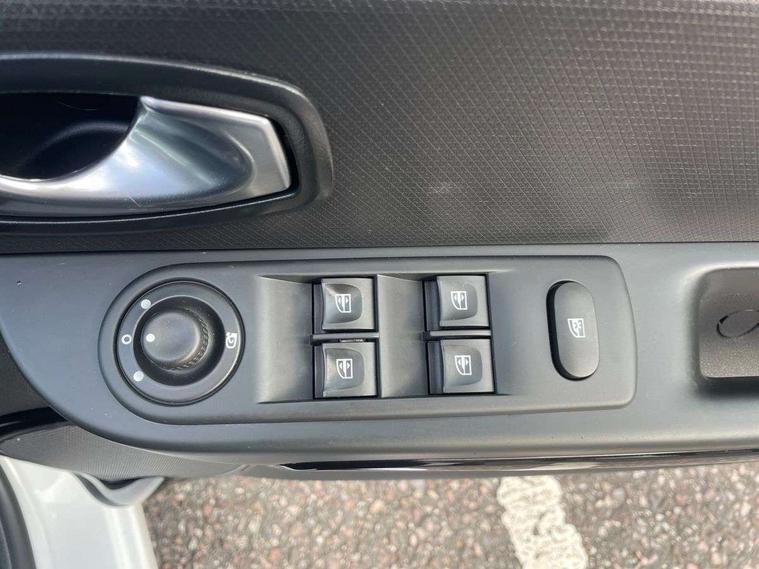 Cruise control + speed limiter, Rear parking sensor, Trip computer, Variable PAS, DAB radio preparation, Fingertip controls for audio system, Automatic headlights + automatic windscreen wipers, Black headlamp surrounds, Black rear diffuser, Body colour door handles, Body coloured bumpers, Body coloured rear spoiler, Chrome strip on lower grille, Chrome surround for front fog lights, Chrome window surround, Electric adjustable door mirrors, Electric folding door mirrors, Electric front windows + one touch + anti-pinch, Electric rear windows, Front fog lamps, Gloss black finish B pillar, Gloss black front bumper insert with chrome surround, Heated door mirrors, LED daytime running lights, Rear wiper, Tinted windows, Variable front intermittent wipers, 12V Accessory socket, 2 cupholders, 3 rear height adjustable headrests, 60/40 split rear seats, Air recirculation control, Auto climate control, Chrome gear knob insert, Chrome interior door handles, Design cloth upholstery, Driver's seat height adjustment, Folding front passenger seat, Front centre armrest with storage compartment, Full leather steering wheel, Gloss black door handle surrounds, Glovebox, Height adjustable front headrests, Height/reach adjust steering wheel, Isofix system on outer rear seats, Multi function steering wheel, Passenger dashboard tray, Pollen filter, 3 point seatbelts on all rear seats, ABS+EBD+Brake assist, Driver and passenger front and side airbag deactivation, Driver/Front Passenger airbags, Driver/front passenger side airbags, ESP + Traction control + Understeer control, Front side airbags(head+thorax), Height adjustable driver's seatbelt, Hill start assist, Seatbelt warning, Tyre pressure monitoring system, Anti-drill door locks, Child lock control of rear doors and windows, Deadlocking system, Hands free Renault card, Locking fuel filler cap, RAID (Renault Anti-Intruder Device) with automatic door locking, Remote central locking, Thatcham Cat 2 engine immobiliser, Dark carbon soft touch dashboard, Gloss black air vent surround, Gloss black centre console, Gloss black dashboard inserts, Instrument dials in chrome surround,