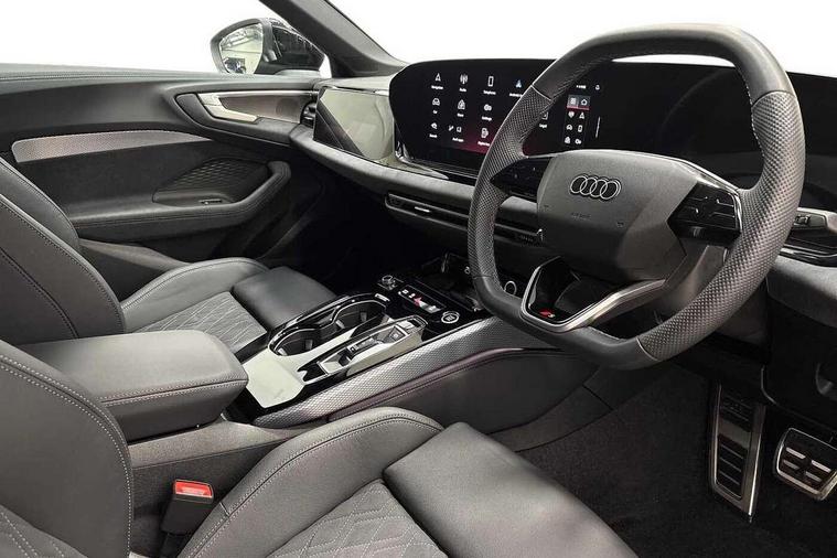 Adaptive cruise control, Advanced driver attention and fatigue montior, Audi application store, Audi assistant, Audi connect emergency call and service, Audi drive select, Audi smartphone interface, Audi virtual cockpit plus with 11.9" OLED colour display, Automatic start/stop system with coasting functionality, Camera based traffic sign recognition, Intersection assist, Lane change assistant with exit warning system, rear cross traffic alert and rear turn assist, Lane departure warning with emergency assist, MMI 10.9" front passenger touch display, MMI navigation plus with high resolution 14.5" OLED touchscreen colour display, Park assist plus, Parking system plus with 360 display, Progressive steering with servotronic, Swerve assist and turn assist, Top view camera, Traffic sign based speed limiter, Sports suspension lowered by 20mm, 2 USB-C ports in both the front and rear, Audi sound system impressive sound with 10 loudspeakers including centre speaker and subwoofer, 6-channel amplifier with a total output of 180 watts, DAB digital radio reception, Smartphone compartment with wireless charging, Aluminium window trims, Auto dimming rear view mirror, Black door handles, Dark chrome-plated tailpipe trims, Door mirrors - electrically adjustable, heated, folding and auto dimming on both sides, Front and rear electric windows, Front door sill trims with aluminium inlays, illuminated with 'S' logo, Headlight cleaning system, High beam assist, LED daytime running lights, LED rear lights pro incl. dynamic rear indicators and illuminated light strip with animated coming and leaving home function, LED third brake light, Matrix LED headlights with eight light signatures selectable via the MMI or the myAudi app, Privacy glass, Rear and side windows with heat insulating glass, Rear boot, Rear side wing doors, S Line badges on the front wings, S line bumpers, radiator grille and diffuser in phantom black and diffuser insert in matt anthracite, White rhombus logo projection light in exterior mirrors, Windscreen with acoustic glazing, 3 rear headrests, 3 seat rear bench, 3 spoke leather steering wheel with multi-function buttons with touch control, flattened on top and bottom, with S badging and contrast stitching, 3-zone automatic climate control, 40:20:40 split folding rear seat bench with centre armrest and cup holders, Comfort front centre armrest, Electrically adjustable front seats, Front and rear floor mats, Front sport seats with integrated headrest and S embossed logo, Headlining in black cloth, Heated front seats, i-Size child seat mounting on the front passenger side and outer rear seats, i-Size and top tether on the outer rear seats, Luggage compartment lid, electrically opening and closing, Manual steering column height and depth adjustment, Memory function for driver seat, Single front passenger seat, Stainless steel pedals and footrest, Steering wheel grips in perforated leather and shift paddles, Ambient lighting package plus - A5, Black styling package plus - A5, 3x3 point rear seat belts, Acoustic vehicle alerting system, Convenience key with safelock, Driver airbag, Electric child safety locks, First aid kit with warning triangle and vests, Front emergency brake assist, Front passenger airbag, Front passenger airbag deactivation, Hill hold assist, Occupant detection in rear seat area, Proactive passenger protection system for front, sides and rear, Red brake calipers, Seat belt monitoring with rear seat occupant reminder, Side airbags in front and rear with head airbag system and front interaction airbag, Tyre pressure loss indicator, Anti theft alarm, Anti-theft wheel bolts, Keyless Go, Accent surfaces and control buttons in gloss black, Black dashboard with contrast stitching, Softwrap in Dinamica with contrast stitching, Upper and lower interior elements in dinamica microfiber, 20" 5 arm fold design Audi sport alloy wheels in silk matt grey and gloss turned finish, Tyre repair kit,