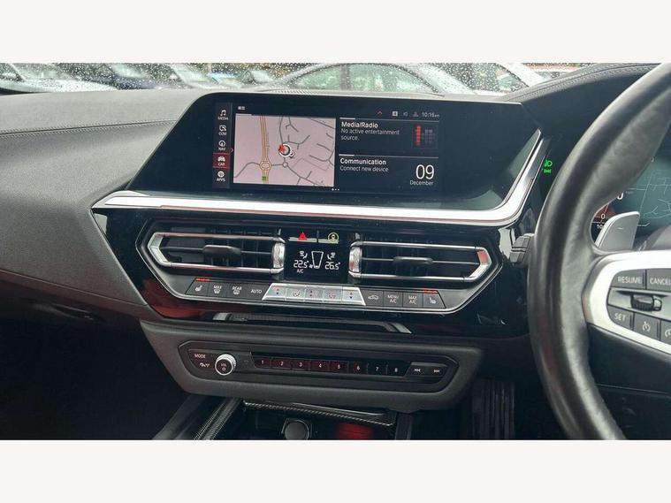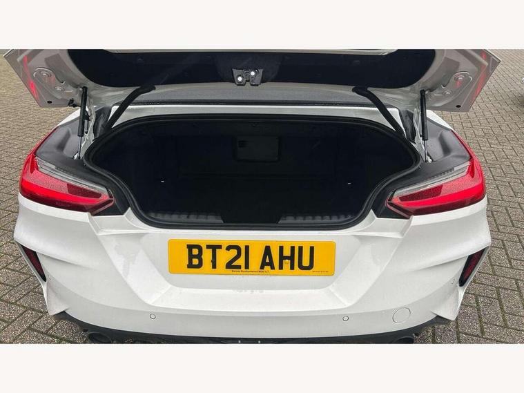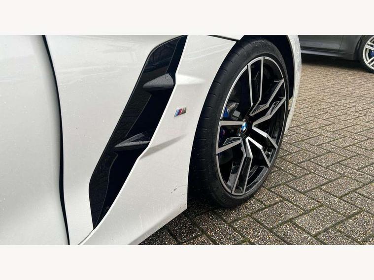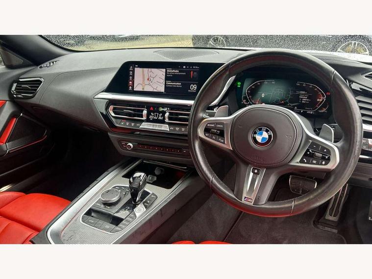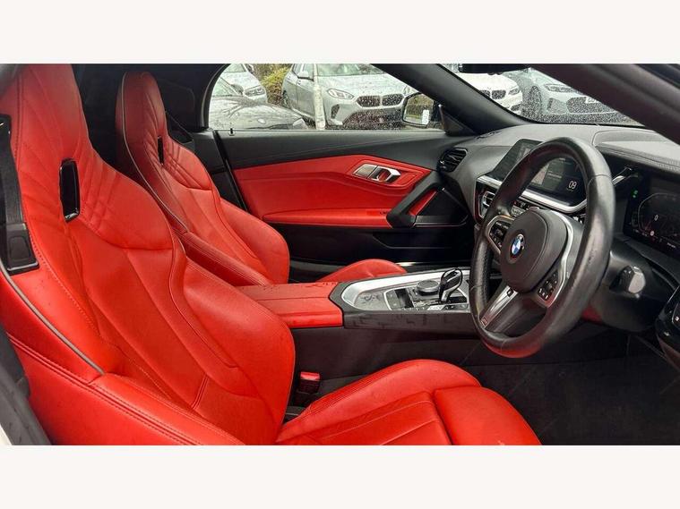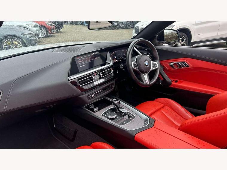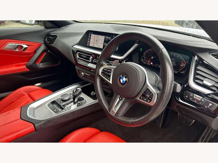 Active Guard, Auto start-stop, Bluetooth hands free telephone connection with USB audio interface + audio streaming, BMW ConnectedDrive online services, BMW Live Cockpit Professional with 10.25" high resolution instrument and control display, BMW Teleservices, Electric power steering, Fuel gauge, Instrument cluster, Oil sensor for level and grade, warning by check control system, Oil temperature gauge, Optimum shift indicator, Pull away assistant, Run flat indicator, Speedometer with mph readout, Tachometer, Variable sport steering, Double joint spring, Double VANOS, Drive performance control with ECO PRO comfort + sport mode, Eight speed steptronic sport transmission, with gearshift paddles, Electronic differential lock, Fuel tank breather system, High precision injection, M sport suspension, HiFi loudspeaker system, USB connection, Automatic headlight beam throw control with load dependent regulating reaction, dynamic compensation of braking dive and acceleration squat, Door sill finishers with M designation, Door sill strips, Dynamic braking lights comprising activated hazard warning flashers and third brake lights, Electric heated rear window, Exhaust tailpipe - split left and right, Exterior mirror housing finished in body colour, Exterior mirrors - electrically folding with anti-dazzle, Fingertip control / anti-trap function on electric window, Follow me home headlight function, Front and rear bumper system with replaceable deformation elements, Green tinted heat protection glazing, Heated windscreen washer jets, High gloss shadow line, Interior rear view electrochromatic mirror with automatic anti dazzle function, Kidney grille in mesh design, LED daytime driving lights, LED Indicators, LED rear lights, Lightweight engineering, M aerodynamic body kit, M Sport exterior styling, Matt black window recess finisher, Model logo, Tailgate release handle, Two stage brake force display, Visible VIN plate, Welcome lighting, Windscreen wipers with adjustable interval, 12V power socket in front storage compartment, Activation of interior lighting, Additional storage compartment - 4 lashing eyes, strap and storage net, Ambient lighting, Battery in luggage compartment, Child seat ISOFIX attachments for passenger seat, Cupholder, Driver and front passenger heated seats, Front and rear velour floor mats, Front headrests, Height adjustable mechanically and infinitely variable steering column, M sport leather steering wheel, M Sport seats for driver and passenger, Microfilter and active carbon filter, Sunvisors with vanity mirrors, Two zone automatic air conditioning, Vernasca leather upholstery, Connected package professional - Z4, 3 point front seat belts, Airbags - Front driver and passenger, front and side impact protection, Anti lock braking system (ABS) with brake assist, Automatic Stability Control (ASC), BMW emergency call, Brake energy regeneration, Braking readiness, Cornering brake control (CBC), Crash sensor activating central locking release, hazard warning lights, fuel cut off, interior lighting, safety battery terminal clamp and airbags, Deactivation of fuel pump in the event of a crash, Dry braking, Dynamic brake control, Dynamic stability control + (DSC+), Dynamic Traction Control - DTC, Electromechanical parking brake with automatic drive away release and auto hold function, Front and rear brake discs with interior ventilation, Plastic fuel tank, Pyrotechnic seat belt tensioners, Roll over protection, Seat belt force limiter, Seat belt stopper, Seat occupancy protection, Two tone horn, Tyre pressure monitoring with three level warning strategy, Centre lock switch, Closing system with central locking, Electronic vehicle immobiliser, Start/stop button with Comfort Go keyless engine start and auto Start/stop deactivation button, Thatcham cat 1 remote alarm, Sensatec dashboard, 18" Double spoke M light alloy wheels in bicolour ferric grey - style 798M, Reduced rolling resistance tyres, Tyre repair kit,