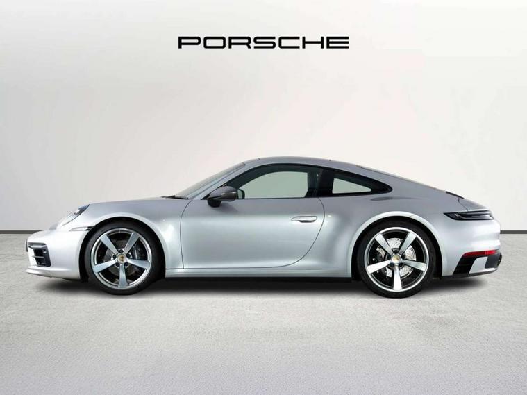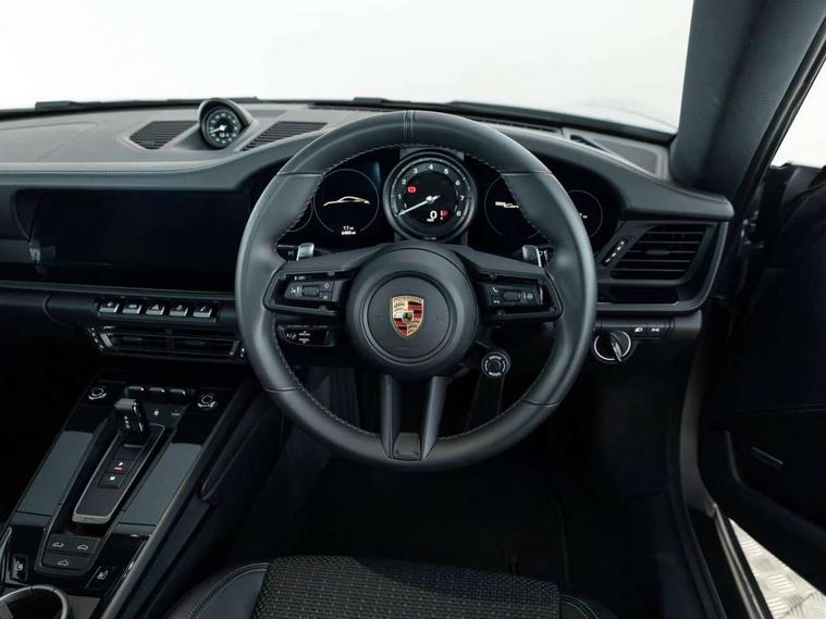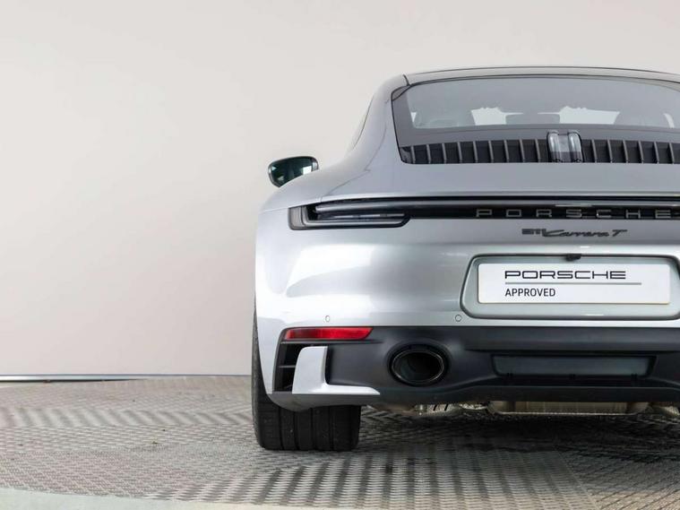 10.9 inch centre display, Automatic start/stop system, eCall emergency system, Gear indicator in rev counter, Instrument cluster with central analogue rev counter and two 7-inch TFT displays, Porsche Communication Management (PCM) including online navigation module, mobile phone preparation, audio interfaces and voice control system, Porsche WET Mode, Service indicator, Smartphone integration with Apple CarPlay and Android auto, Stationary management with HOLD function, Trip computer, Warn and brake assist including pedestrian protection, 8 Speed Porsche Doppelkupplung (PDK), Aluminium block and cylinder heads, Direct fuel injection (DFI), Expansion intake manifold, Four valve per cylinder, Integrated dry-sump lubrication with an on-demand oil pump, McPherson front axle with anti roll bar, Multi-link suspension with anti-roll bar at rear, PASM sport suspension 10mm lowered with helper springs added to rear, Porsche Stability Management (PSM), ABS with extended brake functions, Rear wheel drive, Twin turbocharger intercooled, Two gasoline particulate filter, Two three-way catalytic converters and on-board diagnostics for monitoring emission control system, VarioCam Plus variable valve timing and switchable valve lift, Water cooled with thermal management, 2 USB-C connectivity and charge ports in the centre console storage compartment, DAB Digital radio, "PORSCHE" lettering integrated in taillight strip, 911 Carrera T decorative side logo in agate grey, Auto deploying rear spoiler, Automatic headlight activation including welcome home lighting, Automatically dimming interior and exterior mirrors with integrated rain sensor, Black trim strips, Body coloured bumpers, Electrically adjustable heated exterior mirrors on door waist rails, aspherical on driver's side, Green tinted thermally insulated glass, Heated rear windscreen, Intelligent lightweight body in Aluminium/Steel composite construction, LED auxiliary light units in the front end with position lights, direction indicators and side indicators, Power windows with one touch operation and door seal protection, Rear boot, Retractable door handles, Side air intakes at front with active cooling flaps and air blades, Side skirts trim in black, Slat Inlays on rear lid painted in in high gloss agate grey, Sports exhaust system tailpipes in black, Taillight strip including integral parking lights and rear fog light, Trims on sideskirts in black, Windscreen washer system with aero wiper blades and washer jets, 12V socket in front passenger footwell, 2-zone automatic climate control with separate temperature settings for driver and front passenger, Ascending centre console with storage compartment, Clothes hooks on seat backrests, Driver and front passenger illuminated vanity mirrors, Embossed leather on front center seat, side bolsters and front seat headrests, Front head restraints, Heated front seats, ISOFIX child seat mounting points on passenger seat, Leather headrests embroidered with 911 logo in black, LED door lights, LED footwell lights, LED glove compartment lighting, LED ignition light, LED luggage compartment lighting, LED orientation light, LED reading lights, Lockable glove compartment, Luggage compartment at front, Luggage compartment lid release, Particle/pollen filter with active carbon filter, PDK gear selector with automatic mode, manual gear selection via shift paddles on the steering wheel, Single front passenger seat, Smooth finish leather on steering wheel rim, door handles, door panel armrests and centre console storage compartment lid, Split folding rear seats, Storage compartments in each doors, Two individual cupholders 1x as inlet in centre console and 1x passenger side, 4 piston aluminium monobloc fixed + brake calipers at front and rear + brake calipers with black finish, Brake discs with 330mm diameter at front and rear, internally vented and cross-drilled, Electric parking brake, Electromechanical power brake, Full size two stage airbags for driver and front passenger, Porsche side impact protection system includes side impact protection in doors, curtain, head/thorax airbags for driver/front passenger in each door, Tyre pressure monitoring system, Dashcam prep, Engine immobiliser with remote central locking and alarm system with ultrasonic sound based interior surveillance, Porsche vehicle tracking system (PVTS Plus), Tyre repair kit with sealing compound and electric air compressor,