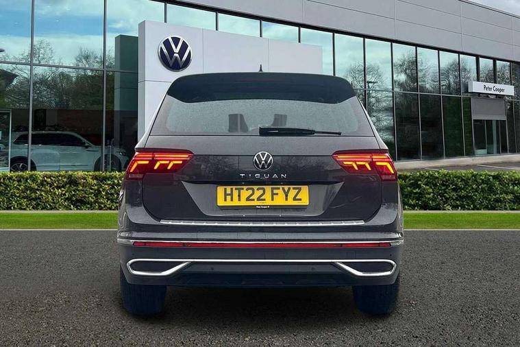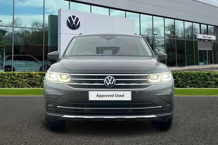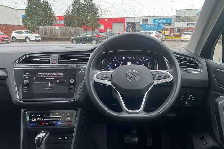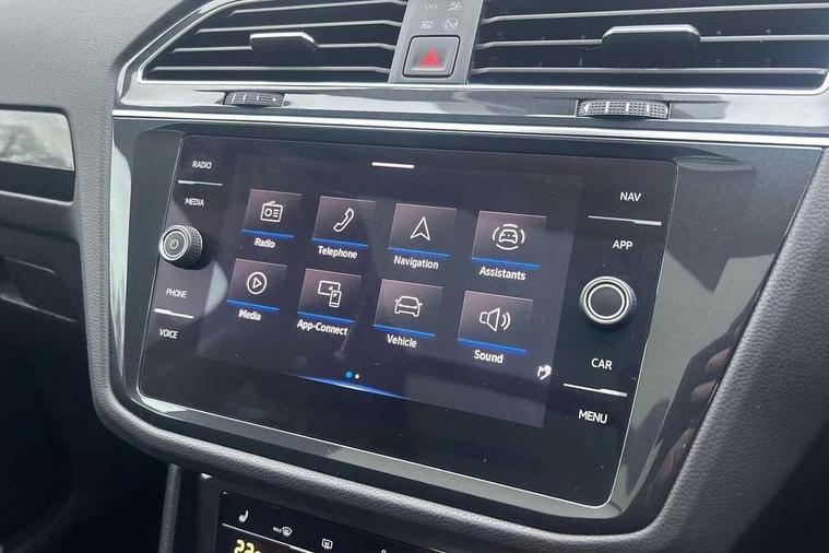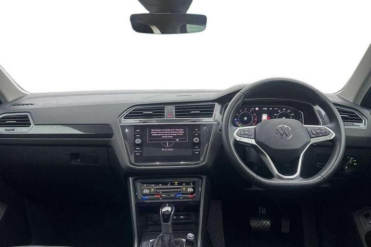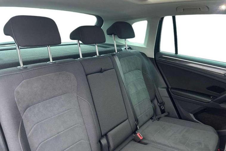Adaptive cruise control ACC stop and go including speed limiter, App-Connect incl. App-Connect Wireless for Apple CarPlay and Android Auto, Bluetooth phone integration system, Distance control assist, Driver alert system, Driver profile selection, Dynamic road sign display, eCall emergency call system, Electromechanical speed sensitive power steering, Engine start/stop button, Lane keeping system Lane Assist, Lights on warning, Motorised electric tailgate operated via key fob, drivers door and foot movement under tailgate, Multifunction front facing camera, Outside temperature display, Premium multifunction display with multi colour display, Remote control boot opening, Rev counter, Revision / skills operating concept travel assistant, Service interval indicator, Speed limit display, Start/stop system with regenerative braking, Tailgate/trunk lid unlocking from outside, Trip computer, Warning sound and light for doors and tailgate open, Battery regeneration during braking, XDS electronic differential lock for improved traction and handling, 4 X 20 watt output, 8 Speakers, Diversity antenna for FM reception, Radio, SD card slot, Simultaneous pairing of 2 compatible mobile devices, SMS functionality - read, compose and send SMS messages using touch-screen display, Title and cover art display, USB C ports, Aluminium door sill protectors, Auto dimming interior rear view mirror, Automatic headlight control system, Body colour door handles, Body coloured bumpers, Body coloured door mirrors with integrated indicators, Coming/leaving home lighting function, Dynamic headlight range control, Front and rear electric windows, Heated rear window, High level 3rd brake light, IQ light-Adv high beam, Dynamic light assist for LED matrix headlamp+LED separate DRL+DCL, dark red rear LED tech, Poor weather light+ cornering light, Laminated safety glass windshield, heat and sound insulating, LED rear number plate lights, Poor weather light and cornering light, Privacy glass for rear side windows and rear window, Rain sensor windscreen wipers, Rear exhaust tailpipe, Rear fog lamp, Rear side wing doors, Rear windscreen washer and wiper with interval delay, Side and rear windows in heat insulating glass, Tilting and sliding panoramic sunroof with rear panoramic sunroof, Trailer Stability Programme, Windscreen wipers/ intermittent wipe + 4 position delay, 12V outlet in center console rear and in luggage compartment, 12V outlet in front and tray, 2 cup holders in front, 2 LED front reading lights, 2 LED rear reading lights, 3 bench rear seats in 2nd row, 3 rear headrests, 4 load lashing points, 40:20:40 split folding rear seats, Air Care Climatronic 3 zone automatic climate control with enhanced air filter and controls in the rear, Backrest release for left front seat, Climate control unit rear with touch function, Door and side trim panel in foam film and woven fabric, Front centre armrest, Front footwell illumination, Front seats head restraints (x-adjustment), Height adjustable front seats, Height/reach adjust steering wheel, Instrument lighting white adjustable panel illumination, Interior light with delay, Isofix Preparation 2 Rear child seats, Leather gear knob, Lockable cooled glovebox, Luggage compartment lighting, Luggage net, Rear bench seat asymetrically split folding, longitudinally movable and folding with load-through hatch and center armrest, Remote unlocking for rear seat backrest, Removable luggage cover, Removable rear headrests, Safety optimised front head restraints, Single front passenger seat, Sliding/reclining rear seats, Standard rear seat release, Storage compartment in driver's door, Storage compartment in passenger's door, Storage compartment in rear doors, Storage compartments in luggage area left and right, Storage tray on dashboard, Sun visors with illuminated vanity mirrors, Top front comfort seats, Variable boot floor, height adjustable and removable, Easy open and close pack with safelock - Tiguan, 3 point seat belt for centre rear seats, 3 point seat belts with seat belt pretensioners for the outer rear seats, Active bonnet, Curtain airbags for front and rear passengers, Driver/Front Passenger airbags, Drivers knee airbag, Electronic parking brake with auto hold, Electronic Stability Control with driver steering recommendation, ABS, ASR, EDL, EDTC and trailer stabilization, Front assist with autonomous emergency braking (for Adaptive Cruise Control ACC up to 130 mph), Front disc brakes, Front passenger airbag deactivation, Front side airbags, Height adjustable front 3 point seatbelts + pretensioners, Hill hold control, Manual child proof rear door locks, Pedestrian monitoring system, Power assisted brakes, Proactive passenger protection system in combination with front assist, Rear disc brakes, Rigid safety cell with front and rear crumple zones, Two tone horn, Warning sound and light for front seat belts if unfastened, Anti theft alarm system with interior monitoring, backup horn and towing protection, Anti theft wheel bolts, Central locking system with safelock radio remote control and 2 remote control folding keys, Electronic engine immobiliser, Tool kit,
