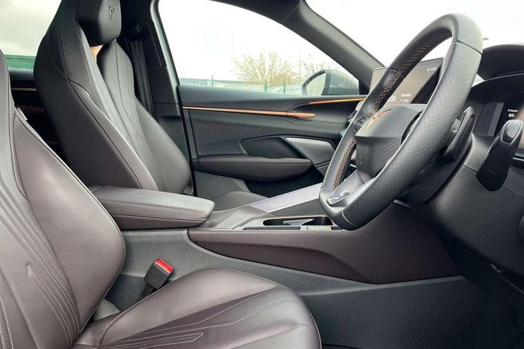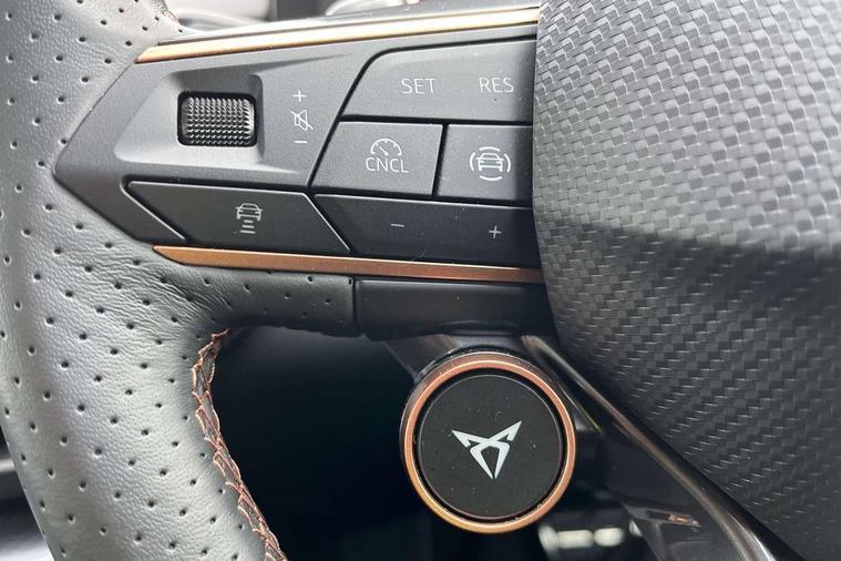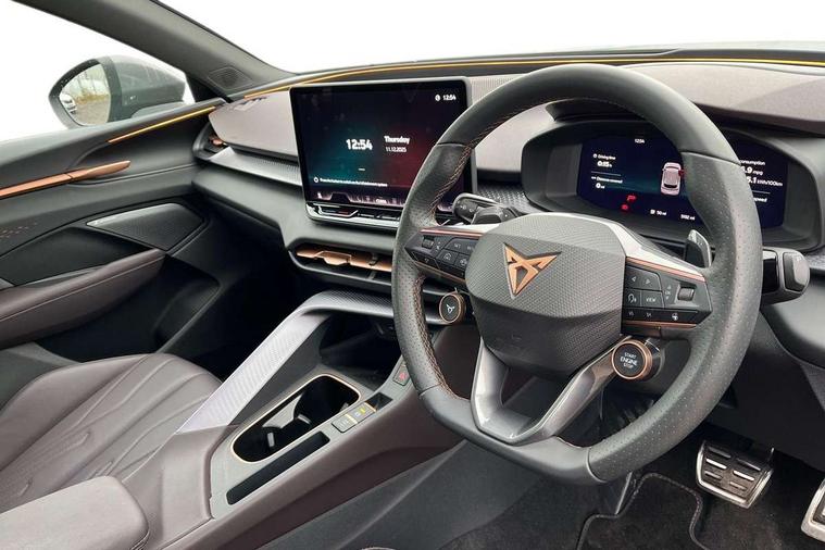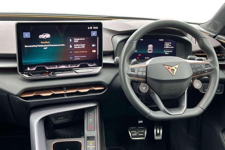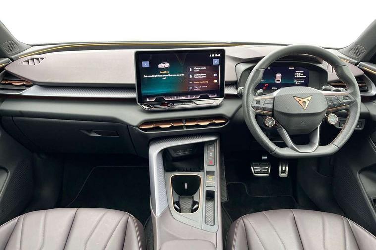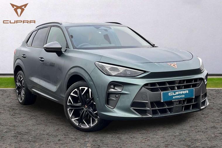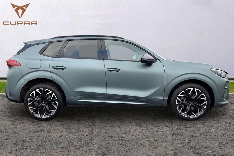 10.25" digital cockpit and configurable dashboard, Adaptive cruise control with follow-to-stop and speed limiter, Advanced driver alert system, Advanced lane assist with semi-automatic vehicle control in a medical emergency and traffic jam assist, Driving profile selection (DCC- Comfort, performance, CUPRA, Individual, Dynamic road sign display, E-call, Electric tailgate with virtual pedal, Emergency steering support with turn assist, Four x USB Type C ports (2 in front and 2 in rear), Front and rear parking sensors, Front assist (Forward collision warning with automatic braking) with multifunction camera and front cross traffic assist, Head up Display, Intelligent park assist, Media system with Nav - 12.9" touch display, voice control, full link phone (wired/wireless), DAB and Steering wheel mounted controls, Rear traffic assist, Side and exit assist, Speed sensitive power steering, Start/stop system with regenerative braking, Top view camera (front camera, rear camera, 2 side cameras), Wireless phone charger, 10 amp mode 2 charging cable, 16 amp mode 3 charging cable, Adaptive chassis control with a 2-valve shock absorber, Auto dimming rear view mirror, Black roof rails, CUPRA 3D rear lights with ceremony & swiping indicator and illuminated logo, Dark tinted rear windows, Daytime running lights with automatic headlight control and Coming and Leaving home function, Door mirrors with memory function and lowing function on passenger mirror, Electric front/rear windows, Electrically adjustable, heated and folding door mirrors, Front fog lamps with cornering function, Heat reflecting windscreen, High beam assist, Rain sensing wipers, Rear fog light on one side, back up light on both sides, Rear side wing doors, Rear wash/wipe, Third brake light, Welcome lights (within exterior mirror housing), 3 seat bench in 2nd row, Black roof lining, Cupra sports pedals, Driver seat memory function, Electrically adjustable front seats including lumbar support, Front and rear head restraints, Front and rear reading lights X 4, Front centre armrest, Heated front seats, Heated leather wrapped multi function sports steering wheel with tiptronic, Illuminated interior front door sills, Isofix, Leather upholstery, Operating voltage 12V, Single front passenger seat, Smart wraparound interior lighting, Sunvisors with illuminated mirror, Three zone climate control with control panel in rear, Unsplit rear seat bench, split folding backrest, with centre armrest, Variable luggage/load compartment floor, Pure performance pack - Terramar, 3 point seatbelts in front with pretensioner and electric height adjustment, 3 point seatbelts on all rear seats, Brake control system - ESC and brake booster, Child proof door locks, Driver and front passenger airbags, Electronic parking brake, Front and rear disc brakes, Front interaction airbag, Front passenger airbag deactivation switch, Front side airbags with curtain airbags, Pre-crash front and rear seat belt tensioner, window closure and hazard lights, Tyre pressure monitoring system, Visual and acoustic seat belt reminder, electric contact in front and rear, Anti theft alarm, Keyless locking and starting system with keyless access, Locking wheel bolts, Black decorative trims, Chrome interior detailing, Breakdown kit, Performance tyres in polmer coating, Tool kit,