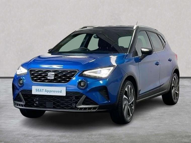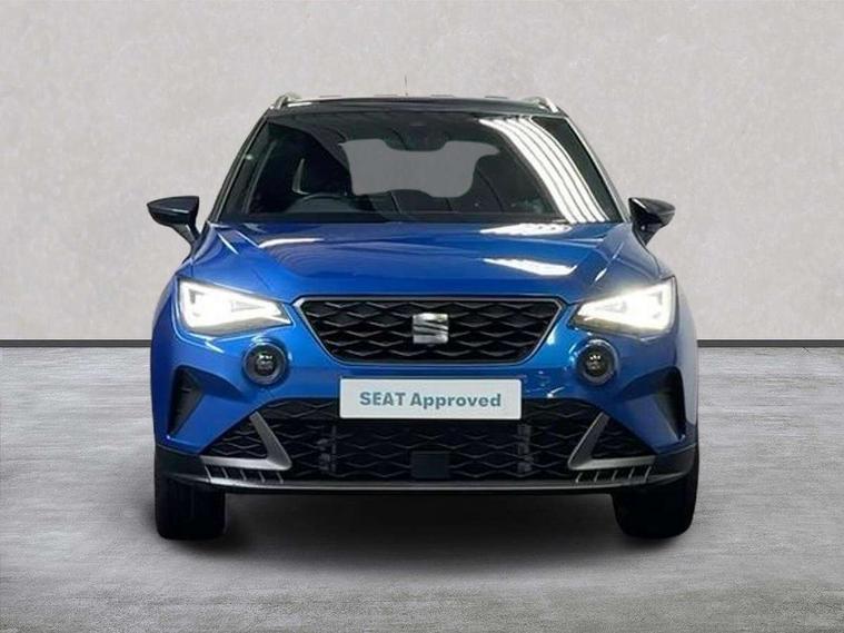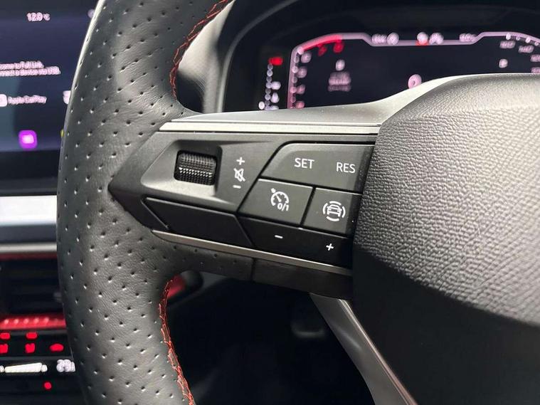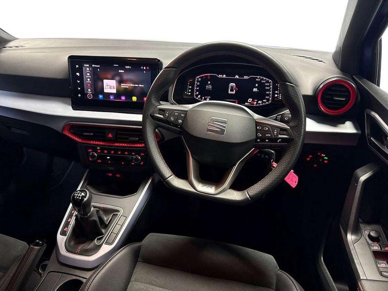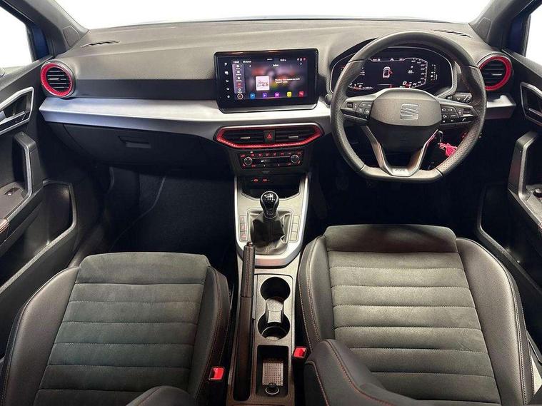'Lights On' Reminder warning buzzer, 10" Digital cockpit, Digital clock, E-call, Electric speed sensitive power steering, Full Link Smartphone Integration with Mirror Link, Apple Car Play, Google Android Auto with USB Type C cable for Apple and Android compatibility, Low fuel warning light, Outside temperature display, Rear parking sensor, RPM counter, Seat connect with safety, service, remote and online, SEAT Drive profile - Four different models normal-sport-eco-individual, steering response, throttle response, Trip computer, Wireless phone charger, 9.2" colour touchscreen with navigation system, voice control and USB port (type c), Bluetooth interface for hands free and audio streaming, DAB digital radio and AM/FM radio, Steering wheel mounted audio controls, Anti theft roof antenna, Auto dimming interior rear view mirror, Automatic activation of hazard warning lights, Body coloured bumpers, Body coloured door handle inserts, Chrome roof rails and window surrounds, Dark tinted rear windows, Electric front/rear windows, Electrically adjustable, heated and folding door mirrors, Front fog lights with cornering function and rear fog light, FULL LED automatic headlights with dynamic headlight range control, coming and leaving home, LED daytime running lights, LED rear tail lights and licence plate lights, Protective side mouldings, Rain sensing wipers, Rear side wing doors, Rear spoiler, Rear window wash/wipe, Roof colour door mirrors, Third brake light, Twin exhaust pipe styling hidden exhaust pipe, Visible VIN plate, Windshield wiper with intermittent control and potentiometer, 2 cupholders, 3 seat bench in 2nd row, 60/40 split folding rear seat, Aircare filter, Black interior roof, Double boot floor, Driver sunvisor with covered mirror + card holder, Dual zone climate control, Front comfort seats, Front courtesy light with front reading lights, Front seat back storage pockets, Gear shift indicator, Heated front seats, Height adjustable front seats, Height/reach adjustable steering column, Illuminated boot, Instrument lighting with brightness control, Interior ambient lighting, Interior light in footwell, central console and door panel, ISOFIX points in outer rear seats with top tether anchorage points, Microsuede cloth upholstery, Passenger sunvisor with vanity mirror, Perforated flat bottomed leather steering wheel/gear knob/handbrake with red stitching and FR logo, Single front passenger seat, Two front and three rear height adjustable headrests, Interior chrome pack - Arona, 3 point seatbelts on all rear seats, ABS, Active front headrests, Child locks on rear doors, Driver and front passenger airbags with front passenger airbag de activation, front side and curtain airbags, Electronic stability control, Emergency Brake Assist (EBA) and front assist, Front and rear seatbelt reminder, Hill hold control, Multi-Collision braking, Tiredness recognition system, Traction control, Tyre pressure monitoring system, Alarm with back-up horn, Electronic engine immobiliser, Locking wheel bolts, Remote central locking + deadlocks, Tow away protection, Titan black dashboard, 18" Performance Cosmo grey matt alloy wheels,