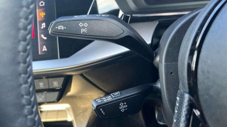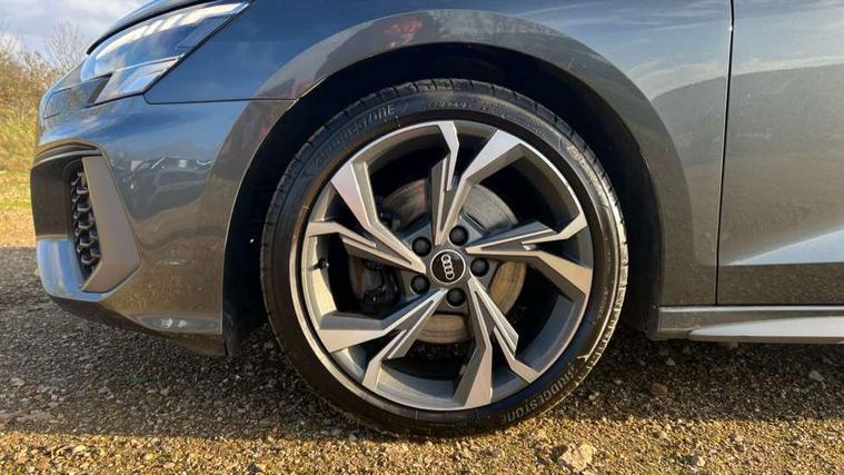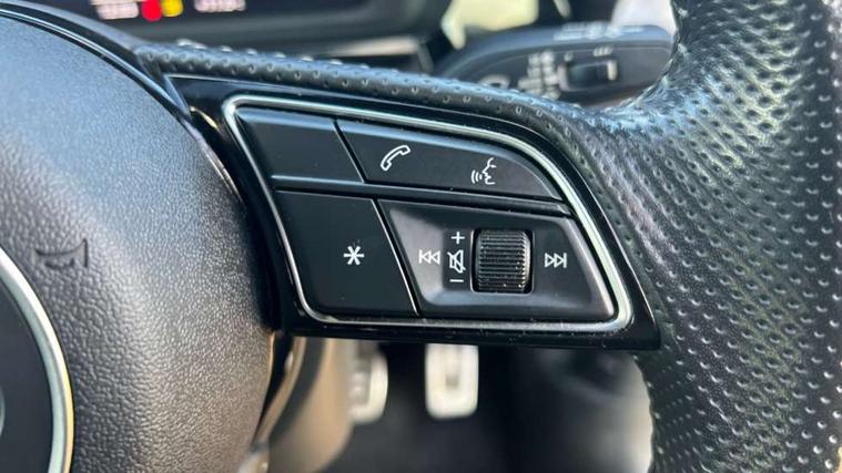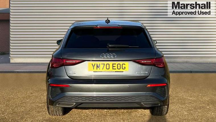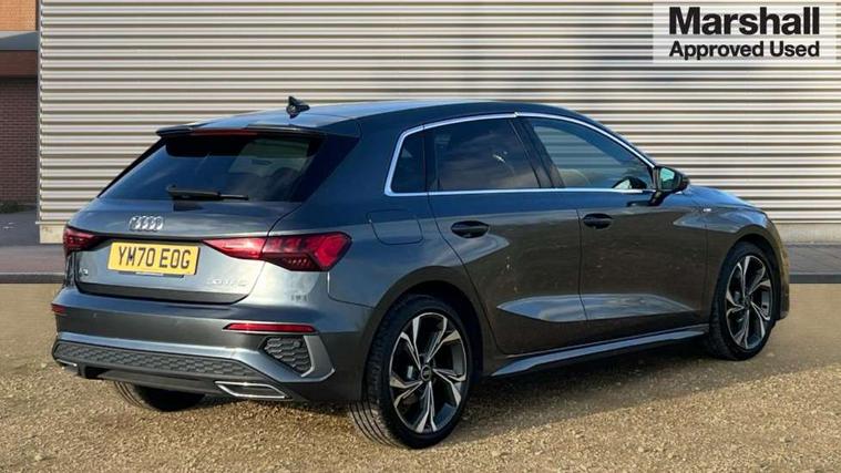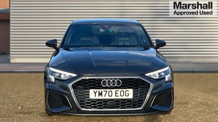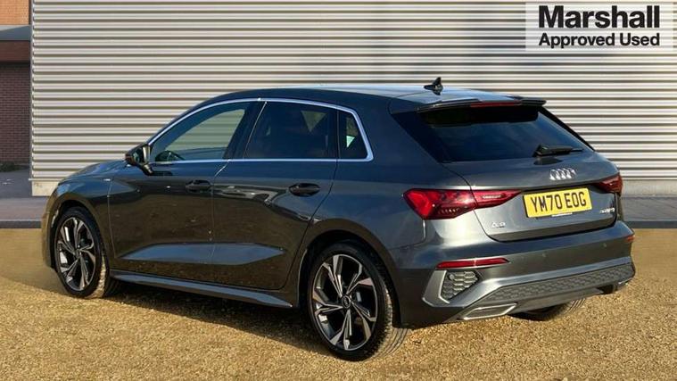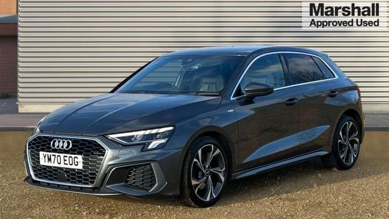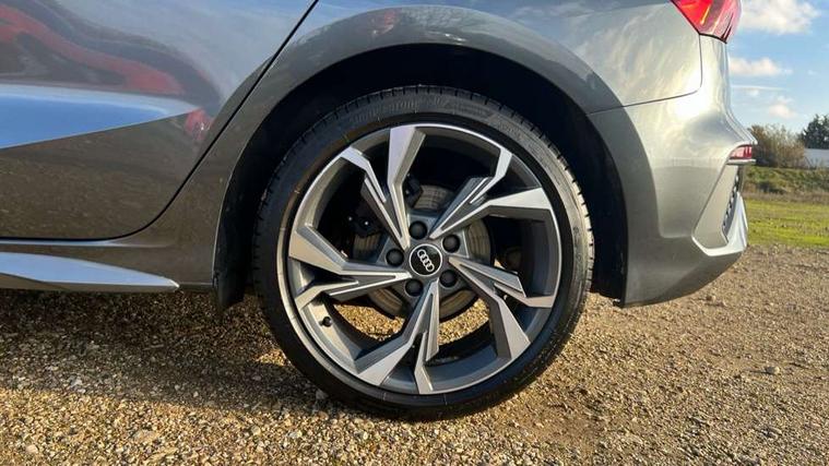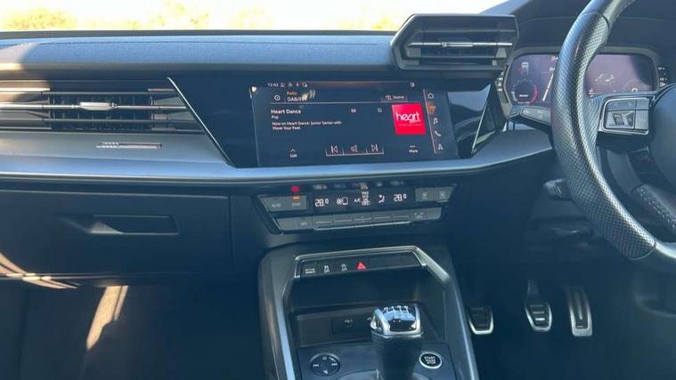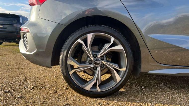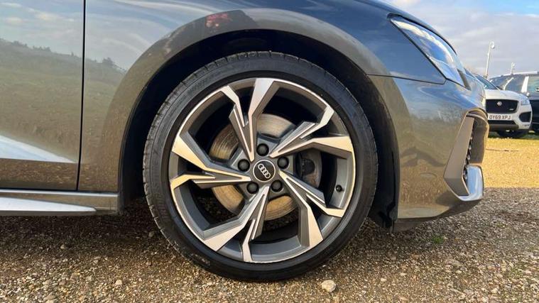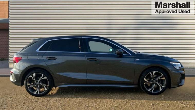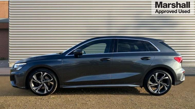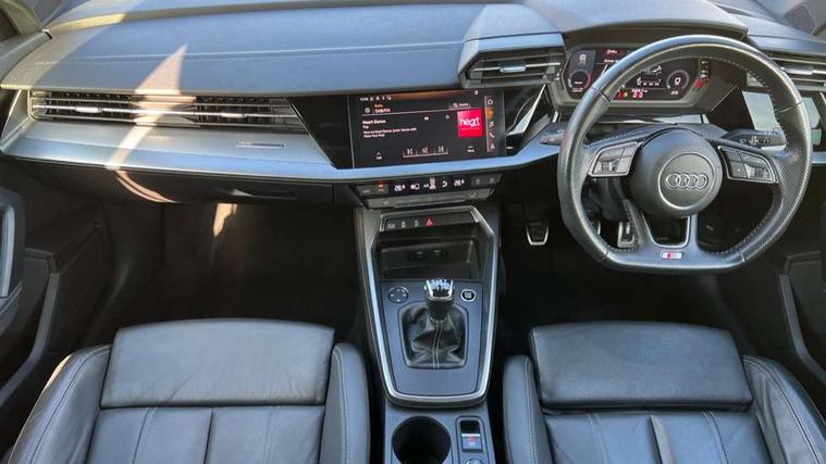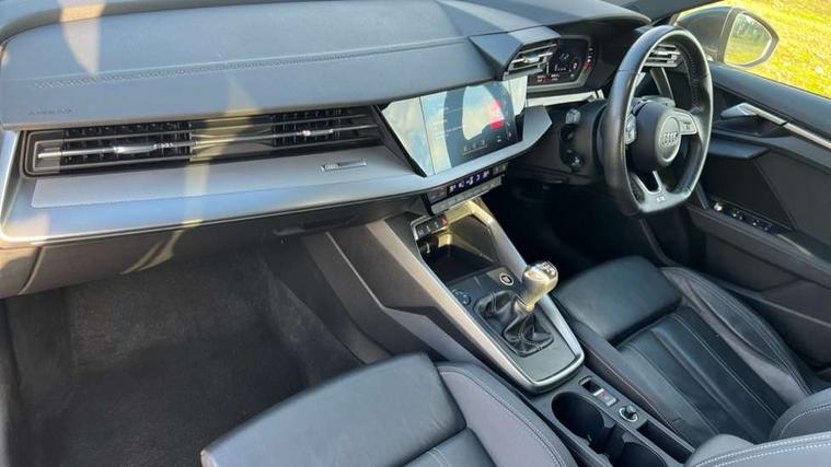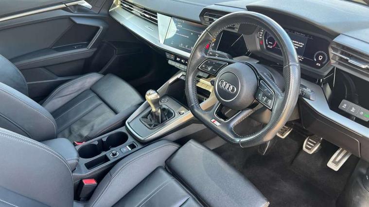 Audi connect emergency call and service, Audi drive select (Auto, Comfort, Dynamic and Individual), Audi smartphone interface, Audi Virtual Cockpit - 10.25" digital and colour instrument cluster, Automatic start/stop system with recuperation, Bluetooth interface, Collision avoidance assistant, Cruise control, Electromechanical power speed sensitive steering, Lane departure warning system, MMI Navigation Plus with high resolution 10.1" colour touch screen display, Rear parking sensors, Service indicator, Trip computer, Voice control system with natural language interaction, 2xUSB-C connection with data and charging functions, 6 passive loudspeakers, DAB Digital radio, Acoustic glass windscreen, Aluminium window trim, Auto dimming frameless rear view mirror, Body colour exterior mirrors, Electrically adjustable/heated/folding/auto dimming door mirrors with integrated LED indications + kerb view function for passenger side, Front electric windows, Illuminated aluminium inserts front door sills with S logo, LED daytime running lights, Light and rain sensors, Privacy glass - dark tinted rear window, rear door and side windows, Rear electric windows, Rear side air outlets in grained matt black, Rear wiper, S line bumpers, S roof spoiler, 12V socket and storage compartment in front centre console, 40/20/40 split folding rear seat bench with cupholder, Black cloth headlining, Dual zone electronic climate control, Front and rear centre armrest in leather, Front and rear headrests, Front/rear floor mats, Height and reach adjustable steering wheel, Interior lighting - glove compartment light and right hand side, Luggage compartment floor covering, Manual boot compartment lid, Manually adjustable front seats, Seat side bolsters, Stainless steel pedals and front footrest, Twin leather upholstery with front sports seats S embossed logo, Aluminium interior elements pack - A3 Sportback, S line styling pack - A3 Sportback, 3x3 point rear seat belts, Driver and front passenger airbag with passenger airbag deactivation, Electronic Stabilisation Control (ESC) including ABS, ASR and EDL, First aid kit with warning triangle and 2 safety vests, Front side airbags with head airbags and interaction airbag, Hill hold assist, Pre-sense front with pedestrian and cyclist detection, Seatbelt monitoring, Tyre pressure loss indicator, Anti theft alarm, Anti-theft wheel bolts, Electronically operated child lock, Immobiliser, Remote control central locking, Accent surfaces in the dashboard and centre console in platinum grey silk effect paint finish, Dark spectrum aluminium inlays,