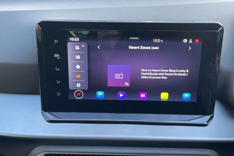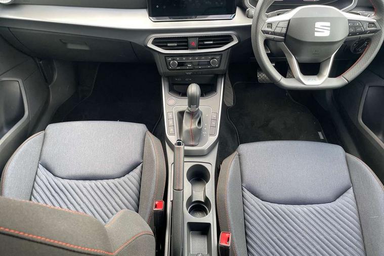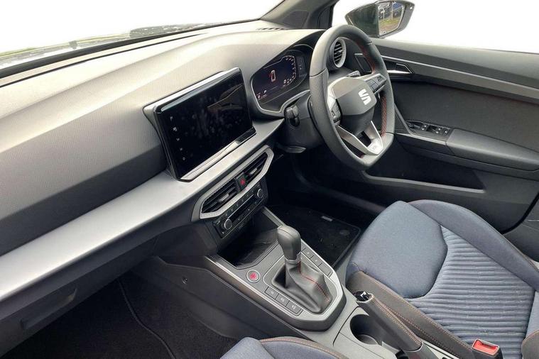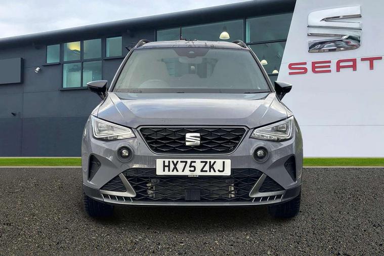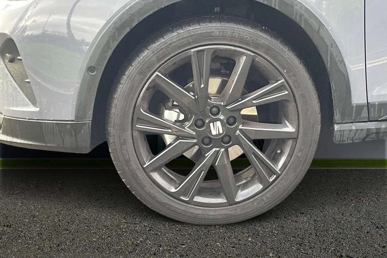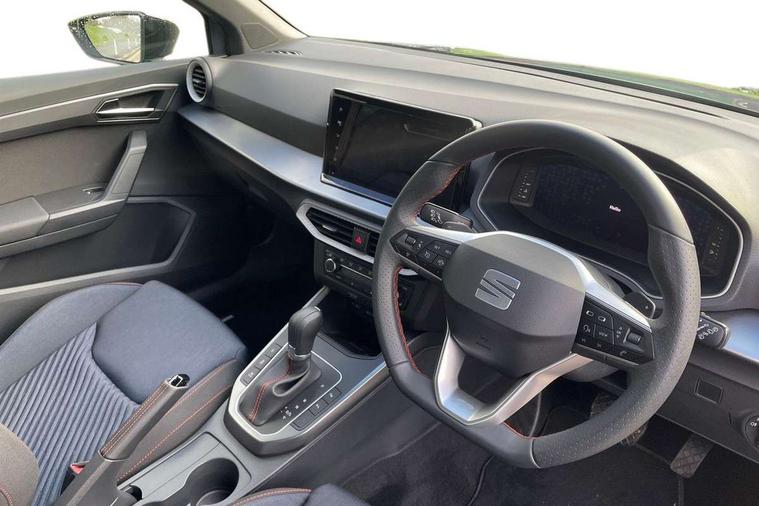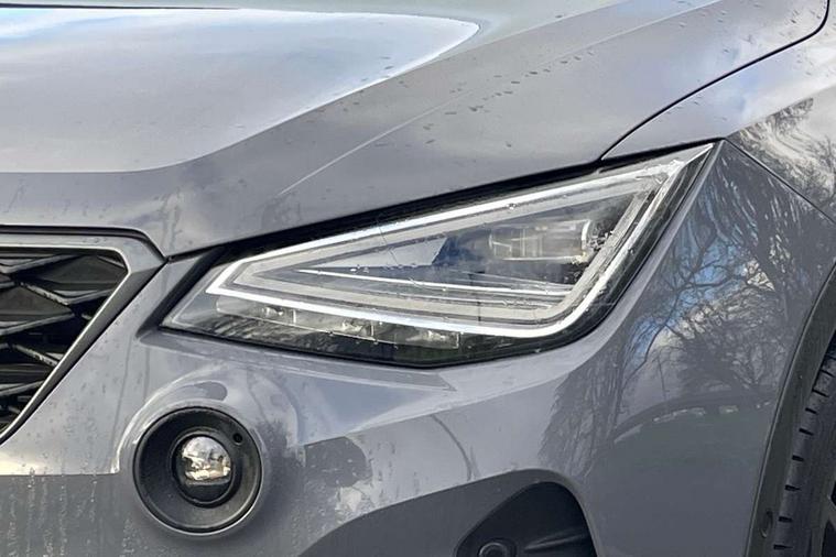 'Lights On' Reminder warning buzzer, 10" Digital cockpit, Digital clock, E-call, Electric speed sensitive power steering, Full link smartphone integration with mirror link, wireless apple carplay, Google android auto + USB Type C cable for apple and android devices, Lane keeping system, Low fuel warning light, Outside temperature display, Park assist system, Rear view camera, RPM counter, SEAT Drive profile - Four different models normal-sport-eco-individual, steering response, throttle response and gear shifts mode, Trip computer, Wireless phone charger, 9.2" colour touchscreen with navigation system, voice control and USB port (type c), Bluetooth interface for hands free and audio streaming, DAB digital radio and AM/FM radio, Steering wheel mounted audio controls, Anti theft roof antenna, Auto dimming interior rear view mirror, Automatic activation of hazard warning lights, Black roof rails and window surrounds, Black side skirts, Body coloured bumpers, Body coloured door handle inserts, Dark tinted rear windows, Electric front/rear windows, Electrically adjustable, heated and folding door mirrors, Front fog lights with cornering function and rear fog light, FULL LED automatic headlights with dynamic headlight range control, coming and leaving home, LED daytime running lights, Lasered lettering on B pillar, LED rear tail lights and licence plate lights, Protective side mouldings, Rain sensing wipers, Rear side wing doors, Rear spoiler, Rear window wash/wipe, Roof colour door mirrors, Third brake light, Twin exhaust pipe styling hidden exhaust pipe, Visible VIN plate, 2 cupholders, 3 seat bench in 2nd row, 60/40 split folding rear seat, Aircare filter, Black interior roof, Double boot floor, Driver sunvisor with covered mirror + card holder, Dual zone climate control, Front courtesy light with front reading lights, Front seat back storage pockets, Gear shift indicator, Grey interior air vents, Heated front seats, Height adjustable front seats, Height/reach adjustable steering column, Illuminated air vent surrounds, Illuminated boot, Instrument lighting with brightness control, Interior ambient lighting, Interior light in footwell, central console and door panel, ISOFIX points in outer rear seats with top tether anchorage points, Microsuede cloth upholstery, Passenger sunvisor with vanity mirror, Perforated flat bottomed leather steering wheel/gear knob/handbrake with red stitching and FR logo, Potentiometer, Single front passenger seat, Sports cloth bucket seats, Steering wheel mounted gearshift paddles, Two front and three rear height adjustable headrests, Interior chrome pack - Arona, Safe and driving pack (S) - Arona, Safety and driving pack (M) - Arona, ABS, Active front headrests, Child locks on rear doors, Driver and front passenger airbags with front passenger airbag de activation, front side and curtain airbags, Emergency Brake Assist (EBA) and front assist, Front and rear seatbelt reminder, Hill hold control, Multi-Collision braking, Tiredness recognition system, Traction control, Tyre pressure monitoring system, Alarm with back up horn with tow away protection, Deadlock, Electronic engine immobiliser, KESSY Keyless entry and go, Locking wheel bolts, Remote central locking, Titan black dashboard, 18" Black alloy wheels,