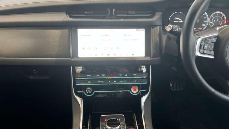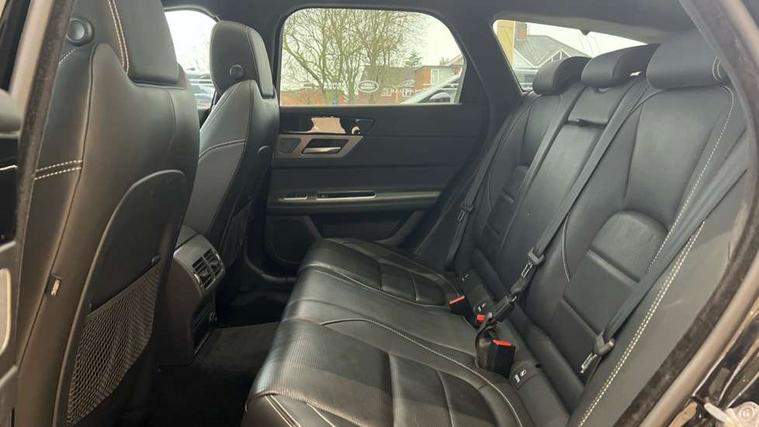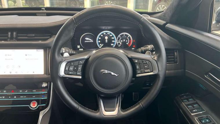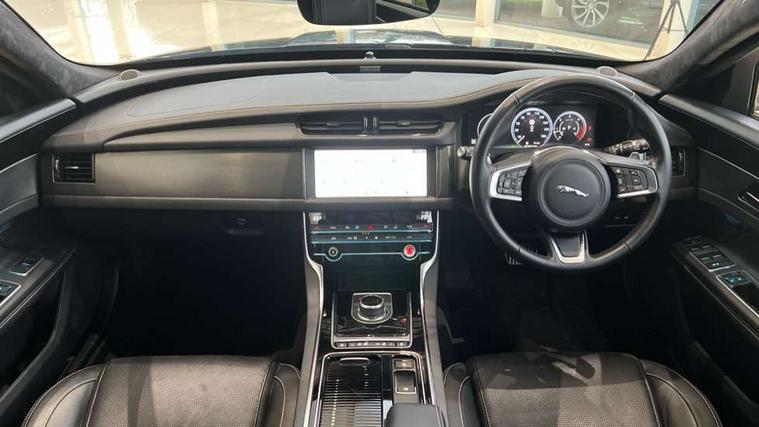 Android Auto, Apple car play, Bluetooth telephone connectivity, Electric power steering, InControl remote premium, InControl touch pro satellite navigation system, Interactive driver display digital instrument panel, Jaguar Voice front, Lane departure warning system, Outside temperature gauge, Pro services and wifi hotspot, Rear parking aid, Service interval indicator, Traffic sign recognition with adaptive speed limiter, Trip computer, 8 speed automatic transmission, Self levelling rear air suspension, Bluetooth audio streaming, DAB Radio (Digital Audio Broadcasting), InControl app, InControl protect, InControl Wi-fi, USB and auxiliary socket, 20d badge, Acoustic windscreen, Auto dimming eletrochromatic rear view mirror, Automatic headlights, Blue tinted glass, Body colour door mirrors, Body coloured extended side sills, Electric front/rear windows with one touch/auto up/down, Frameless auto dimming interior rear view mirror, Gloss black grille with gloss black surround, Gloss black roof rails, Gloss Black side vents with limited edition badge (Chequered Flag badge), Gloss black side window surrounds, Headlight power wash, Heat insulated glass, Heated rear window, LED tail lights, Metal load space scuff plates, Metallic paint, R-sport body kit, Rain sensor windscreen wipers, Rear wash/wipe, Roof spoiler, S front bumper, Tailgate/boot lid spoiler, Trailer stability assist, 12V accessory sockets - front and rear, 2nd row air vents, 3 rear seat head restraints, 40:20:40 split folding rear seats, Auxilliary 12V power socket, Bright metal foot pedals, Chequered flag badge soft grain leather steering wheel, Chrome seat switches, Front armrest, Front centre console storage box, Isofix child seat preparation, Jaguar sense, JaguarDrive selector, Loadspace cover, Loadspace storage rails, Luxtec wrapped instrument panel topper, Multifunction R-sport steering wheel, Overhead console with sunglasses holder, Perforated grained leather upholstery with contrast stitching, Premium carpet mats, Rear armrest with twin cupholders, Rear storage compartment, Satin chrome trunk finish, Sports seats, Sunvisors with illuminated vanity mirrors, Tie down hooks in luggage area, Twin front cupholders, ABS+EBA, Anti-whiplash front headrests, Autonomous emergency braking, Brake pad warning light, Driver/Front Passenger airbags, DSC - Dynamic Stability Control, Electronic parking brake, Emergency brake assist, Front and rear curtain airbags, Front/rear seatbelt pre-tensioners, Hill start assist, Pedestrian contact sensing, Power child locks, Seatbelt warning, Side airbags, Three 3 point rear seatbelts, Torque vectoring brake, Traction control, Tyre pressure monitoring system, Deadlocks, Drive away door locking, Immobiliser, Keyless entry system, Keyless Start, Locking wheel nuts, Perimeter alarm, Remote central locking, Dark hex aluminium instrument panel finisher, Gloss black tailgate/boot lid finisher,