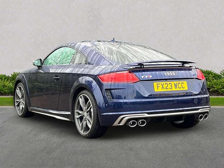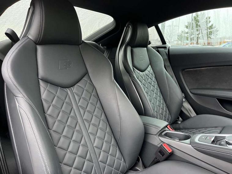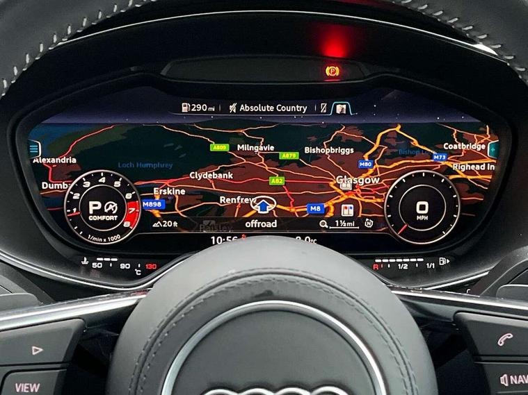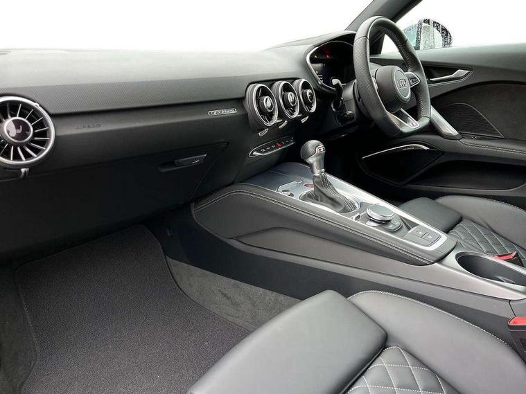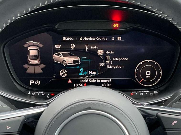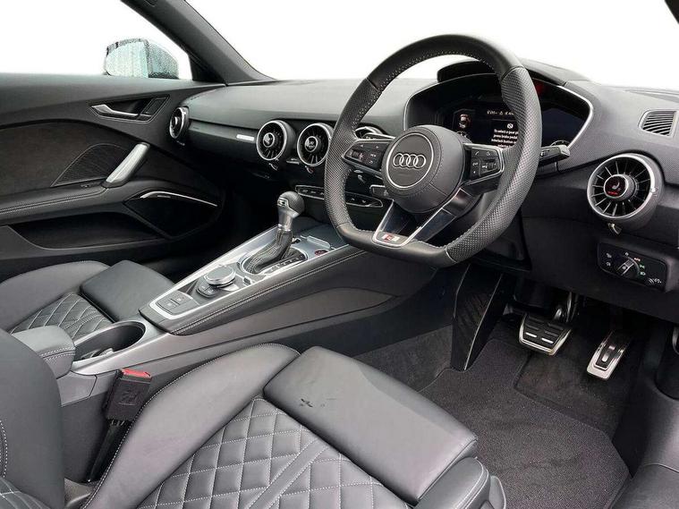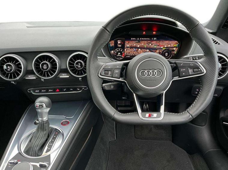 Audi drive select with 4 Pre configured modes, Audi Phone Box with wireless charging - Qi enabled compatible phone and additional bluetooth interface, Audi smartphone interface, Audi Virtual Cockpit with sport gauge, Cruise control + speed limiter, Emergency call service, Mobile phone preparation with bluetooth interface, Progressive power assisted steering, Service interval indicator, Start/Stop system with energy recuperation, TP memo, Audi magnetic ride, TTS suspension, AM/FM radio, Audi Sound System with 9 speakers, Bluetooth audio streaming, DAB Digital radio, MMI Radio with CD player and SD/XC card slot, Aluminium door mirror housings, Audi Beam uses LEDs to project the Audi Sport logo, Auto dimming rear view mirror, Auto headlight range control, Body colour bumpers, Dark privacy glass from B-pillar backwards, Electric folding door mirrors, Electric front windows, Electrically adjustable and heated door mirrors with integrated LED side indicators, Green tinted heat insulating glass, LED 3rd brake light, LED daytime running lights, LED headlights with LED rear lights + dynamic rear indicators, Light and rain sensors, Rear boot, Sunband for windscreen, 12V socket, 2 rear seats, 3 spoke flat bottomed contour leather multi-function TTS sport steering wheel and TTS badging, 4 way electric lumbar support for driver and front passenger, Black headlining, Deluxe auto air conditioning with integrated digital display, Door sill trims with aluminium inlay and TTS logo, Front centre armrest, Front passenger seat, Front super sports seats, Heated front seats, Height/reach adjust steering wheel, Integrated head restraints, ISOFIX child seat mounting for front passenger seat with airbag deactivation, Manual adjustment of seat height, fore/aft position, seat angle, seat depth and backrest angle, Rear head restraints, Rear top tether child seat ISOFIX attachment, Split folding rear seat, Stainless steel pedals, Leather pack - TTS, LED interior light pack - TTS, Non smoking pack - TT/TT RS, S design body styling pack - TTS, Technology pack without Audi phone box - TT, 3 point front seat belts, ABS, ASR traction control, Curtain airbags, Driver and front passenger airbag with front passenger airbag deactivation, EDL traction control, Electromechanical parking brake, ESP, First aid kit, Front side airbags, Head airbags, Hill hold assist, Seatbelt warning, Tyre pressure loss indicator, Warning triangle, Anti theft alarm, Anti theft wheel bolts, Immobiliser, Keyless Go, Remote central locking, Matt brushed aluminium inlays, Tool kit, Tyre repair kit,
