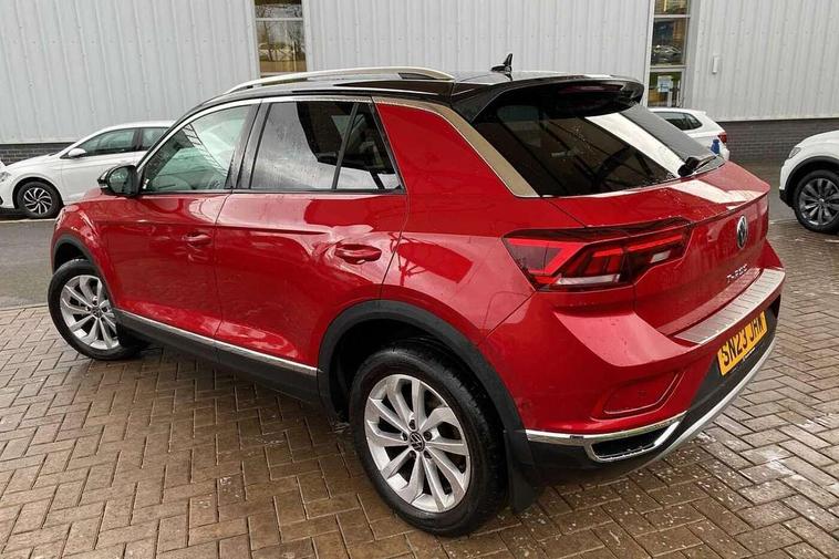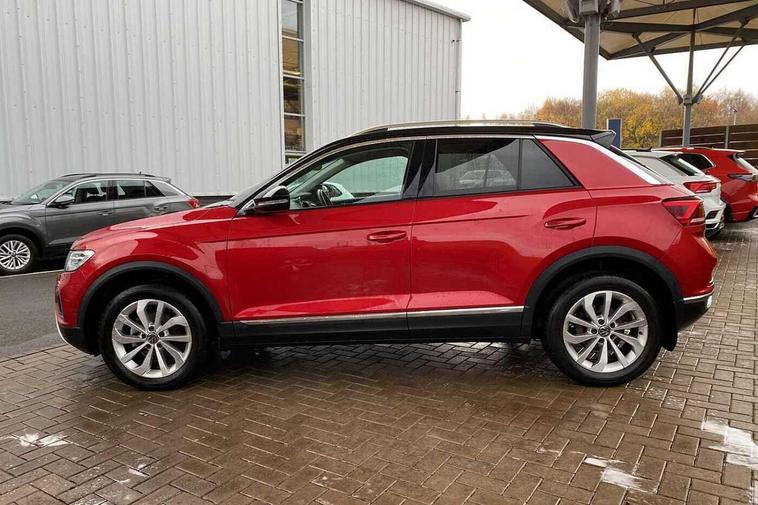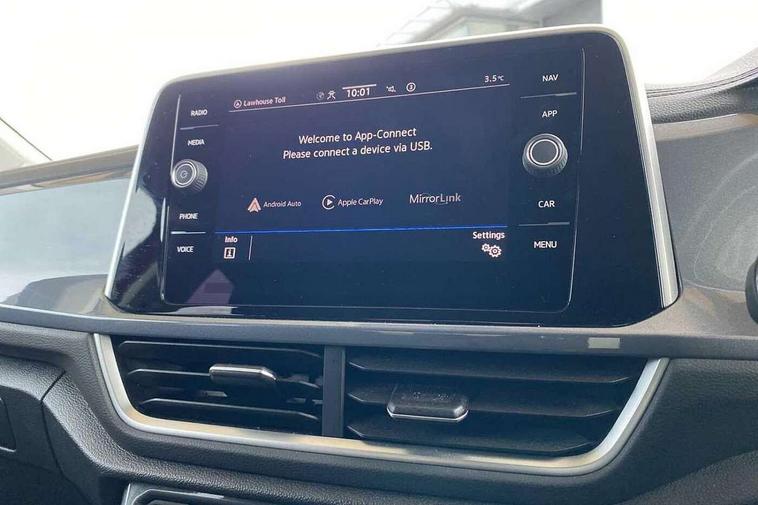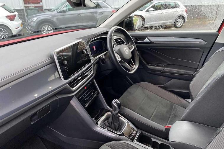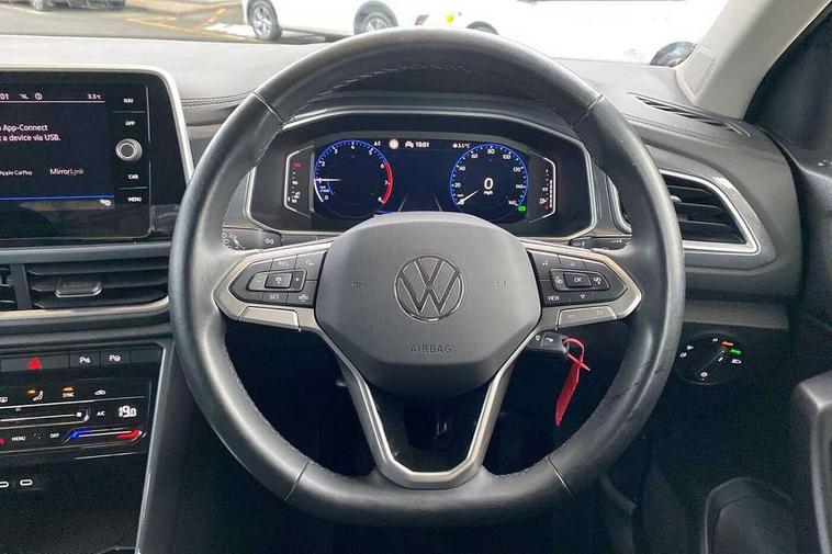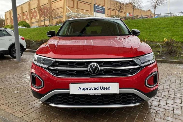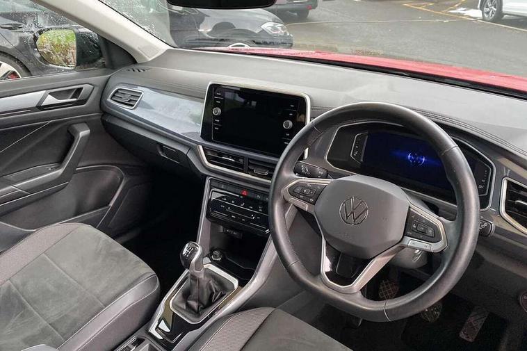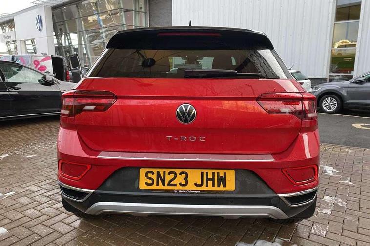 10.25" Digital cockpit pro, Bluetooth mobile phone interface, Driver alert system with fatigue detection, Driver tips and journey analysis, Dynamic road sign display, Emergency call service, Lane keeping system Lane Assist, Modified key software - reduce switch off time for key status change to Long no motion, Online services, Park assist including front and rear parking sensors, Power assisted speed sensitive steering, Service interval indicator, Tailgate/trunk lid release from outside, Think blue trainer driver tips and journey analysis, Warning sound and light for front seatbelts unfastened, Wireless app connect, Battery regeneration during braking, Front shock absorption, Rear shock absorption chassis with increased ride height, Start/stop function with battery regeneration, Diversity antenna for FM reception, Music playback - MP3, WMA and AAC files, Premium USB cable in choice of either Apple or Android smartphone compatibility, SD card slot, Simultaneous pairing of 2 compatible mobile devices, Title and cover art display, We Connect and We Connect Plus functionality, 3rd brake light, Auto dimming interior rear view mirror, Automatic hazard lights activation under emergency braking, Automatic headlight control with LED separate daytime running lights with coming/leaving home function, Body colour sports bumpers with silver metallic underbody fascia, Dynamic headlight range control with self adjusting whilst driving, Extended roof spoiler, Exterior mirrors aspherical on driver side, convex on front passenger side, External USB type C socket and charging sockets, Front windscreen wiper with intermittent wipe and 4 position delay, Heated rear window, LED rear combination lamps, LED rear number plate lights, LED tail lamp rear comination lamps, Light mode for poor weather, rain, fog or snow, Power windows with comfort operation and circuit breaker, Rain sensor, Rear exhaust tailpipe, Rear fog light on one side and reversing lights on both sides, Rear side wing doors, Rear wash/wipe with intermittent wipe setting, Remote electrically foldable door mirrors, puddle lights and reverse activated passenger's door mirror, 12V power socket in centre console, 3 rear head restraints, 3 seat bench in 2nd row, 4 load lashing points in luggage compartment, Air care climatronic air conditoning system with active combination filter and 2-zone temperature control, Chrome plated radiator grille inserts, air vent surrounds and light switch surrounds, Door and side trim panel with leatherette insert, Drawer under drivers seat, Front + rear carpet mats, Front centre armrest, Front comfort sports seats, Front cupholders x 2, Front footwell illumination, Instrument lighting, white adjustable panel illumination, Interior ambient lighting and surround lighting, Interior light delay, Isofix child seat preparation, Leather gearshift handle, LED interior light with switch off delay/dimmer and 2 front/rear LED reading lights, Load-through provision with cup holder when folded down ('Unsplit rear seat bench, split folding backrest, with centre armrest), Luggage compartment lighting, Non-folding front passenger seat backrest, Single front passenger seat, Storage compartment in left and right luggage area, Storage compartment in rear doors, Storage compartments in driver and front passenger doors, Sunvisors with illuminated vanity mirrors, Variable boot floor, height adjustable and removable, Driver assistance pack without proactive passenger protection - T-Roc, 3 point height adj front seatbelts + pretensioners, 3 point seatbelts in outer rear with ECE label, ABS, Child locks on rear doors, Driver and front passenger airbag with front passenger airbag deactivation, Driver and front passenger safety-optimised head restraints, Drivers seatbelt reminder, Electronic parking brake, Electronic Stability Control (ESC) inc EDL (Electronic Differential Lock) and ASR (Traction Control), Front and rear passengers curtain airbag system including front side airbags, Front assist with city emergency braking and pedestrian monitoring, Front disc brakes, Front seat side impact airbags, Predictive pedestrian protection, Rear disc brakes, Single tone horn, Tyre pressure loss indicator, Volkswagen roadside assistance, Anti-theft alarm system with interior monitoring, backup horn, and towing protection, Remote central locking with SAFELOCK, radio remote control with 2 remote control folding keys, Trims for alloy wheels,