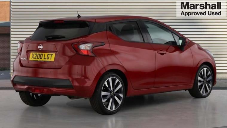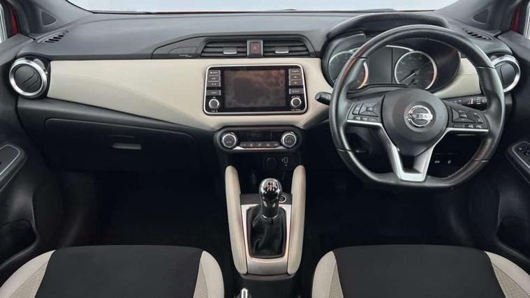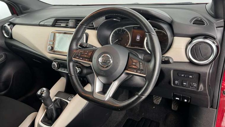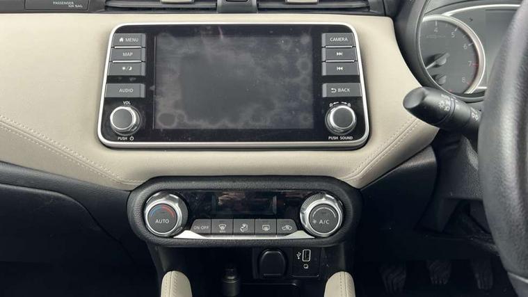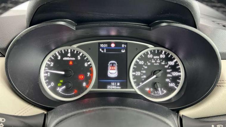 360 degree around view monitor, Adjustable speed limiter, Bluetooth system, Cruise control, Lane departure prevention, Lane departure warning system, Nissan Connect touchscreen navigation and Entertainment system, Outside temperature gauge, Power assist steering, Rear parking sensors, Rear view camera, Smartphone integration with Apple CarPlay and Android auto, Stop/start system, Traffic sign recognition, Trip computer, Audio system with MP3, BOSE sound system with 6 speakers, DAB Digital radio, USB/iPod connection, 4 pocket halogen headlights with signature finisher, Antenna, Auto dimming rear view mirror, Automatic activation of hazard warning lights, Automatic headlights, Body colour front door handles, Body coloured bumpers, Body coloured door mirrors, Concealed rear door handles, Electric folding door mirrors, Front and rear electric windows, Front fog lights, Heated door mirrors, High beam assist, High mounted stop lamp, Jacknife key type x1, LED daytime running lights, LED Headlights, Rain sensor windscreen wipers, Rear privacy glass, Rear roof spoiler, Rear wiper with reverse link, 12V power point front, 2 height adjustable rear headrests, 3 cupholders, 60/40 split folding rear seat, Automatic air conditioning, Boot compartment cover, Boot light, Chrome interior door handles, Driver's seat manual height adjust, Driver/passenger sunvisors and vanity mirrors, Front and rear door pockets with bottle holders, Front console storage box, Gear shift indicator, Height adjustable front headrests with satin sliver decoration, Illuminated electric window switch, Isofix front passenger and rear seat preparation, Leather wrapped gear shift knob, Leather wrapped parking break, Leather wrapped steering wheel, LED ambient lighting, Map reading lamp, Parcel shelf, Passenger seat back pocket, Reclining front seats, Synthetic leather front door pads, Synthetic leather instrumental panel inserts, ABS+EBD+Brake assist, Crash sensor, Driver/Front Passenger airbags, Front and rear curtain airbags, Front side airbags, Height adjustable front seatbelts with pre-tensioners and load limiters, Hill start assist, Intelligent emergency braking with pedestrian recognition, Manual passenger airbag deactivation function, Rear seatbelts with pre-tensioners and load limiters, Seatbelt warning, Three 3 point rear seatbelts, Tyre pressure monitoring system, Warning triangle and first aid kit, Anti-theft immobiliser, Intelligent key with push button ignition, Remote central locking, 17" Diamond cut alloy wheels, Tyre repair kit,