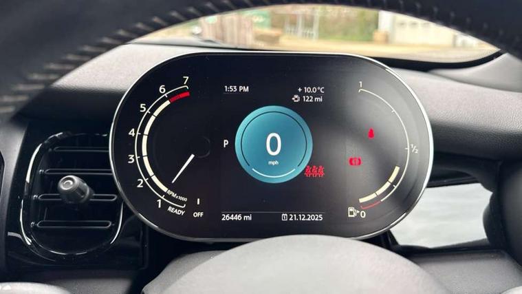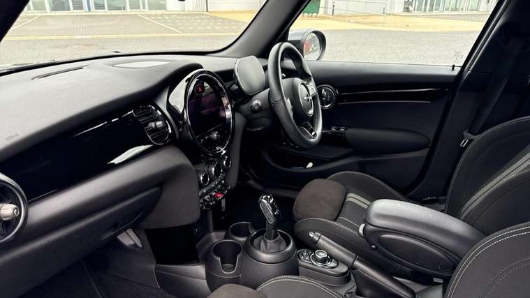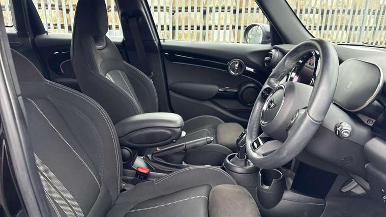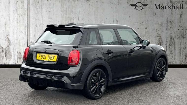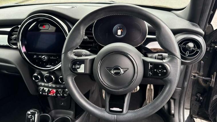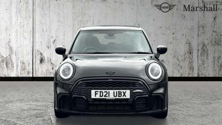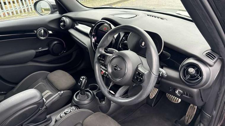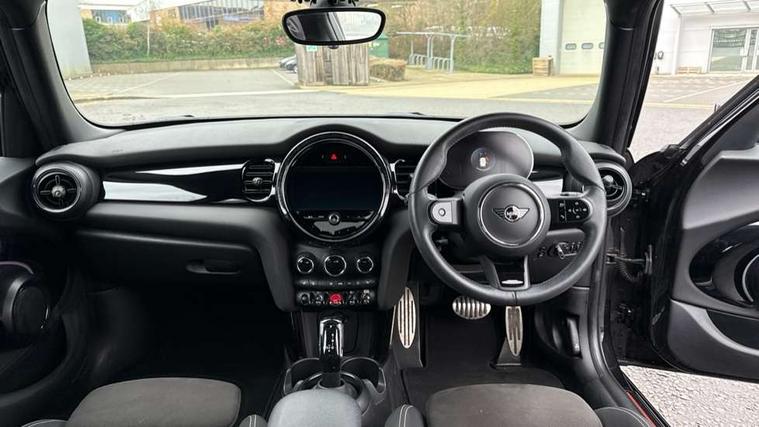 Automatic start/stop function with brake energy recuperation, Compatible mobile phone bluetooth with audio streaming, Cruise control with brake assist, Electro-mechanical speed dependant steering assistance, Flexible car sharing preparation, Instrument cluster, MINI Driving Modes - centre toggle switch to control driving setting (sport, mid and green), Mini E-call, MINI TeleServices, On board computer, Rear park distance control, Service interval indicator, Adaptive suspension, Double Vanos system, Fully variable valve control, Gear change indicator display, High precision injection, Performance Control, Steptronic transmission with double clutch, 6 speakers in front door trims and underneath front seats, 8.8" touchscreen with LED ring, FM tuner and DAB digital radio, Automatic headlight activation switch, Body colour fuel filler cap, Chrome border high gloss black slats radiator grille, Dynamic brake lights, Electric front+rear windows, Exhaust tailpipe on left with chrome finisher, Heated rear window, Heated windscreen washer jets, JCW Aerodynamic kit - Front and rear bumpers with sporty JCW styling and part-painted side sills with MINI John Cooper Works door sill finishers, John Cooper Works rear spoiler, LED headlight with closed ring and daytime driving lights, Metal door sill strips with MINI imprint, Model logo Cooper on right of tailgate, Rain sensor window wipers, Rear fog lights, Rear LED lights with union jack design, Rear window wiper, Side scuttle panel with integrated indicator, Sun/heat protection glass, White indicator lenses, 12V Accessory socket in centre console, 4 lashing eyes in luggage compartment, 60/40 split folding rear seat, Anthracite headliner including grab handles and clothes hooks, Carbon black colour line - Knee roll and door armrest, Chrome interior highlights, Cupholders, Front and rear isofix with front passenger airbag deactivation, Glove compartment, Height and length steering column adjustment, Interior lighting with 12 different colours across the dashboard, underneath door bezel with illuminated laser-engraved design on central display, JCW Sport seats with integrated headrests, adjustable thigh support and John Cooper Works logo, Leatherette gearshift lever and handbrake gaiters, LED reading lights, vanity mirror lights, front foot well light and spotlight on front seats, Manual air conditioning, Mechanical seat adjustment - forward/back & backrest for front seats and driver seat height adjust, Multifunction steering wheel, Storage compartments in doors, Sunvisors with vanity mirrors, Velour floor mats, Walknappa leather steering wheel with grey seam and John Cooper Works badge on Piano Black lower steering wheel spoke, Piano black exterior pack - Mini Hatchback Cooper, 3 point seatbelts on all five seats, 6 Airbags - front, side, head and seat belt tensioners, Anti-lock braking system (ABS), DSC - Dynamic Stability Control, Front and rear disc brakes, Hill start assist, Single tone fanfare horn, Tyre pressure monitoring system, Alarm system with tilt sensor, monitoring doors, bonnet interior and tailgate, Electronic vehicle immobiliser, Start/stop toggle with keyless go, Piano black interior trim, Tool kit,