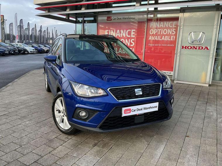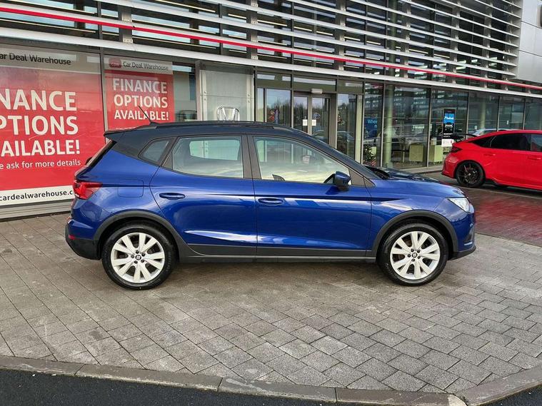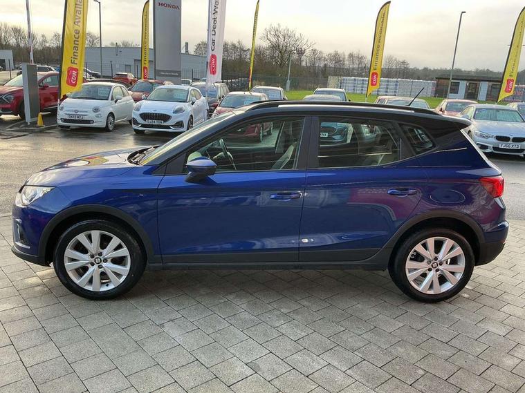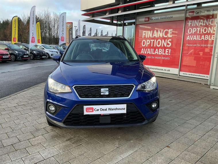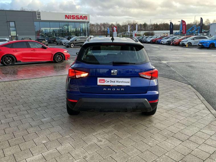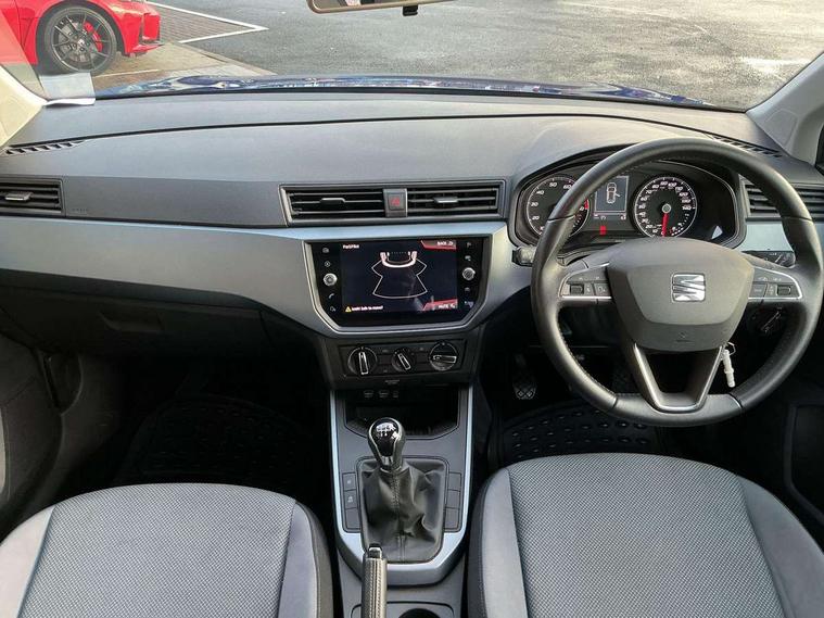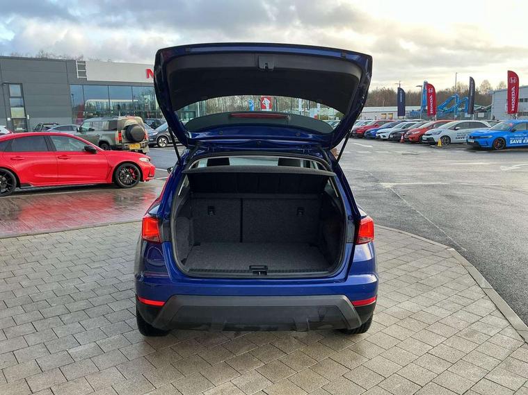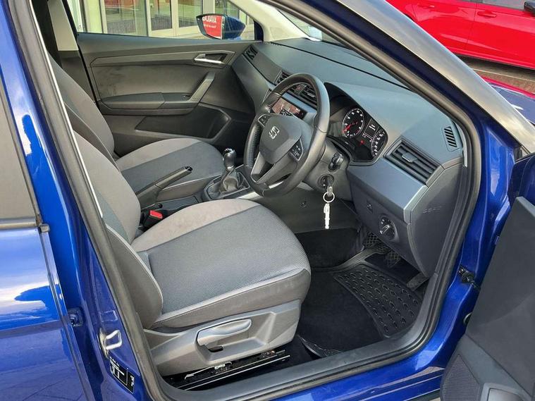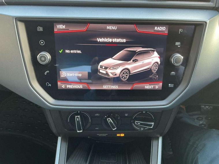 'Lights On' Reminder warning buzzer, Cruise control, Digital clock, Electric speed sensitive power steering, Full Link Smartphone Integration with Mirror Link, Apple Car Play, Google Android Auto with USB Type C cable for Apple and Android compatibility, Low fuel warning light, Outside temperature display, Rear parking sensor, RPM counter, Trip computer, Comfort suspension, 6 speakers, Bluetooth interface for hands free and audio streaming, DAB digital radio and AM/FM radio, Steering wheel mounted audio controls, Anti theft roof antenna, Automatic activation of hazard warning lights, Automatic headlights, Black roof rails, Black window trims, Body coloured bumpers, Body coloured door handle inserts, Body coloured door mirrors, Chrome front grille frame, Dimming rear view mirror, Electric adjustable door mirrors, Electric front/rear windows with one touch/auto up/down, Electric headlight adjustment, Front fog lights with cornering function and rear fog light, Hidden exhaust pipe, LED daytime running lights, LED rear tail lights and licence plate lights, Rear window wash/wipe, Visible VIN plate, Windshield wiper with intermittent control and potentiometer, 2 cupholders, 60/40 split folding rear seat, Air conditioning, Cloth upholstery, Double boot floor, Driver sunvisor with covered mirror + card holder, Dust/pollen filter, Front courtesy light with front reading lights, Gear shift indicator, Grey interior roof, Height adjustable front seats, Height/reach adjustable steering column, Illuminated boot, Instrument lighting with brightness control, Interior footwell lighting, ISOFIX points in outer rear seats with top tether anchorage points, Leather steering wheel/gear knob/handbrake, Multi-colour ambient interior lighting, Passenger sunvisor with vanity mirror, Two front and three rear height adjustable headrests, Connectivity pack plus - Arona, Interior chrome pack - Arona, 3 point seatbelts on all rear seats, ABS, Active front headrests, Child locks on rear doors, Driver and front passenger airbags with front passenger airbag de activation, front side and curtain airbags, Electronic stability control, Emergency Brake Assist (EBA) and front assist, Front and rear seatbelt reminder, Hill hold control, Multi-Collision braking, Tiredness recognition system, Traction control, Tyre pressure monitoring system, 2 folding remote keys with window open/close function, Electronic engine immobiliser, Locking wheel bolts, Remote central locking + deadlocks, Interior chrome line trim, Plastic grey dashboard, 17" Dynamic alloy wheels,