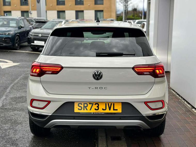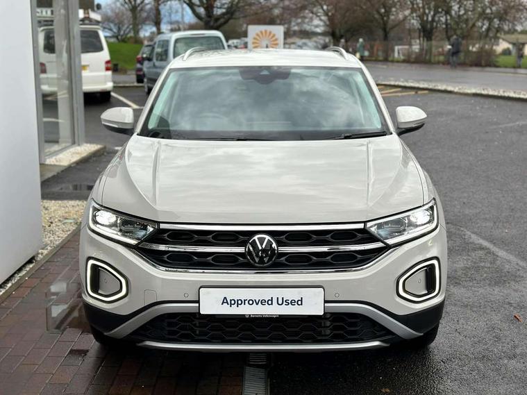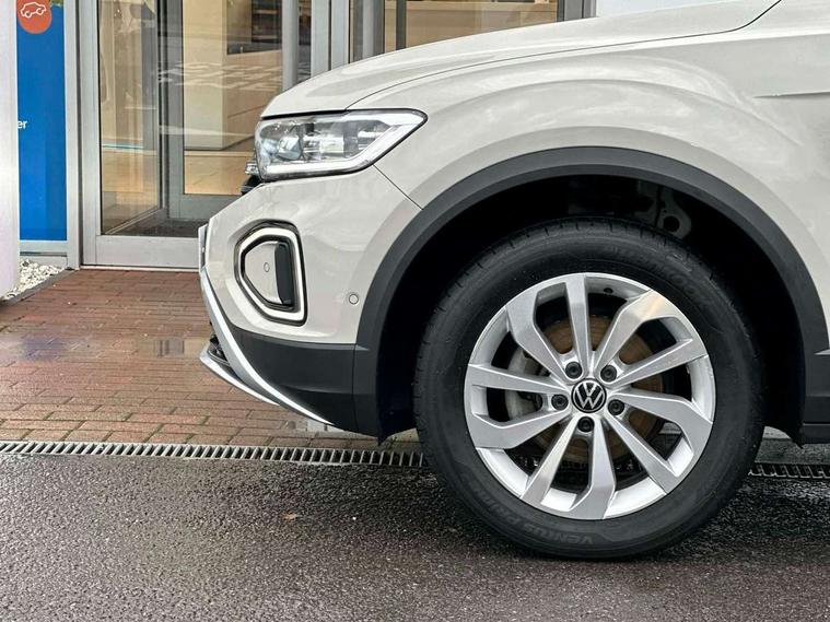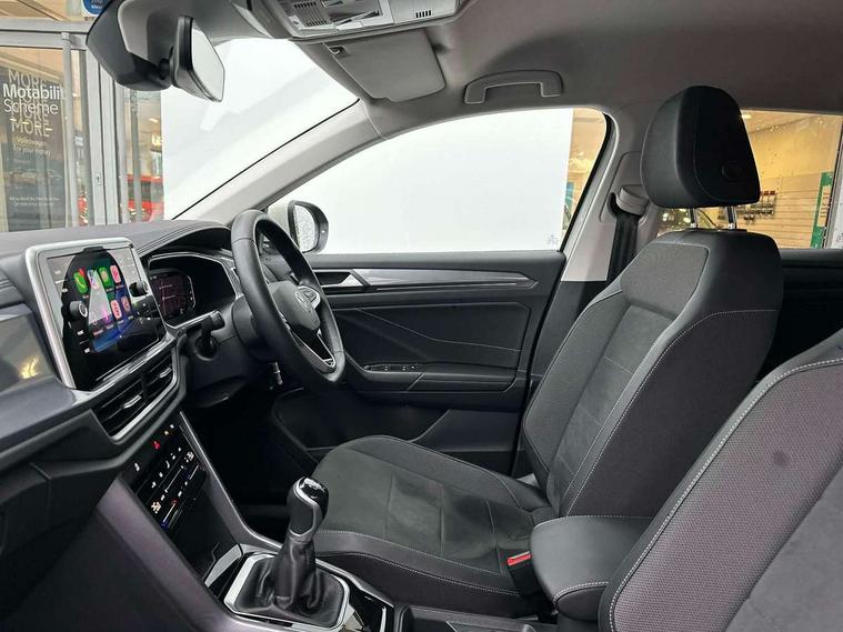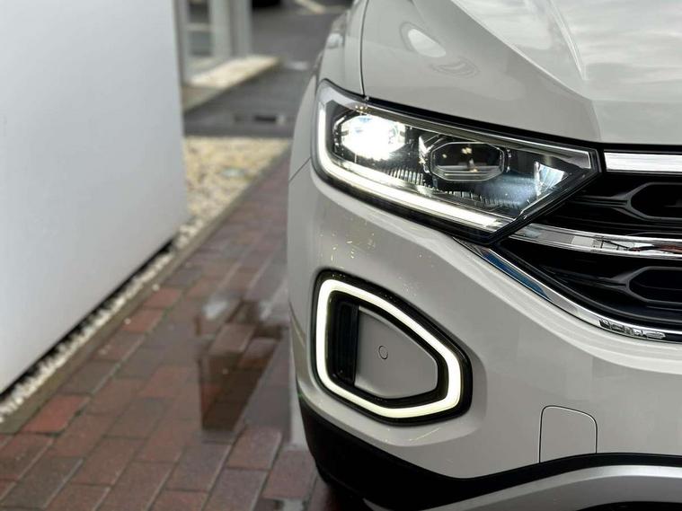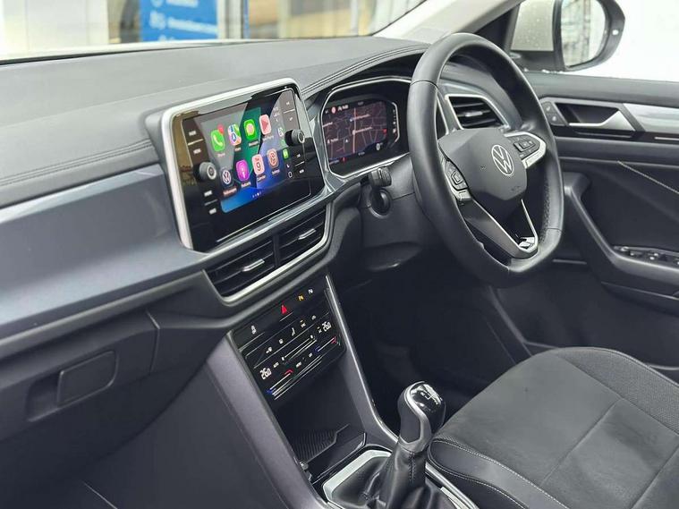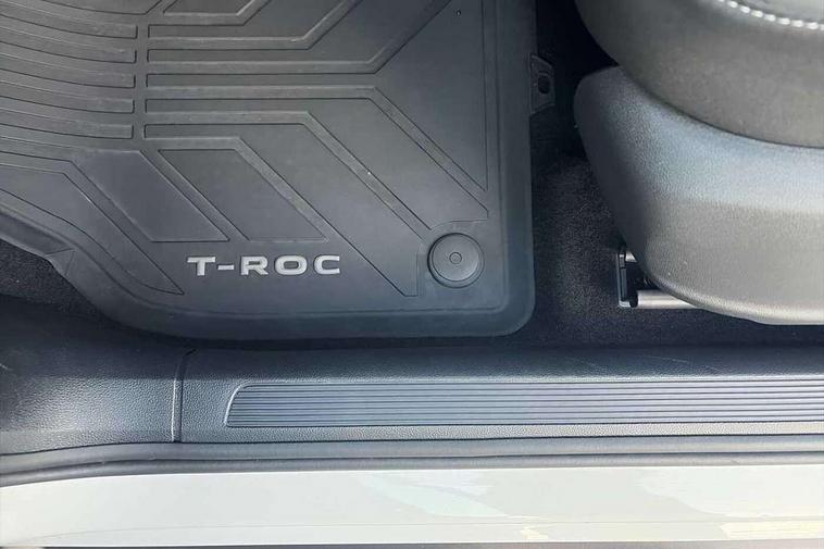 10.25" Digital cockpit pro, Bluetooth mobile phone interface, Driver alert system with fatigue detection, Driver tips and journey analysis, Emergency call service, Lane keeping system Lane Assist, Modified key software - reduce switch off time for key status change to Long no motion, Online services, Park assist including front and rear parking sensors, Service interval indicator, Tailgate/trunk lid release from outside, Think blue trainer driver tips and journey analysis, Warning sound and light for front seatbelts unfastened, Wireless app connect, Battery regeneration during braking, Start/stop function with battery regeneration, Diversity antenna for FM reception, Music playback - MP3, WMA and AAC files, Premium USB cable in choice of either Apple or Android smartphone compatibility, SD card slot, Simultaneous pairing of 2 compatible mobile devices, Title and cover art display, We Connect and We Connect Plus functionality, 3rd brake light, Auto dimming interior rear view mirror, Automatic hazard lights activation under emergency braking, Automatic headlight control with LED separate daytime running lights with coming/leaving home function, Body colour sports bumpers with silver metallic underbody fascia, Dynamic headlight range control with self adjusting whilst driving, Extended roof spoiler, Exterior mirrors aspherical on driver side, convex on front passenger side, External USB type C socket and charging sockets, Front windscreen wiper with intermittent wipe and 4 position delay, Heated rear window, LED rear combination lamps, LED rear number plate lights, LED tail lamp rear comination lamps, Light mode for poor weather, rain, fog or snow, Power windows with comfort operation and circuit breaker, Rain sensor, Rear exhaust tailpipe, Rear fog light on one side and reversing lights on both sides, Rear side wing doors, Rear wash/wipe with intermittent wipe setting, Remote electrically foldable door mirrors, puddle lights and reverse activated passenger's door mirror, 12V power socket in centre console, 3 rear head restraints, 3 seat bench in 2nd row, 4 load lashing points in luggage compartment, Air care climatronic air conditoning system with active combination filter and 2-zone temperature control, Chrome plated radiator grille inserts, air vent surrounds and light switch surrounds, Door and side trim panel with leatherette insert, Drawer under drivers seat, Front + rear carpet mats, Front centre armrest, Front comfort sports seats, Front cupholders x 2, Front footwell illumination, Instrument lighting, white adjustable panel illumination, Interior ambient lighting and surround lighting, Interior light delay, Isofix child seat preparation, Leather gearshift handle, LED interior light with switch off delay/dimmer and 2 front/rear LED reading lights, Load-through provision with cup holder when folded down ('Unsplit rear seat bench, split folding backrest, with centre armrest), Luggage compartment lighting, Non-folding front passenger seat backrest, Single front passenger seat, Storage compartment in left and right luggage area, Storage compartment in rear doors, Storage compartments in driver and front passenger doors, Sunvisors with illuminated vanity mirrors, Variable boot floor, height adjustable and removable, Driver assistance pack without proactive passenger protection - T-Roc, 3 point height adj front seatbelts + pretensioners, 3 point seatbelts in outer rear with ECE label, ABS, Child locks on rear doors, Driver and front passenger airbag with front passenger airbag deactivation, Driver and front passenger safety-optimised head restraints, Drivers seatbelt reminder, Electronic parking brake, Electronic Stability Control (ESC) inc EDL (Electronic Differential Lock) and ASR (Traction Control), Front and rear passengers curtain airbag system including front side airbags, Front assist with city emergency braking and pedestrian monitoring, Front seat side impact airbags, Predictive pedestrian protection, Rear disc brakes, Single tone horn, Tyre pressure loss indicator, Volkswagen roadside assistance, Anti-theft alarm system with interior monitoring, backup horn, and towing protection, Remote central locking with SAFELOCK, radio remote control with 2 remote control folding keys, Trims for alloy wheels,