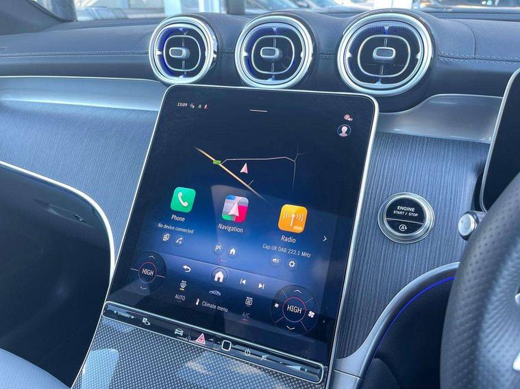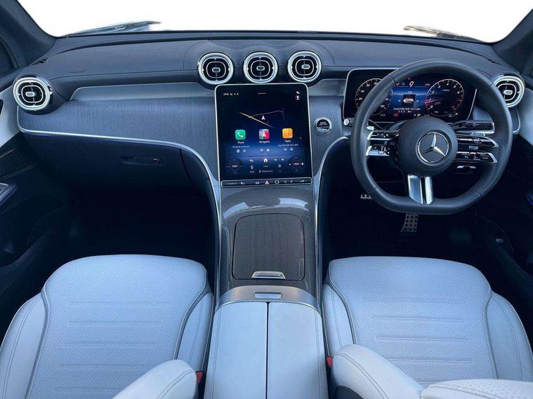 11.9" high resolution multimedia colour display, 12.3" Digital individually configurable instrument display, Acoustic presence indicator, Active lane keeping assist, Attention assist, Blind spot assist, Bluetooth interface for hands free telephone, Collision prevention assist plus, Cruise control with speedtronic variable speed limiter, Dashcam - front camera for video recording, Direct steer speed sensitive steering, DYNAMIC SELECT with a choice of driving modes (ECO, Comfort, Sport, Sport+ and Individual), eCall emergency call system, ECO start/stop function, Fingerprint scanner, Fluorescent jacket for driver, Hard disc navigation, Instrument display in miles with English lettering, MBUX augmented reality for navigation, MBUX navigation premium, MBUX voice control activated by keywords "Hey Mercedes", Mercedes me connect, Outside temperature display, Remote boot release, Remote services, Road sign recognition system, Service indicator (ASSYST), Smartphone integration, Status display for rear seat belts in instrument cluster, Traffic sign assist, Trip computer, Wireless charging, 48V Mild hybrid technology, 4MATIC permanent four wheel drive, 62 litre fuel tank, 9G TRONIC plus automatic transmission, Petrol Particulate Filter (PPF), Sport suspension, DAB digital radio tuner, MBUX extended functions, Mercedes benz sound system, Pre installation for Mercedes Benz Link, Adaptive brake lights, Adaptive high beam assist plus, Aluminium look running boards with rubber studs, Aluminium roof rails, AMG bodystyling front apron, rear apron and side skirts, AMG Line exterior, Auto headlights, Body colour bumpers, Body colour door mirrors, Digital light LED headlights, Electrically adjustable door mirrors, Front and rear electric windows, Headlight washers, Heat insulating dark tinted glass, Heated rear window, High level LED brake light, Integrated LED daytime running lights, LED indicator lights, LED rear fog lights, LED tail lamp, Motor way mode function and locator lighting, Noise acoustic glass, Radiator grille with Mercedes Benz pattern and integreated Mercedes star and louvre in dark grey matt with chrome inlay and black frame, Rain sensor windscreen wipers, Range adjustable headlights, Rear side wing doors, Rear wiper, Transparent Bonnet, Two chrome plated tailpipe trim elements, Variable front intermittent wipers, Welcome and follow-me home light functionality, Wider wheel arch for AMG wheels, 3 seat bench in 2nd row, 40:20:40 split folding rear seats, Ambient lighting premium, AMG line interior, Artico man-made leather upholstery, Audio and onboard settings control on multifunction steering wheel, Automatic child seat recognition sensor, Black fabric roof lining, Black floor mats with AMG lettering, Double cup holder in centre console, Easy-pack removable load compartment cover, Electrically height/reach adjustable steering column, Front centre armrest with stowage compartment, Front head restraints, Galvanised steering wheel gearshift paddles, Heated front seats, Illuminated door sill panels with Mercedes Benz lettering, Illuminated glove compartment, Instrument panel and beltlines in ARTICO manmade leather in nappa look, Multifunction sports steering wheel in nappa leather, Rear centre headrest, Rear head restraints, Rear top tether child seat ISOFIX attachment, Single front passenger seat, Sports pedals with stainless steel surfaces and rubber studs, Sports seats, Sun visors, THERMATIC 2 zone automatic climate control, Anti theft protection package - GLC, Boot comfort package - GLC, Exterior chrome package - GLC, Interior chrome package - GLC, Interior lighting pack - GLC, Keyless-Go comfort package - GLC, Memory pack - GLC, Mirror pack - GLC, Parking package with 360 degree camera - GLC, Seat comfort package - GLC, Stowage space package - GLC, USB Plus Pack - GLC, 3 rear 3 point seatbelts, Active braking assist, Anti-lock braking system (ABS), ASR traction control, Automatic front passenger airbag deactivation, Black seat belts, Brake calipers with Mercedes-Benz lettering + perforated brake discs, Braking system with larger brake discs on the front axle, Child proof door locks, Dual-stage airbags - driver and front passenger, driver knee bag and window bags for driver, front passenger and rear passengers, Electronic parking brake, Electronic stability programme (ESP) with curve dynamic assist and cross wind assist, Front and rear seatbelt reminder, Front passenger seat occupancy sensor, Front seatbelt pretensioners, Hill start assist, Tyre pressure monitoring system, Warning triangle and first aid kit, Automatic door locking, Guard 360 degree vehicle protection plus, Interior protection/immobiliser, Remote central locking, Centre console in metal structure finish, Metal structure trim, 20" AMG 5 spoke aerodynamically optimised light alloy wheels in painted black with high sheen finish, Summer tyres, TIREFIT with tyre inflation compressor,