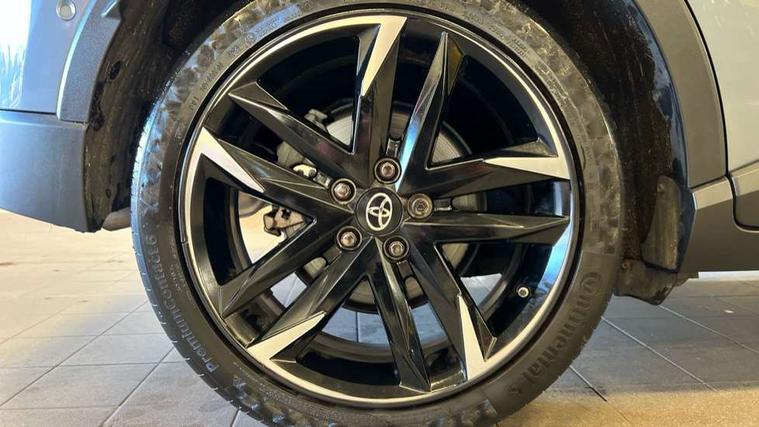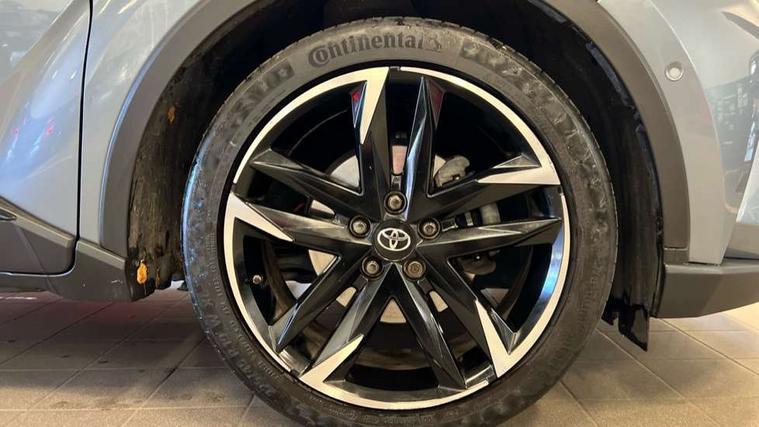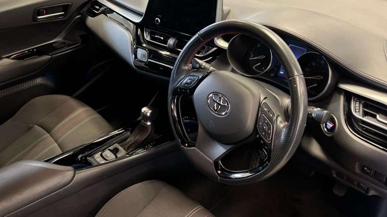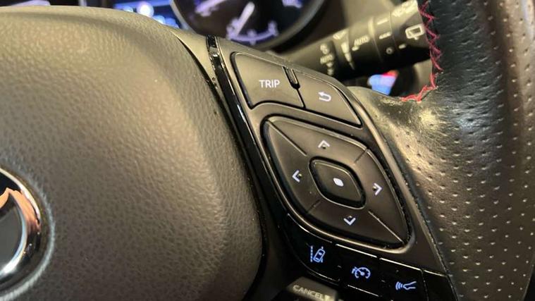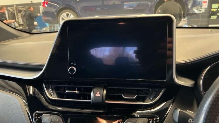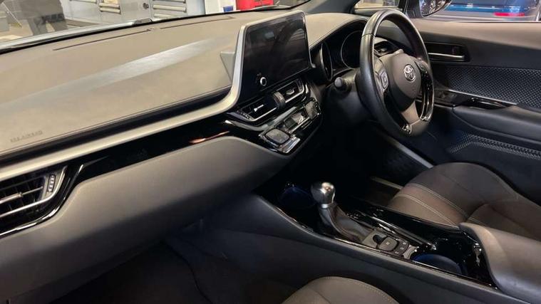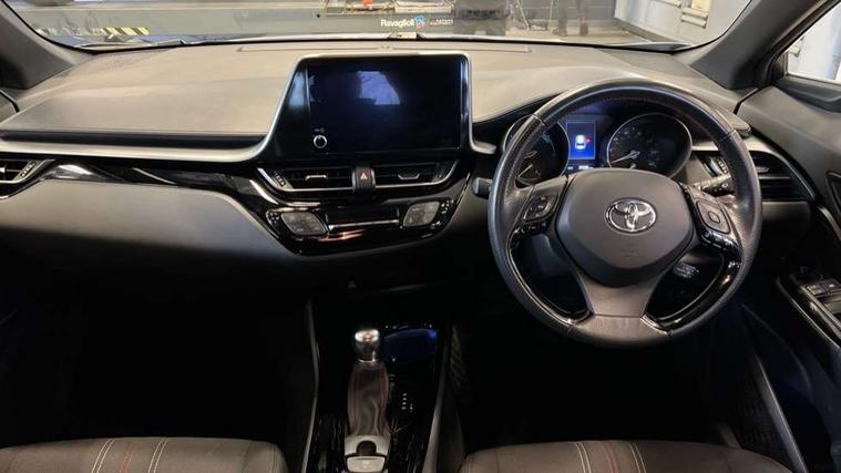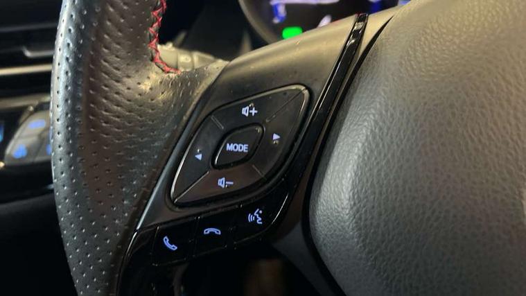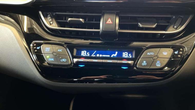 4.2" coloured TFT screen for multi-information display, Adaptive cruise control, Bluetooth connectivity, E-call, Electric power steering, Hybrid system indicator, Lane departure alert with steering control, Remote boot door release in cabin, Remote boot door release in key, Reversing camera, Road sign assist - RSA, Simple Intelligent parking assist, Touch 2 Go navigation system, Trip computer, Voice recognition, Vehicle Stability Control (VSC), 6 speakers, AM/FM radio, DAB Radio (Digital Audio Broadcasting), Toyota touch 2 multimedia system with 8" display, USB connector, Wi-fi connectivity, Adaptive front light system, Adaptive LED Headlights, Anti-jam protection on power windows, Auto high beam, Auto up and down function on all power windows, Automatic headlight levelling, Automatic headlights, Automatic headlights cut-off, Black and body coloured rear bumper, Black upper front grille, Body colour door handles, Body colour door mirrors, Body coloured front bumper, Boot door release with push button, Chrome front lower bumper, Electric heated door mirrors, Follow me home headlights, Front and rear power windows, Front spoiler lip in black, Honeycomb lower front grille, LED daytime running lights, LED fog lights, LED front light guide, LED High mounted stop light, LED rear brake lights, LED rear combination lights, Noise reduction layer on front windows and windscreen, Power adjustable door mirrors, Privacy glass, Rain sensor, Rear sequential indicators, Rear side wing doors, Rear spoiler, Rear tailgate, Rear window defogger, Rear window wiper, Shark fin antenna, UV-filter on driver and passenger windows, UV-filter on rear windows, 12v power outlet - front, 3 rear headrests, 3 seat bench in 2nd row, 3 spoke perforated leather steering wheel, 60/40 split folding rear seat, Adjustable rear headrests, Adjustable speed limiter switch on steering wheel, Assist grips front and centre pillar, Audio and telephone switches on steering wheel, Black front door assist grips, Blue ambient lighting on front cup holders, Blue ambient lighting on front doors, Boot light, Chrome interior door handles, Driver and front passenger personal light, Driver and front passenger Whiplash Injury Lessening seats, Driver and passenger seatback pockets, Dual zone automatic air conditioning, Fabric upholstery, Floor mats, Front cupholders, Front head restraints, Front sports seats, Glovebox with internal light, Hard tonneau cover, Heated driver and front passenger seats, Hooks for luggage holding net, Humidifying Nanoe air purifier, Illuminated entry system, Isofix attachments on outer rear seats, Leather gearshift, Light on driver sun visor, Light on passenger sun visor, Manual telescopic steering wheel, Manual tilt steering wheel, Manually height adjustable driver seat, Manually height adjustable front passenger seat, Manually reclining driver seat, Manually reclining front passenger seat, Manually sliding driver seat, Manually sliding front passenger seat, Microphone on front personal light, Mirror on driver sun visor, Mirror on passenger sun visor, Multimedia switches on steering wheel, Pollen filter, Power adjustable lumbar support on driver seat, Shopping bag hooks, Single front passenger seat, Slow opening on lower glovebox, Voice recognition switch on steering wheel, Tech with parking sensor pack - C-HR, 16 Disk front wheel brake, 3x3 point rear seatbelts, ABS+EBD+Brake assist, Electronic parking brake, Front and rear seatbelt reminder, Front passenger airbag on/off switch, Hill start assist control (HAC), Pre collision system with pedestrian detection, Pre-tensioners and force limiters, Rear door child safety locks, SRS Airbags - Driver + Front passenger, front side, front and rear curtain and driver's knee airbags, Toyota safety sense, Tyre pressure monitoring system, Acoustic vehicle alert system (AVAS), Glass-breaking alarm sensors, Immobiliser, Intrusion alarm, Intrusion sensor, Motion sensor alarm, Power passenger window lock, Remote central locking, Black lower dashboard, Black upper dashboard, Piano black console, Silver deco line on upper dashboard, 19" Black machined alloy wheels, Tyre repair kit,