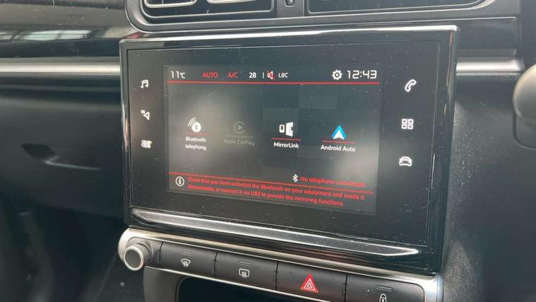 7" touch screen, Bluetooth with USB Box, Citroen connected CAM, Coffee Break Alert, Cruise control + speed limiter, Gear selection indicator, Lane departure warning system, Mirror screen with mirror link and car play, Multi function trip computer, Outside temperature display, Rear parking sensor, Rev counter, Reversing camera, Speed limit recognition, Variable PAS, 6 speakers, Auxiliary input socket, Bluetooth audio streaming, Citroen connected DAB radio, Steering wheel mounted audio controls, Automatic headlights and windscreen wipers, Body colour bumpers, Body colour door handles, Cornering front fog lights, Dark tinted rear windows, Electric adjustable door mirrors, Electric front/rear windows with one touch/auto up/down, Electro-chrome auto-dimming rear view mirror, LED daytime running lights, Rear wiper, Roof colour fog light surround, Wheel arch extensions, Automatic digital air conditioning, Boot light, Driver/pass sunvisor/covered courtesy mirrors, Front courtesy lights, Front cupholders x 2, Front reading light, Height adjustable driver's seat, Height adjustable front headrests, Height/reach adjust steering wheel, Lashing eyelets in boot, Leather gear knob, Rear cupholder, Split folding rear seats, Three height adjustable rear head restraints, Two rear outer seat isofix location points, 3 point inertia reel seatbelts on all 5 seats, ABS + EBD + EBA, Curtain airbags, Driver seatbelt warning indicator, Driver/Front Passenger airbags, Electric child locks, ESP, Front lateral airbags, Front seatbelt pretensioner, Hill start assist, Passenger seatbelt warning indicator, Tyre pressure monitor, Alarm, Immobiliser, Locking wheel nuts, Remote central locking + deadlocks, Space saver spare wheel,