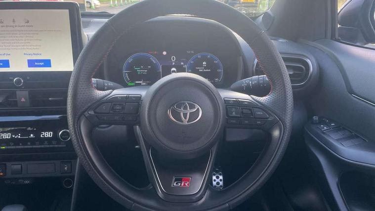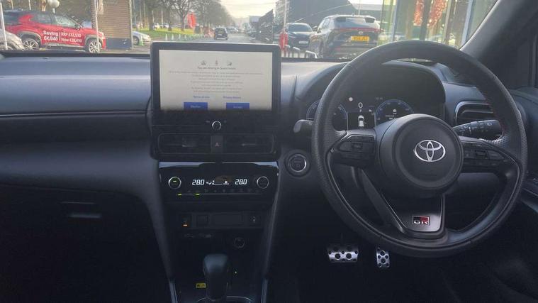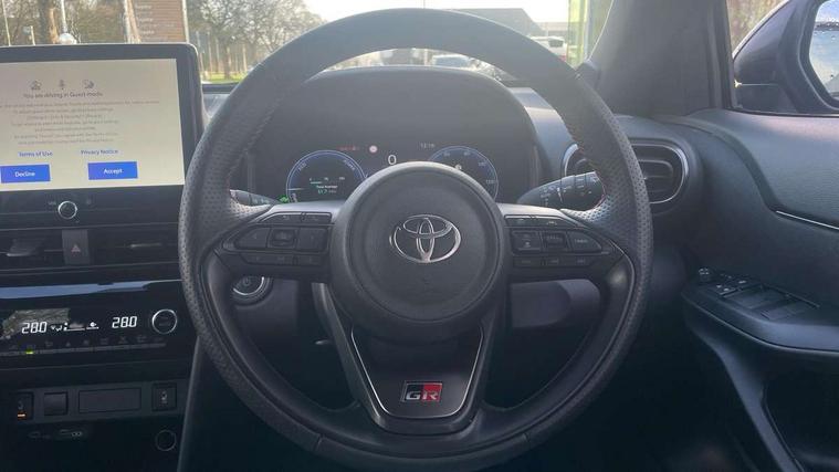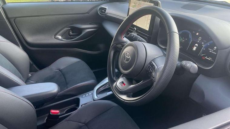 10.5" Multimedia display screen, 10.5" Toyota smart connect+ with navi multimedia system with wireless Smartphone integration incl Apple CarPlay, 12.3" Multi information display screen, Adaptive cruise control, multi info switches on steering wheel, Adjustable speed limiter, Bluetooth connectivity, Color multi-information display, Digital speedometer, Digital tachometer, Drive mode selector, Driver attention alert system, eCall emergency system, Electric power steering, Emergency driving stop system, Full range intelligent adaptive cruise control, Hybrid system indicator, Intersection turn assist, Key reminder warning, Lane trace assist, My T Connected services, Pre-collision system enhanced with emergency steering assist, Reversing camera, Road sign assist - RSA, Static guide lines on reversing camera, Tailgate, Telephone switch on steering wheel, Wireless Mobile Phone Charger, Steering assisted vehicle stability control, 6 speakers, DAB Digital radio, Front USB Type-C connector, Front USB-C device charger, Acoustic windscreen glass, Anti-jam protection on power windows, Auto dimming rear view mirror, Auto high beam [AHB] with on/off switch, Auto intermittent windscreen wipers, Automatic headlights, Automatic headlights cut-off, Automatically retractable door mirrors, Black door moulding, Black lower front grille, Black protection moulding on side doors, Black rear bumper with diffuser, Black rear under run, Black roof rails, Black wheel arch mouldings, Body colour door handles, Body colour front bumper, Electric adjustable heated door mirrors, Follow me home headlights, Front and rear electric windows with auto up/down function, Gloss black upper front grille, GR Sport meshed lower front grille, GR Sport meshed upper front grille, GR sport scuff plates, Headlight cut off reminder, Indicators integrated on door mirrors, Intermittent rear wiper, LED 3rd brake light, LED daytime running lights guide, LED front fog lights, LED front light guide, LED Indicators, LED projector headlights, LED rear lights with sequential indicators, Manual headlight levelling, Noise reduction layer on windscreen, Pre wiring for towing hook, Privacy glass, Rain sensor, Rear roof spoiler, Rear side wing doors, Rear window defogger, Shark fin antenna, 12v power outlet - front, 12V power point in boot, 2x Rear coat hooks, 3 seat bench in 2nd row, 3 Spoke GR Sport leather steering wheel, 40/60 split deckboard, 40:20:40 split folding rear bench seat, Adjustable rear headrests, Adjustable speed limiter switch on steering wheel, Black roof lining, Boot light, Driver and front passenger personal lights, Driver and front passenger Whiplash injury Lesseing seats, Driver and passenger seatback pockets, Dual zone automatic air conditioning, Fabric door trim, Front console box, Front cup holders, Front door pockets, Front head restraints, Front sport seats, Front/rear assist grips, Gear shift indicator, GR sport floor mats, Heated driver and passenger seats, Height adjustable driver's seat, Height adjustable front passenger seat, Hooks for luggage holding belts, ISOFIX child restraint system, Lane departure alert switch on steering control, Leather gearshift, LED centre room light, Light on driver and passenger sun visor, Manual telescopic and tilting steering wheel, Mirror on driver and passenger sun visor, Nanoe-X air purifier, Pollen air filter, Power adjustable lumbar support on driver seat, Rear cup holders, Rear door pockets, Rear head restraints, Remote air-conditioning system, Single compartment glovebox, Single front passenger seat, Soft tonneau cover, Storage box under boot floor, Ultra suede cloth upholstery, Voice recognition switch on steering wheel, White ambient lighting in centre console, White ambient lighting in footwell, White ambient lighting on front doors, 3x3 point rear seat belts, ABS+EBD+Brake assist, Driver and passenger central airbags, Driver and passenger front airbags, Driver and passenger side airbags, Electronic parking brake, Emergency brake light system (EBS), Front seat belt reminder, Hill start assist control (HAC), Passenger airbag on/off switch, Pre-collision system with pedestrian and cyclist detection, Rear door child safety locks, Rear passenger side airbags, Rear seat belt reminder, Traction control, Tyre pressure warning system, Immobiliser, Intrusion alarm, Keyless smart entry with push button start, Power door locks, Power passenger window lock, Remote door lock, Tyre repair kit,