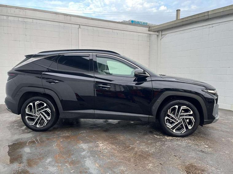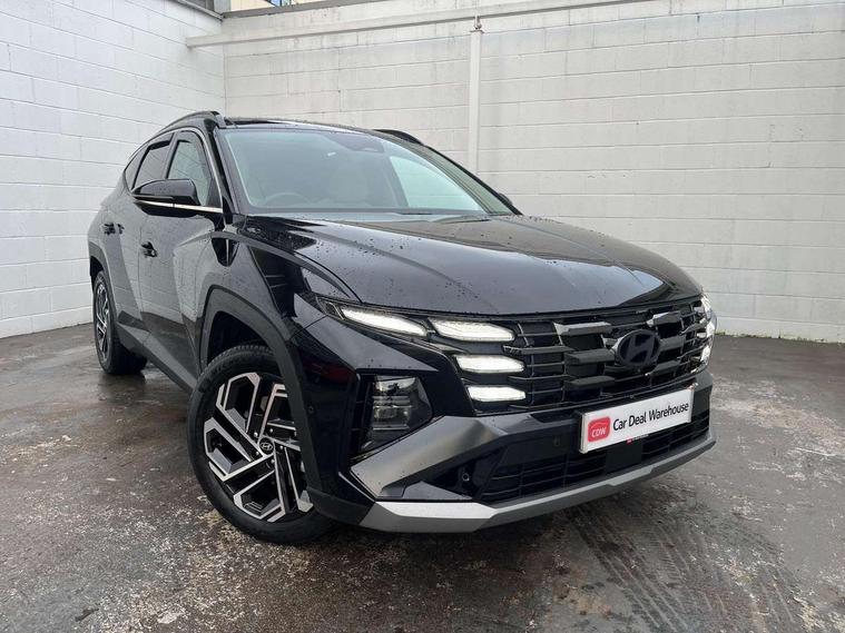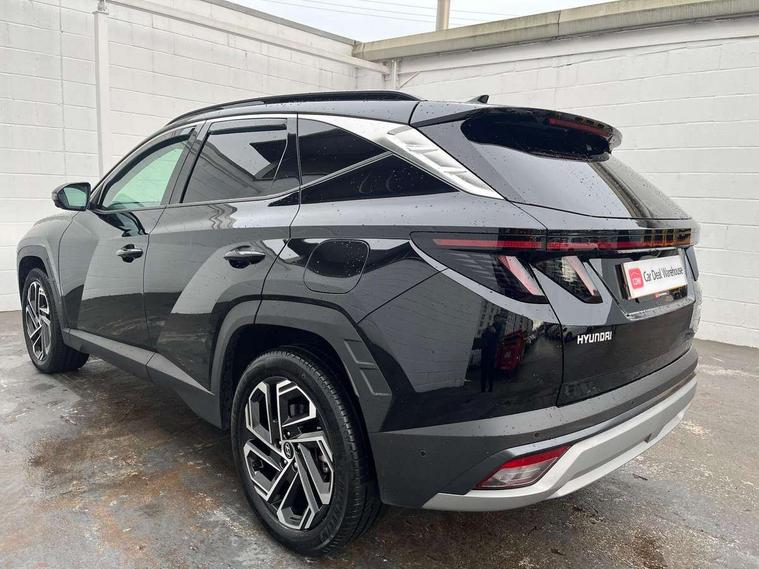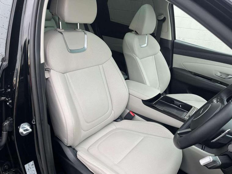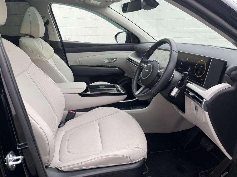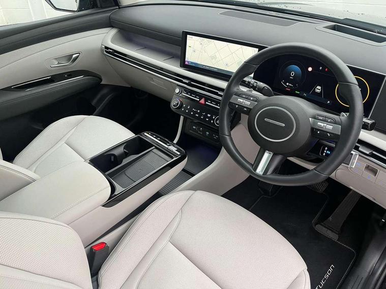 12.3" LCD display with driver's supervision instrument cluster, 12.3" widescreen navigation with bluelink and mapcare, Blind spot view monitor, Bluetooth system, Cruise control - smart adaptive speed control with stop and go function, Digital clock, Drive mode selector, Driver attention warning, E-call, Emergency stop signalling system, Forward Collision Avoidance Assist (FCA) - Car, Pedestrian and Cycle, Forward Collision Avoidance Assist Junction Turning (FCAJX), Front and rear parking sensors, Front, rear and side parking distance warning, Highway Driving Assist (HDA), Hyundai road side assistance, Intelligent speed limit assist, Lane follow assist, Lane keep assist, Over the air updates(OTA), Parking collision avoidance assist (PCA), PAS, Rear camera and guidance parking system, Rev counter, Smart power tailgate, Surround view monitor, Tailgate open warning light, Trip computer, Trip odometer, Voice recognition, Water temperature gauge, Windscreen washer fluid sensor and warning indicator, Wireless Apple CarPlay/Android Auto, Wireless phone charging pad, 2 front and 2 rear USB-C ports, DAB Digital radio, Krell premium audio system with 8 speakers and subwoofer, Steering wheel mounted audio/phone controls, Adjustable intermittent front windscreen wipers with aero wiper blade, Auto dimming rear view mirror, Automatic defog system, Automatic headlights with dusk sensor, Automatic windscreen wipers with rain sensor, Black wheel arches, Body colour bumpers, Body colour door mirrors with integrated indicators, Body colour exterior door handles, Electric tilt/slide panoramic sunroof, Electrically adjustable, heated and power folding door mirrors, Follow me home headlights, Front and rear electric windows with anti-trap mechanism and one touch control, Front fog lights, LED 3rd brake light, LED daytime running lights, LED rear lights, Matrix LED headlights, Positioning Lights - LED, Privacy glass - Rear windows and tailgate, Rear side wing doors, Rear wash/wipe with intermittent wipe setting, Roof rails, Tinted glass with windscreen shade band, Trailer stability assist, 12V power outlets in front console and luggage compartment, 3 seat bench in 2nd row, 40/20/40 split folding rear seat, 64 colours interior ambient lighting, Adjustable head restraints (Up and down), Cupholders in rear armrest, Door courtesy lights, Driver and passenger sunvisors with illuminated LED vanity mirrors, Driver's seat electric adjustments, Driver's seat memory, Front and rear door pockets, Front armrest with storage box, Front centre console and door bottle holders, Front passenger's seat electric adjustments, Heated front seats, Heated rear seats, Heated steering wheel, Height/reach adjustable steering column, Illuminated/air conditioned glove compartment, ISOFIX child seat anchorage points attached on outer rear seats, Leather upholstery, Leather wrapped steering wheel and gear knob, Luggage compartment lighting, Luggage cover, Luggage hooks, Luggage net, Map and reading lights, Rear seat remote folding function, Rear side window sunblind, Reclining rear seats, Retractable load cover, Single front passenger seat, Sunglasses holder, Three zone climate control, Touch sensitive climate controls with temperature dials, TUCSON branded metal door scuff plate, Underfloor boot compartment, Ventilated front seats, Trailer wiring package - Tucson, 3x3 point rear seatbelts, Active bonnet, Airbag - Front, front side, curtain and centre front airbags, Anti-lock brake system (ABS), Brake assist function, Childproof rear door locks, Curtain airbag roll over sensor, Downhill brake control, Electric parking brake, Electronic stability control, Front and rear seatbelt reminder, Front passenger airbag deactivation switch, Front seatbelt pretensioners, Hill start assist control (HAC), Multi-Collision braking, Outer rear seatbelt height adjustment, Seatbelt height adjustment for front seats, Traction control, Tyre pressure monitoring system with individual tyre pressure display - TPMS, Vehicle stability management, Deadlocks, Immobiliser, Locking wheel nuts, Remote control central locking, Smart key with keyless entry and engine start/stop button, Speed sensitive auto door locking, Thatcham category 1 alarm, 19" Alloy wheels, Tyre repair kit,