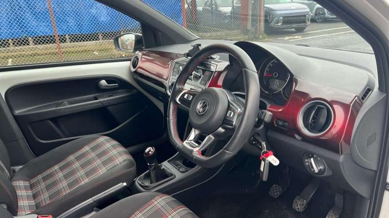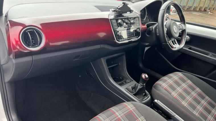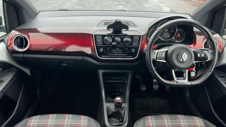 'Lights On' Reminder warning buzzer, Digital clock, Instrument cluster in chrome, Multi function computer, Rev counter, Service interval indicator, Speed sensitive power steering, Speedometer, electronic odometer and fuel gauge, Battery regeneration during braking, Galvanished body, Sports suspension, Composition colour system with 5" screen, DAB, AUX in socket, SD card, MP3/WMA/AAC, 4 X 20W, bluetooth, audio connection and USB connectivity, Smartphone interface navigation with USB Connection, Twin tuner, Aspherical driver's exterior mirror, Body colour door handles, Body coloured bumpers, Chrome exhaust tailpipe, Chrome headlight surround, Chrome trim on air conditioning panel, Electric front windows, Front wash/wipe with interval delay, Gloss black door mirrors, Gloss black rear tailgate spoiler, GTI badging on front wings, rear tailgate and front radiator grille, Halogen clear headlights with integrated indicators and range adjustable, Heat insulated tinted glass 65% light absorbing from B pillar back, Heat insulating tinted glass, Heated rear window, High level 3rd brake light, LED daytime running lights, LED rear number plate lights, Manually dimming rear view mirror, Rear fog lights, Rear windscreen washer and wiper with interval delay, Red Stripe on lower tailgate, Red stripe with chrome detailing on lower radiator grille, Sports bumpers, Stainless steel door sill protection, 12V accessory power point in centre console, 2 cupholders, 60/40 split folding rear seat, Ambient lighting, Black roof lining and sun visors, Chrome interior door handles, Delay courtesy light function, Driver seat height adjust, Dust/pollen filter, Front + rear carpet mats, Front head restraints, Front sports seats, Glovebox, Height adjustable rear head restraints, Height adjustable steering wheel, Isofix Preparation 2 Rear child seats, Jacara cloth upholstery with inserts of front and outer rear seats in fabric check cloth, Luggage compartment cover, Luggage compartment lighting, Multifunction leather trimmed three-spoke steering wheel, gear knob and handbrake grip, Storage compartment in front doors, Variable boot floor, GTI styling pack - Up, Red 2D Pixels dash pack - Up, Winter pack - Up, 3 point height adj front seatbelts + pretensioners, ABS, Driver and passenger airbags, Driver/front passenger side airbags, ESP with EDL + ASR, Front thorax airbags, Hill hold control, Hydraulic Brake Assist (HBA), Red brake calipers, Seatbelt warning lamp and buzzer, Two 3 point rear seatbelts, Tyre pressure warning, Volkswagen roadside assistance, Electronic engine immobiliser, Locking fuel filler cap, Remote central locking with 2 remote folding keys, Chrome air vent surrounds, Chrome-plated light switch surround, 17" Oswald black diamond turned alloy wheels and anti theft wheel bolts, Tool kit, Tyre mobility system,