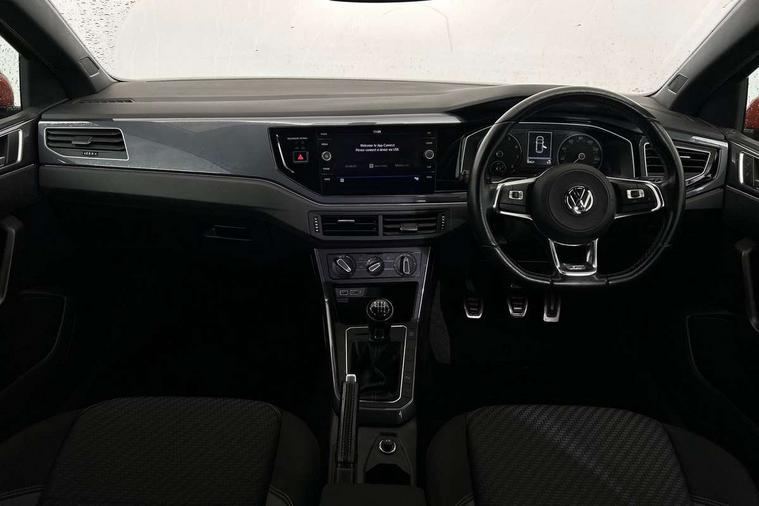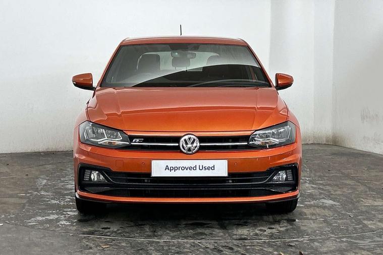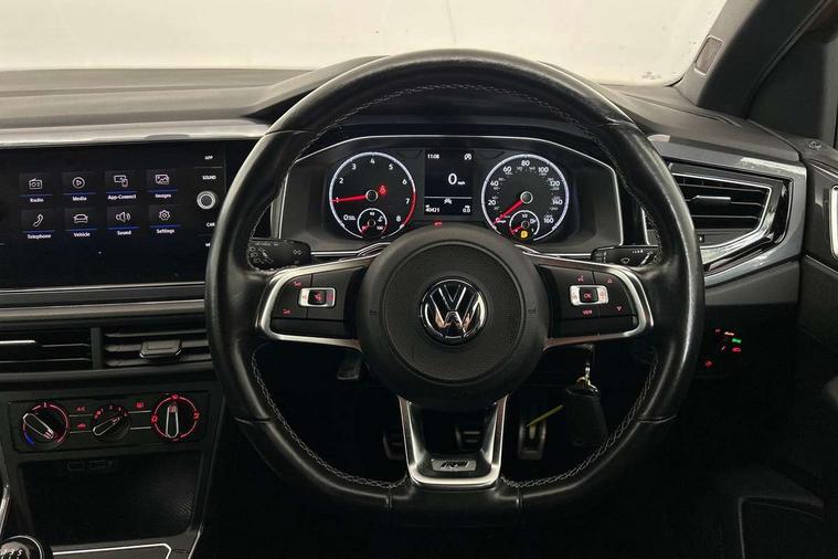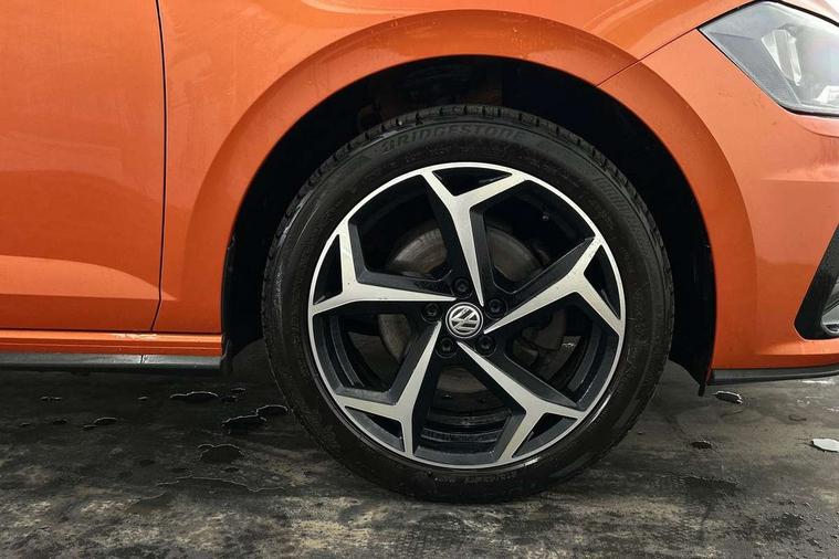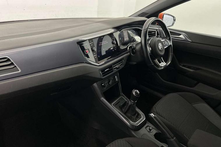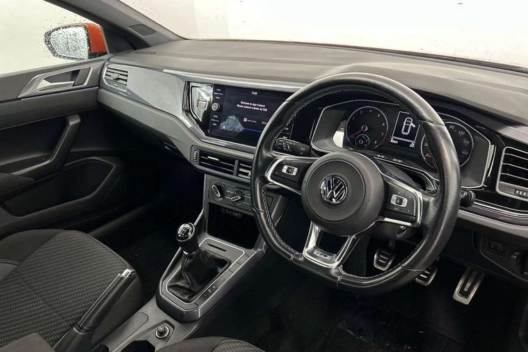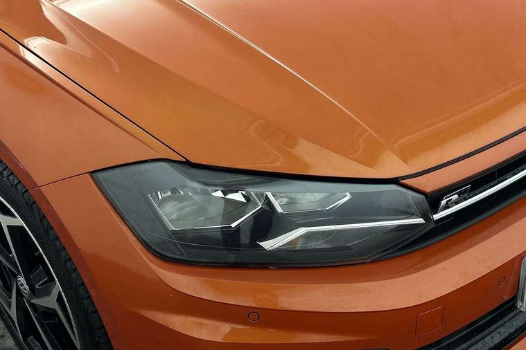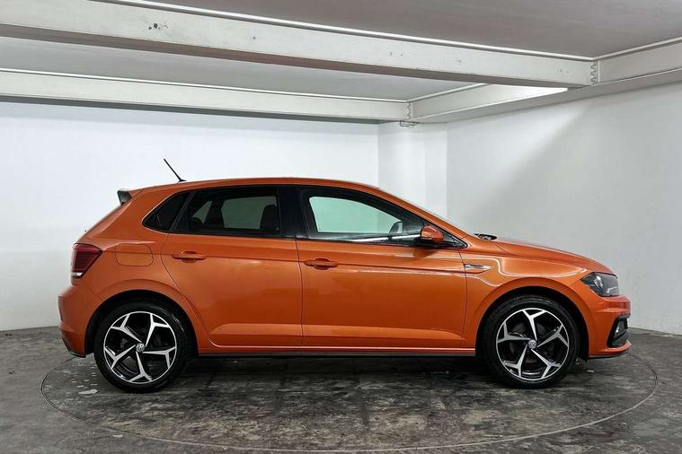 Chrome plated air vent surround, Chrome plated instrument surrounds, Shadow steel decorative inserts, Light and sight pack - Polo, R Line styling pack - Polo, Steel space saver spare wheel, Alarm with interior protection and deactivation via infotainment system, Electronic engine immobiliser, Remote central locking with 2 remote folding keys, 3 point height adj front seatbelts + pretensioners, 3x3 point rear seatbelts, ABS, Automatic post collision braking, Driver/front passenger airbag, Drivers and front passengers safety optimised head restraints, ESP with EDL + ASR, Front and rear passenger curtain airbags, Front passenger airbag deactivation, Front seat side impact airbags, Front/rear disc brakes, HBA (Hydraulic Brake Assist), Hill hold control, Single tone horn, Tyre pressure monitoring system, Black grille with chrome surround, Body colour door handles, Body coloured side sills, Chrome trimmed strip on lower bumper, Electric front windows, Electrically foldable, adjustable and heated door mirrors with reverse activated kerb view adjustment on passenger's side, Front fog lights including static cornering, Front windscreen washers and wipers with 4 speed intermittent delay, Heat insulating tinted glass, Heated rear window with auto timer, High level 3rd brake light, LED darkened rear light clusters, LED daytime running lights, LED rear number plate lights, Left and right chrome effect trapezoid fascia exhaust tailpipe surrounds, Rear diffuser, Rear electric windows, Rear windscreen washer and wiper with interval delay, reverse activated, Unique R Line badging, 2 bag hooks in luggage compartment, 2 front cupholders and 12 V socket with cover, 3 rear head restraints, 60/40 split folding rear seat, Ambient lighting in front foorwell, front/rear door and dashboard light strips, Carbon flag cloth upholstery, Centre console storage with open storage compartment, Chrome-plated electric mirror adjustment switch surround, Chrome-plated electric window button surround, Driver and front passenger seat height adjustment, Driver and front passenger sunvisors with illuminated vanity mirrors, Dust/pollen filter, Folding rear seat backrest, Front + rear carpet mats, Front centre armrest with storage compartment, Front head restraints, Front seat backrest storage pockets, Front sport seats with lumbar adjustment and R line logo on seat backrest, Gear lever gaiter in black trim surround, Glovebox, Handbrake grip button in chrome effect, Height/reach adjustable steering column, Instrument lighting, adjustable panel illumination, Interior light with delay, Isofix Preparation 2 Rear child seats, Jack and tool kit, Leather gear knob and handbrake grip, LED interior lighting - 2 reading lights front and rear with interior delay and dimming function, Luggage compartment cover, removable, Luggage compartment lighting, Luggage compartment with variable load floor, Stainless steel pedals, Storage compartment in front doors, Storage compartment in rear doors, Storage compartment under front seats, Three spoke leather trimmed multifuction steering wheel with aluminium inserts and R Line Logo, Titanium black roof lining and sun visors, Unique R Line door sill protectors, App-Connect, Digital clock, Driver alert system, Lights on warning, Multifunction computer plus, Power assisted speed sensitive steering, Speedo and rev counter, electronic odometer, trip, service interval display and fuel gauge, Start/stop system, Volkswagen connect, Warning buzzer and light for front seatbelts unfastened, Battery regeneration during braking, Galvanished body,