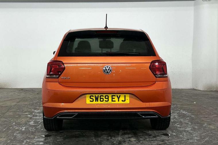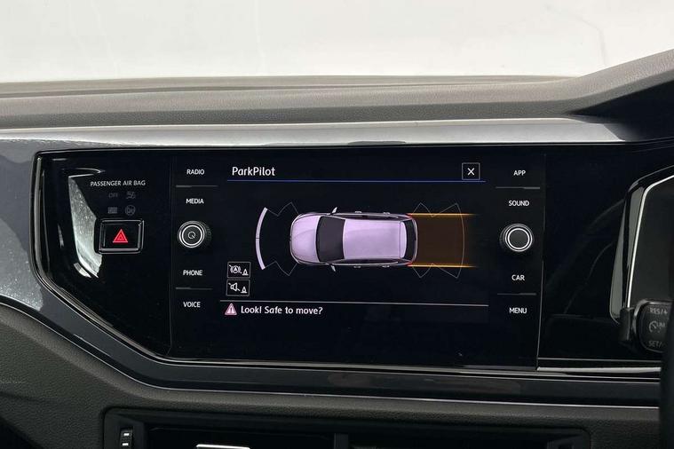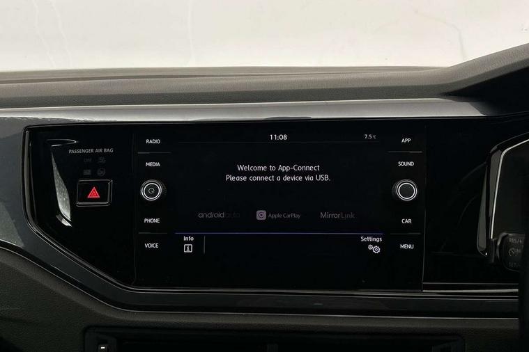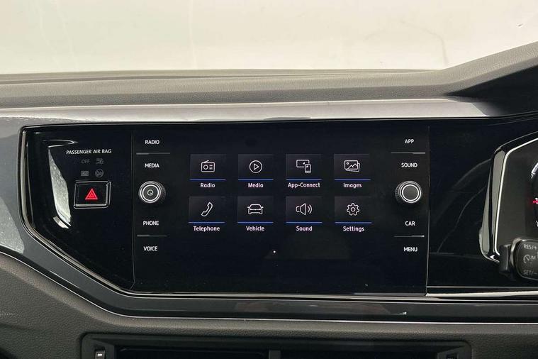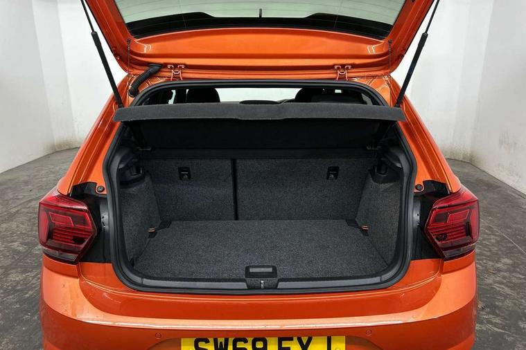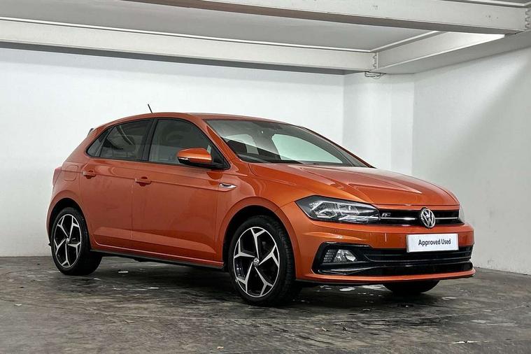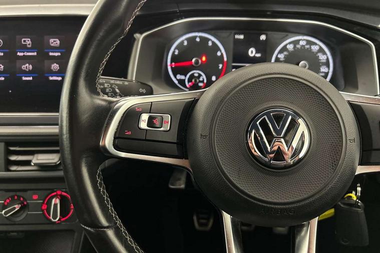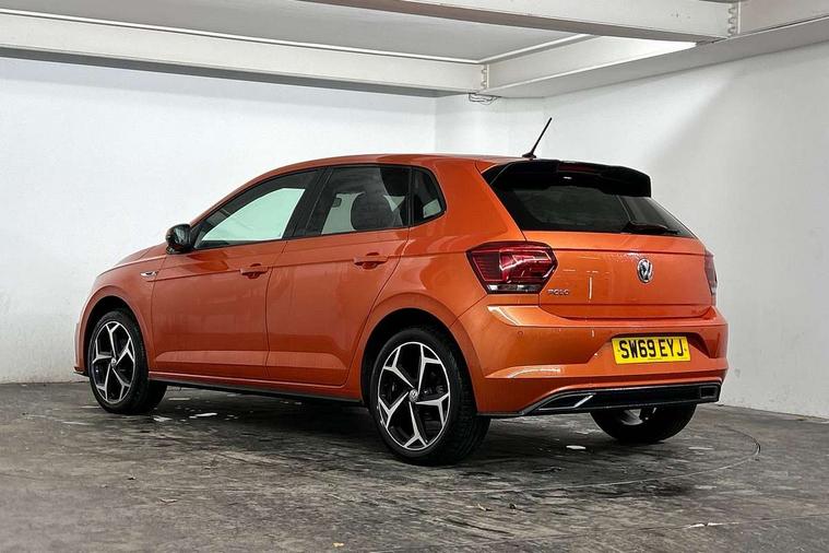 Chrome plated air vent surround, Chrome plated instrument surrounds, Shadow steel decorative inserts, Light and sight pack - Polo, R Line styling pack - Polo, Steel space saver spare wheel, Alarm with interior protection and deactivation via infotainment system, Electronic engine immobiliser, Remote central locking with 2 remote folding keys, 3 point height adj front seatbelts + pretensioners, 3x3 point rear seatbelts, ABS, Automatic post collision braking, Driver/front passenger airbag, Drivers and front passengers safety optimised head restraints, ESP with EDL + ASR, Front and rear passenger curtain airbags, Front passenger airbag deactivation, Front seat side impact airbags, Front/rear disc brakes, HBA (Hydraulic Brake Assist), Hill hold control, Single tone horn, Tyre pressure monitoring system, Black grille with chrome surround, Body colour door handles, Body coloured side sills, Chrome trimmed strip on lower bumper, Electric front windows, Electrically foldable, adjustable and heated door mirrors with reverse activated kerb view adjustment on passenger's side, Front fog lights including static cornering, Front windscreen washers and wipers with 4 speed intermittent delay, Heat insulating tinted glass, Heated rear window with auto timer, High level 3rd brake light, LED darkened rear light clusters, LED daytime running lights, LED rear number plate lights, Left and right chrome effect trapezoid fascia exhaust tailpipe surrounds, Rear diffuser, Rear electric windows, Rear windscreen washer and wiper with interval delay, reverse activated, Unique R Line badging, 2 bag hooks in luggage compartment, 2 front cupholders and 12 V socket with cover, 3 rear head restraints, 60/40 split folding rear seat, Ambient lighting in front foorwell, front/rear door and dashboard light strips, Carbon flag cloth upholstery, Centre console storage with open storage compartment, Chrome-plated electric mirror adjustment switch surround, Chrome-plated electric window button surround, Driver and front passenger seat height adjustment, Driver and front passenger sunvisors with illuminated vanity mirrors, Dust/pollen filter, Folding rear seat backrest, Front + rear carpet mats, Front centre armrest with storage compartment, Front head restraints, Front seat backrest storage pockets, Front sport seats with lumbar adjustment and R line logo on seat backrest, Gear lever gaiter in black trim surround, Glovebox, Handbrake grip button in chrome effect, Height/reach adjustable steering column, Instrument lighting, adjustable panel illumination, Interior light with delay, Isofix Preparation 2 Rear child seats, Jack and tool kit, Leather gear knob and handbrake grip, LED interior lighting - 2 reading lights front and rear with interior delay and dimming function, Luggage compartment cover, removable, Luggage compartment lighting, Luggage compartment with variable load floor, Stainless steel pedals, Storage compartment in front doors, Storage compartment in rear doors, Storage compartment under front seats, Three spoke leather trimmed multifuction steering wheel with aluminium inserts and R Line Logo, Titanium black roof lining and sun visors, Unique R Line door sill protectors, App-Connect, Digital clock, Driver alert system, Lights on warning, Multifunction computer plus, Power assisted speed sensitive steering, Speedo and rev counter, electronic odometer, trip, service interval display and fuel gauge, Start/stop system, Volkswagen connect, Warning buzzer and light for front seatbelts unfastened, Battery regeneration during braking, Galvanished body,