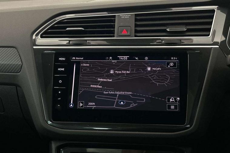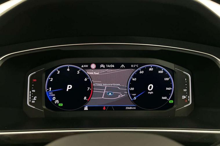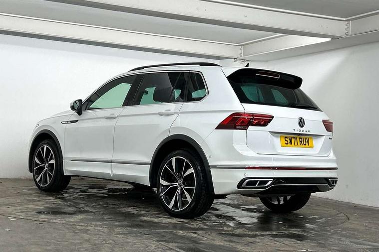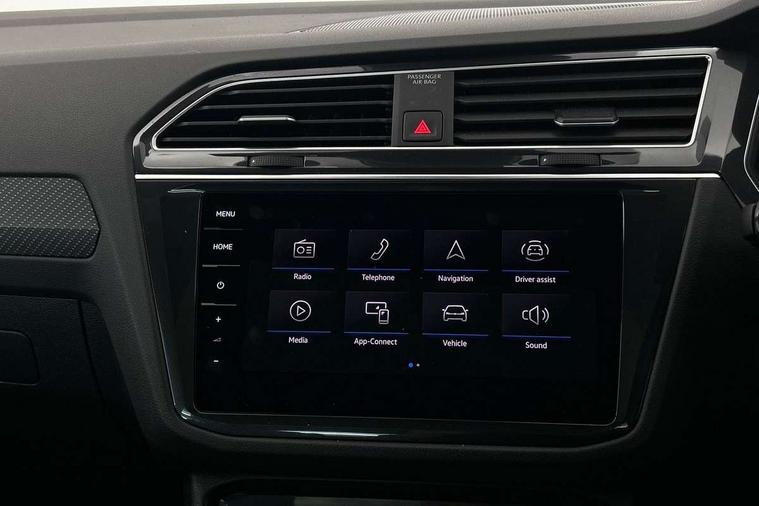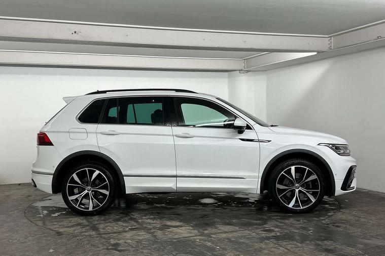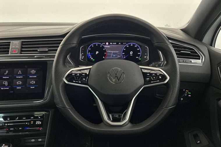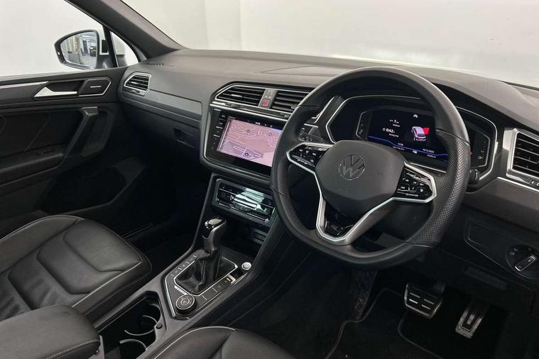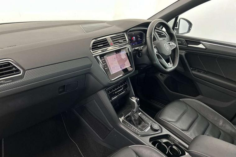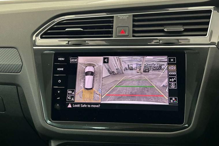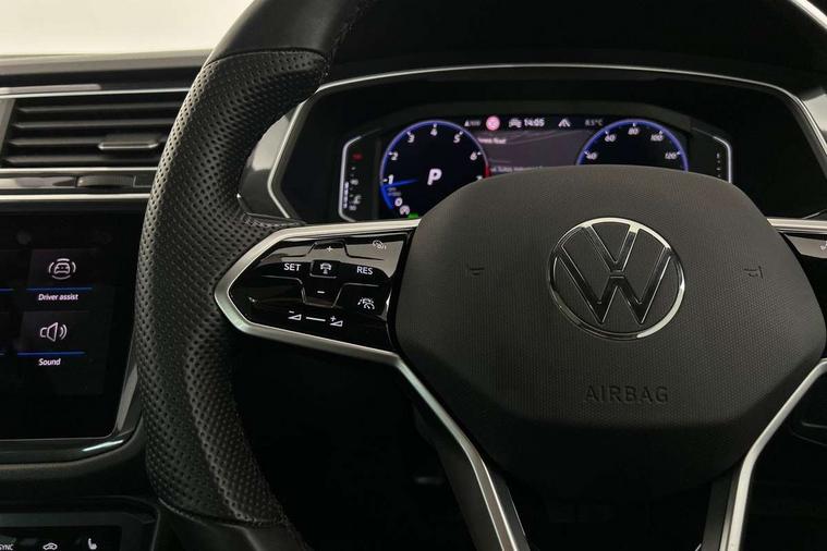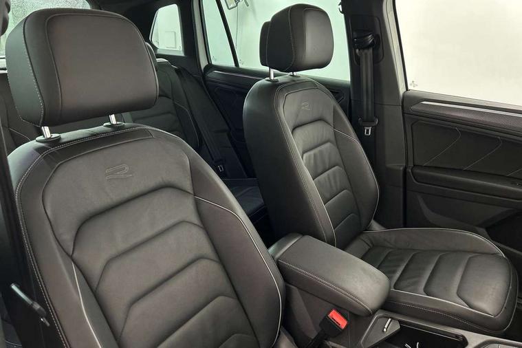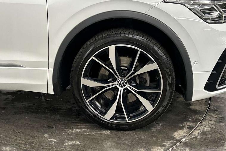 Adaptive cruise control ACC stop and go including speed limiter, App-Connect incl. App-Connect Wireless for Apple CarPlay and Android Auto, Bluetooth phone integration system, Digital Cockpit Pro - Active info display, Distance control assist, Driver alert system, Driver profile selection, Dynamic road sign display, eCall emergency call system, Electromechanical speed sensitive power steering, Engine start/stop button, Lane keeping system Lane Assist, Lights on warning, Multifunction front facing camera, Outside temperature display, Premium multifunction display with multi colour display, Remote control boot opening, Rev counter, Revision / skills operating concept travel assistant, Service interval indicator, Speed limit display, Start/stop system with regenerative braking, Trip computer, Warning sound and light for doors and tailgate open, ACC - Adaptive chassis contol with adaptive dampers, All wheel drive - 4Motion, Battery regeneration during braking, XDS electronic differential lock for improved traction and handling, 2 USB-C ports in the front, 1 USB-C charging socket on the center console in the rear, Diversity antenna for FM reception, Radio, SD card slot, Simultaneous pairing of 2 compatible mobile devices, SMS functionality - read, compose and send SMS messages using touch-screen display, Title and cover art display, Auto dimming interior rear view mirror, Automatic headlight control system, Black roof rails, Body colour door handles, Body coloured bumpers in R Line style, Body coloured door mirrors with integrated indicators, Chrome moldings on the side windows, Coming/leaving home lighting function, Dynamic headlight range control, Front and rear electric windows, Heated rear window, High level 3rd brake light, Laminated safety glass windshield, heat and sound insulating, LED rear number plate lights, License plate carrier in front and rear, Poor weather light and cornering light, Privacy glass for rear side windows and rear window, R Line body kit, R Line side sills, Rain sensor windscreen wipers, Rear exhaust tailpipe, Rear fog lamp, Rear side wing doors, Rear spoiler in R style, Rear windscreen washer and wiper with interval delay, Side and rear windows in heat insulating glass, Trailer Stability Programme, Unique R Line badging, Windscreen wipers/ intermittent wipe + 4 position delay, 12V outlet in center console rear and in luggage compartment, 12V outlet in front and tray, 2 cup holders in front, 2 LED front reading lights, 2 LED rear reading lights, 3 bench rear seats in 2nd row, 3 rear headrests, 4 load lashing points, 40:20:40 split folding rear seats, Air Care Climatronic 3 zone automatic climate control with enhanced air filter and controls in the rear, Backrest release for left front seat, Black headlining, Brushed stainless steel pedals and footrest, Carpet mats in front and rear with decorative stitching in Gray, Climate control unit rear with touch function, Door and side trim panel in foam film, insert in leatherette, Front centre armrest, Front footwell illumination, Front seats head restraints (x-adjustment), Height adjustable front seats, Height/reach adjust steering wheel, Instrument lighting white adjustable panel illumination, Interior light with delay, Isofix Preparation 2 Rear child seats, Leather gear knob, Lockable cooled glovebox, Luggage compartment lighting, Luggage net, Rear bench seat asymetrically split folding, longitudinally movable and folding with load-through hatch and center armrest, Remote unlocking for rear seat backrest, Removable luggage cover, Removable rear headrests, Safety optimised front head restraints, Single front passenger seat, Sliding/reclining rear seats, Standard rear seat release, Storage compartment in driver's door, Storage compartment in passenger's door, Storage compartment in rear doors, Storage compartments in luggage area left and right, Storage tray on dashboard, Sun visors with illuminated vanity mirrors, Top front comfort seats, Variable boot floor, height adjustable and removable, Ambience pack - Tiguan R Line, Driver assistance pack plus - Tiguan DSG, Park assist pack - Tiguan, 3 point seat belt for centre rear seats, 3 point seat belts with seat belt pretensioners for the outer rear seats, Active bonnet, Curtain airbags for front and rear passengers, Driver/Front Passenger airbags, Drivers knee airbag, Electronic parking brake with auto hold, Electronic Stability Control with driver steering recommendation, ABS, ASR, EDL, EDTC and trailer stabilization, Front assist with autonomous emergency braking (for Adaptive Cruise Control ACC up to 130 mph), Front disc brakes, Front passenger airbag deactivation, Front side airbags, Height adjustable front 3 point seatbelts + pretensioners, Hill hold control, Manual child proof rear door locks, Pedestrian monitoring system, Power assisted brakes, Proactive passenger protection system in combination with front assist, Rear disc brakes, Rigid safety cell with front and rear crumple zones, Two tone horn, Warning sound and light for front seat belts if unfastened, Anti theft alarm system with interior monitoring, backup horn and towing protection, Anti theft wheel bolts, Electronic engine immobiliser, 20" Misano black with diamond turned surface alloy wheels with Airstop tyres, Tool kit,