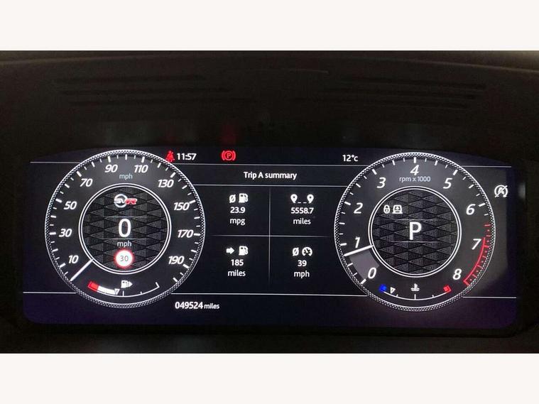 All Terrain Info Centre, Bluetooth connectivity, Clear exit monitor, Driver condition monitor, Incontrol apps in vehicle touchscreen, Incontrol pro services and wifi hotspot, InControl secure Tracker, Interactive Driver display instrument cluster, Mist sensor, Navigation pro system with 10" touch screen, app interface and media storage, Powered gesture tailgate/boot lid, Push button start, Rear traffic monitor, Remote premium - Upgraded Incontrol remote app including remote climate control (engine dependent), remote lock + Unlock and remote beep + flash, Touch pro duo system, Traffic sign recognition with adaptive speed limiter, Trip computer, Adaptive dynamics, All terrain progress control, Configurable dynamics, Electronic active differential with brake torque vectoring, Gradient release control (GRC), SVR sports suspension with dynamic response (active roll control), Terrain Response 2 with dynamic program, Twin speed transfer box, Bluetooth audio streaming, DAB Radio (Digital Audio Broadcasting), Incontrol protect - SOS emergency call with automatic collision detection, optimised assistance call and Incontrol remote app essential, USB/aux input socket, Acoustic laminated front windows, Active exhaust control, Adaptive brake lights, Auto dimming interior rear view mirror, Automatic headlights, Body coloured side sills and bumpers corners, Electric windows with one touch open/close and anti trap, Electrical towing preparation, Follow me home lighting, Front and rear recovery eyes, Headlight power wash, Heated rear window, Heated windscreen includes heated washer jets, Illuminated metal treadplates with brand name script, Laminated front and toughened rear side glass, LED rear lamps, Power fold, auto-dimming, heated door mirrors with memory and approach lights, Quad tailpipes, Rear fog lights, Rear wash/wipe, Remote window closing, Side repeater indicators in mirror, SVR badge, Switchable sports exhaust, Trailer stability assist, Unique light weight exhaust system, 16 way driver/passenger electrically adjustable SVR performance seats with memory, 2 way rear head restraints, 4 way lumbar support with memory function, 60/40 split folding rear seat, Aluminium gear shift paddles, Auto air recirculation, Bright metal foot pedals, Centre console with armrest, Climate control memory, Configurable Ambient interior lighting, Customer configurable single point entry, Driver's footrest, Extended leather upgrade includes door top rolls and leather instrument panel mid section, Front and rear cupholders, Front and rear premium carpet mats, Front door storage space, Front map lights, Front seat back map pockets, Front stowage pocket, Front/rear passenger grab handles, Heated steering wheel, Integrated front head restraints, Isofix child seat preparation, Loadspace light, Loadspace mounting provisions, Lockable glovebox, Multifunction steering wheel, Pollen filter, Reach/rake electric adjustable steering column + entry/exit tilt away, Rear centre armrest, Rear ISOFIX, Roller blind loadspace cover, Sports pedals, SVR leather steering wheel, SVR Performance seats, Three 12V accessory power outlets, 3 point seatbelts on all seats, Anti-lock braking system (ABS), Brake pre-fill technology, Cornering brake control (CBC), Curtain airbags, Customer configurable autolock, DSC - Dynamic Stability Control, Dual stage driver/passenger airbags, EBD - Electronic brakeforce distribution, Electronic parking brake, Electronic traction control, Emergency braking includes city, urban AEB and pedestrian, Front seatbelt pretensioners, Gradient acceleration control, Height adjustable front seatbelts, High speed emergency braking, Hill descent control, Hill launch assist, Low traction launch, Passenger seat occupant detector with front airbags, Power operated child locks, Roll stability control, Seatbelt warning, TPMS (Tyre pressure monitoring system), Immobiliser, Intrusion sensor, Keyless entry, Locking wheel nuts, Perimetric and volumetric anti theft alarm, Remote locking, Tracker system,