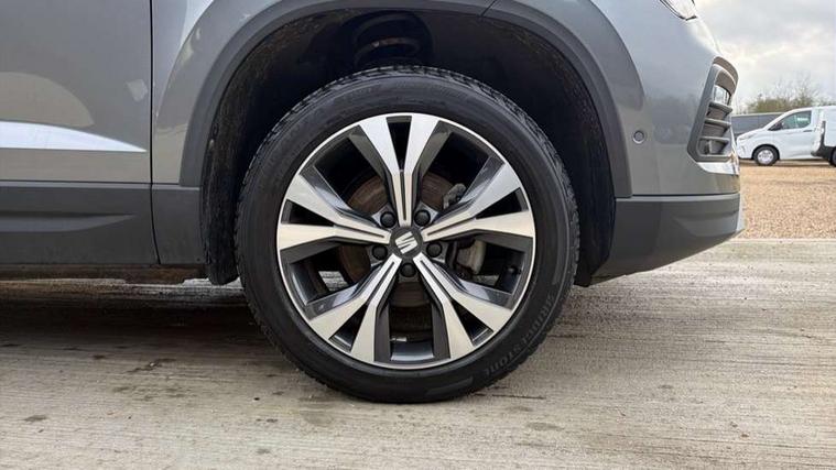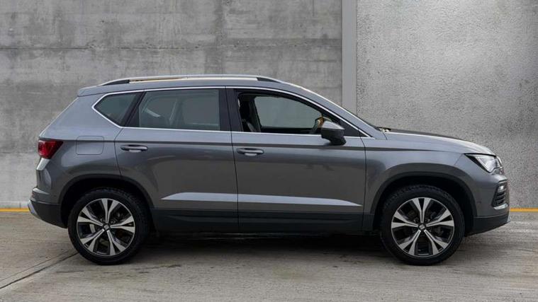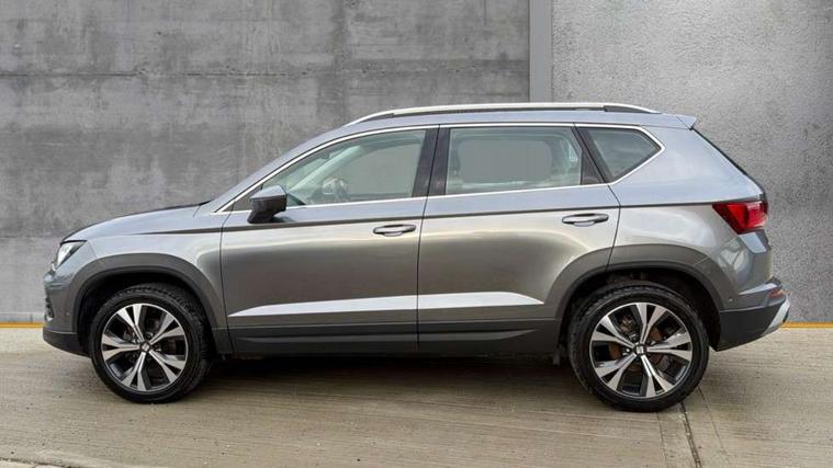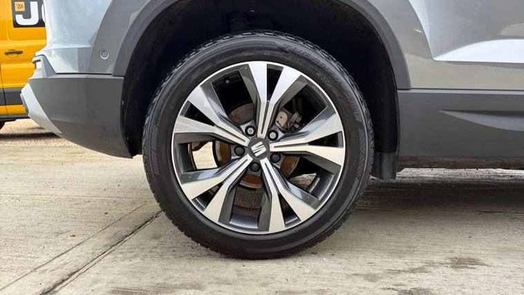 8" Digital cockpit, Colour multi-function on board computer display, Cruise control system with speed limiter, E-call, Outside temperature gauge, PAS, SEAT drive profile with driving experience button - Normal, Sport, Eco and Individual mode, gearshift, steering and throttle response, Self parking functionality (includes front and rear parking sensors), Start/stop system, Tailgate, Trip computer, wired and wireless full link smartphone integration, Wireless phone charger, Steering wheel mounted audio/phone controls, Black wheel arch surrounds, Body colour bumpers, Chrome front grille frame, Chrome roof rails, Chrome side window trim, Daytime running lights, Door mirrors with welcome light silhouette, Dynamic headlight range control with self adjusting whilst driving, Electric adjustable/heated/folding door mirrors, Front and rear electric windows, Full LED headlamps with lens and LED front fog lamps with cornering function, LED 3rd brake light, LED rear tail lights, Rear exhaust tailpipe, Rear fog lights, Rear side wing doors, Rear wash/wipe, Variable front intermittent wipers, 12V socket in front, 3 seat bench in 2nd row, 60/40 split folding rear seat, Cloth upholstery with front comfort seats, Drawer under right front seat, Dual zone climate control, Front and rear head restraints, Front centre armrest, Front seat back storage pockets, Height adjustable driver and passenger seat with lumbar adjustment, ISOFIX points in outer rear seats with top tether anchorage points, Leather sports steering wheel and gear knob, Rear armrest and easy back seat release mechanism from boot, Single front passenger seat, Steering wheel mounted gearshift paddles, Convenience pack - Ateca, Interior lighting pack - Ateca, Navigation system pack with DAB - Ateca, Safety and driving pack with attention and drowsiness assist - Ateca, 3x3 point rear seatbelts, ABS, Traction control system (TCS), Electronic stability control (ESC) and Electronic differential lock system (XDS), Airbags - Driver and front passenger airbag with deactivation, front side, two curtain and driver's knee airbags, Electric parking brake with auto hold function, Front and rear seatbelt reminder, Front assist with autonomous emergency braking, Hill hold control, Manual rear child locks, Single tone horn, Tiredness recognition system, Tyre pressure monitoring system, Alarm, Keyless entry, Locking wheel bolts, Remote central locking, Chrome interior detailing, 18" Performance machined alloy wheels 36/2 in nuclear grey,