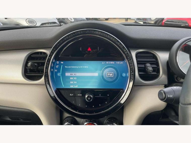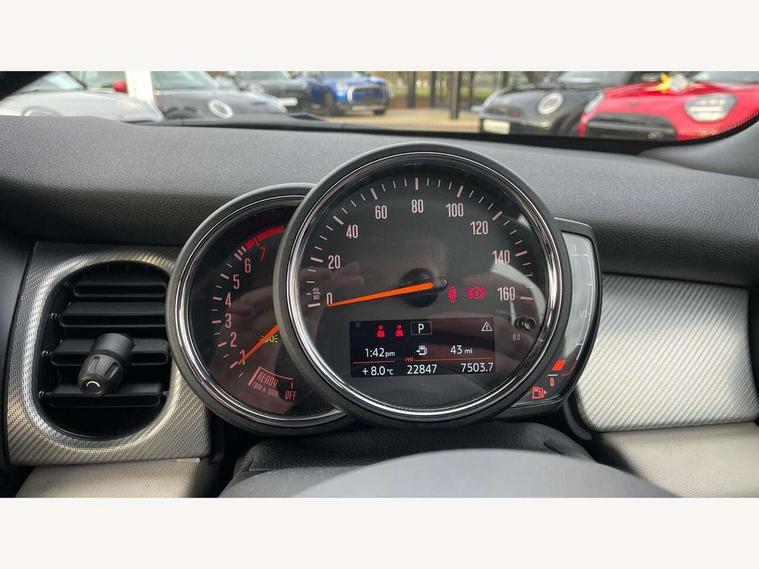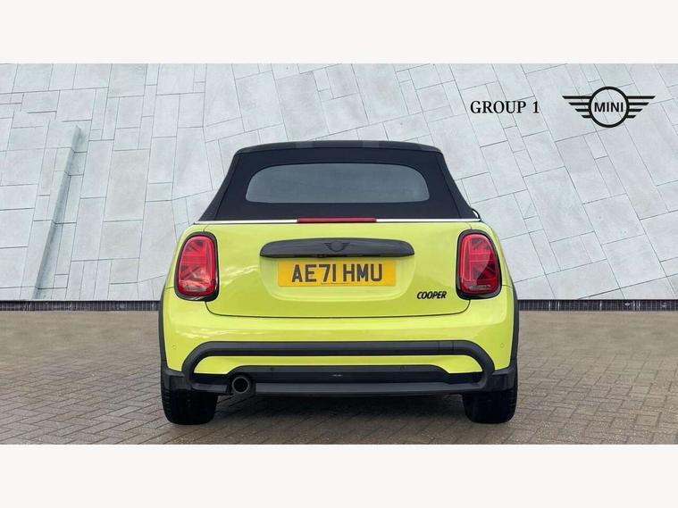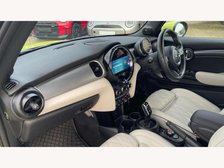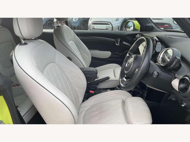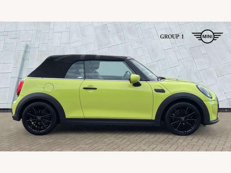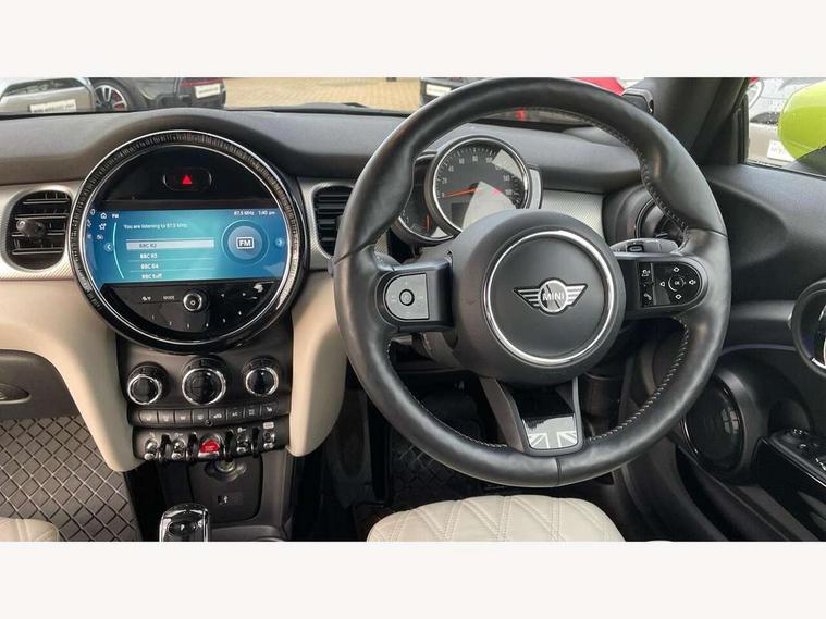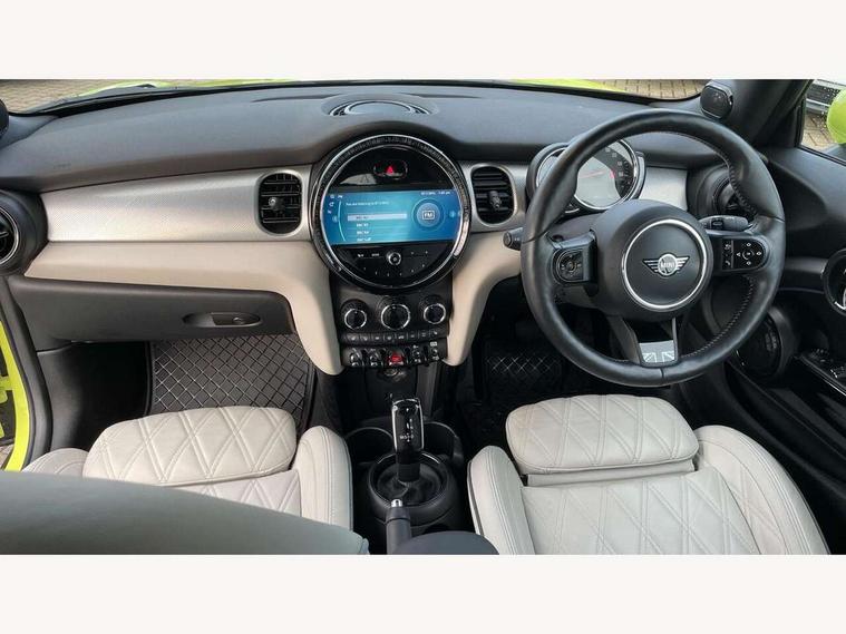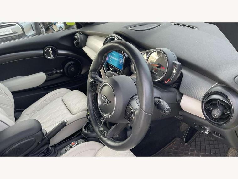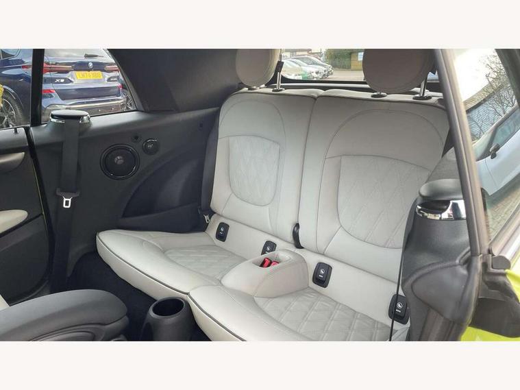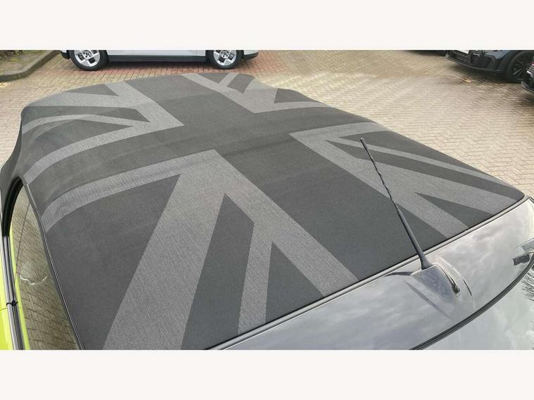 Automatic start/stop function with brake energy recuperation, Compatible mobile phone bluetooth with audio streaming, Cruise control with brake assist, Electro-mechanical speed dependant steering assistance, Instrument cluster, MINI Driving Modes - centre toggle switch to control driving setting (sport, mid and green), Mini E-call, MINI TeleServices, On board computer, Rear park distance control, Service interval indicator, Double Vanos system, Fully variable valve control, High precision injection, Performance Control, Steptronic transmission with double clutch, 4 speakers, 8.8" touchscreen with LED ring, FM tuner and DAB digital radio, Automatic headlight activation switch, Body colour fuel filler cap, Dynamic brake lights, Electric windows, Fully electric black softtop with integrated sunroof functionality, Heated rear window, Heated windscreen washer jets, LED headlight with closed ring and daytime driving lights, Left exhaust tailpipe with chrome finisher, Metal door sill strips with MINI imprint, Mini Yours soft top - Black/Union Jack, Model logo Cooper on right of tailgate, Radiator grille bars, tailgate handle, lower front grille grating, rear central fog light in chrome, Rain sensor window wipers, Rear fog lights, Rear LED lights with union jack design, Side scuttle panel with integrated indicator, Sun/heat protection glass, White indicator lenses, 12V Accessory socket in centre console, 4 lashing eyes in luggage compartment, 50/50 split folding rear seats, Chrome interior highlights, Colour line - Carbon black, Cupholders, Easy Load boot handles, Front and rear head restraints, Front and rear isofix with front passenger airbag deactivation, Glove compartment, Height and length steering column adjustment, Interior lighting with 12 different colours running across the dashboard, underneath door bezel illuminated laser engraved design on central display, Leather gearshift lever and handbrake gaiters, LED reading lights, vanity mirror lights, front foot well light and spotlight on front seats, Manual air conditioning, Mechanical seat adjustment, driver seat height adjust, forward/back and front seats backrest, MINI Yours walk nappa leather steering wheel with grey seam and MINI Yours badge on piano black lower steering wheel spoke, Multifunction steering wheel, Storage compartments in doors, Sunvisors with vanity mirrors, Velour floor mats, Convertible pack with comfort access - Mini Convertible, 3 point seatbelts on all four seats, 6 Airbags - front, side and seat belt tensioners, Active rollover protection, Anti-lock braking system (ABS), DSC - Dynamic Stability Control, Front and rear disc brakes, Hill start assist, Single tone fanfare horn, Tyre pressure monitoring system, Alarm system with tilt sensor, monitoring doors, bonnet interior and tailgate, Electronic vehicle immobiliser, Keyless Go, Tool kit,