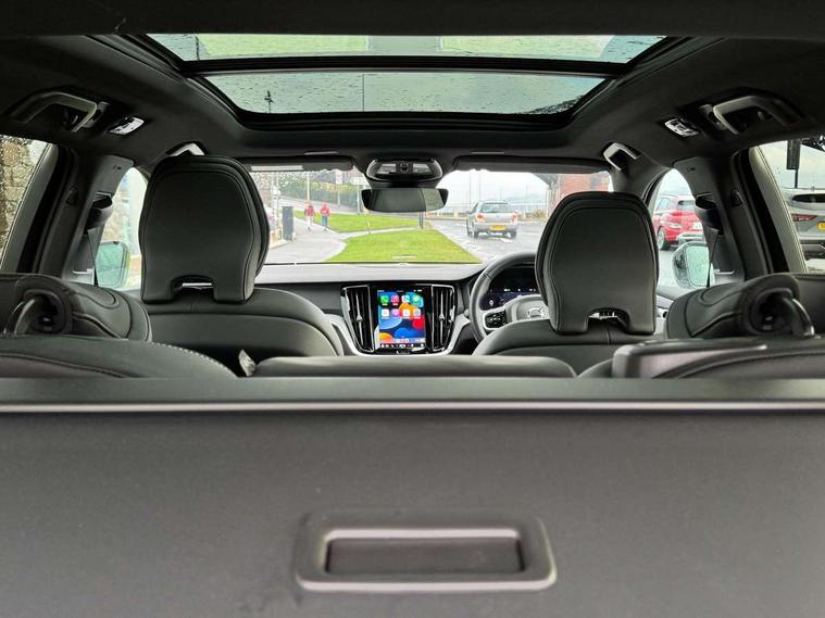 12.3" Progressive Driver Display, 360 degree surround view parking camera with side proximity sensors, 9" centre console touch screen, Adjustable steering wheel force, Apple CarPlay, Bluetooth handsfree system, Driver alert control with lane keeping aid, Driver assistance (pilot assist and adaptive cruise control), Driver awareness - Blind spot information system with steer assist, cross traffic alert with autobrake and rear collision warning and mitigation, E-call, Front and rear park assist, Google automotive services - Enabled entertainment apps, navigation with google maps, voice recognition with google assistant, Information centre, Intelligent speed assistance, Oncoming Lane Mitigation, Power operated tailgate with handsfree opening and closing, Service interval indicator, Speed sensitive steering, Trip computer, Volvo cars services with app, Volvo on call app, Wireless/Inductive Mobile Phone Charging, Automatic transmission with start/stop and manual change functions, Dynamic chassis, DAB Digital radio, Premium sound by Harman Kardon, Dolby Pro Logic II surround sound, Dirac Unison, 13 speakers/600W and fresh air subwoofer, Steering wheel remote infotainment controls, Active bending headlights with adaptive shadow technology, Adaptive brake lights with high level LED brake lights, Auto dimming interior + exterior mirrors, Automatic headlight levelling system, Automatic LED Headlights + Active high beam incorporating daytime running lights, Dark tinted windows - rear side windows and rear screen, Front aluminium tread plates, Front and rear power windows, Headlight cleaning system, Heated front windscreen, High gloss black autofolding heated power door mirrors, High gloss black front and rear bumper deco, High gloss black mesh front grille with high gloss black surround, High gloss black window surround, Home safe and approach lighting, Integrated roof rails in high gloss black, LED front fog lights, Power glass tilt and slide panoramic sunroof with sun curtain, Puddle lights, Rain sensor with automatic windscreen wiper activation, Rear side wing doors, Rear wiper, Roof antenna, Roof spoiler, Variable front intermittent wipers, Visible VIN plate, 12V socket in front tunnel console and luggage compartment, 3 Spoke tailored steering wheel with chrome trim, 4 zone electronic climate control with Clean zone air quality system + pollen filter, 60/40 versatile split folding 3 bench rear seats in 2nd row, Air purifier PM2.5, B Pillar ventilation, Bright metal luggage scuff plate, Centre console storage, Charcoal carpets and floor mats, Extended front seat cushions, Front and rear courtesy and front reading lights, Front cupholders, Front footwell illumination, Front head restraints, Front/rear door pockets and front cupholder illumination, Glovebox compartment with illumination, Heated front seats, Heated rear seats outer positions, Heated steering wheel, Height/reach adjustable steering column, Illuminated vanity mirrors + ticket holder, ISOFIX attachment on outer rear seats, Load cover, Load protection net, Luggage compartment divider with grocery bag holder, Luggage compartment illumination, Luggage compartment load hooks, Multi directional lumbar support, Power driver seat with memory + exterior mirrors memory, Power folding rear headrests, Power height adjustable passenger seat, Power passenger seat with memory, Rear armrest with cupholder, Rear footwell and front and rear side step illumination, Rear reading lights, Single front passenger seat, Tailgate illumination, Underfloor cargo storage, 5 x 3 point seatbelts, City safety with steering support with Pedestrian + cyclist + front collision warning with full auto brake and rear auto brake, Driver and passenger airbags, First aid kit, Front seats SIPS airbags, Hill start assist, IC (Inflatable Curtains) - Full Length, Passenger airbag cut-off switch, Power child locks on rear doors, Power parking brake with auto hold function, Road sign information display, Run off Road Mitigation, Run off Road Protection, Seatbelt reminder and pretensioners for all seats, SIPS (Side Impact Protection System), Slippery road and hazard light alert, Stability and Traction Control with Spin control, Engine Drag Control and Corner Traction Control, Tyre pressure monitoring system, Vehicle deceleration control with Anti-lock Brake System, Electronic Brake Distribution and Emergency Brake Assist, Warning triangle, WHIPS whiplash protection system - front, 2X Key integrated remote control central locking with deadlocking system and auto open/close power windows, Anti-theft alarm including immobiliser/volume sensor + level sensor, Care key with user defined top speed, Keyless drive includes keyless entry and keyless start, Locking wheel nuts, Private locking luggage compartment, 19" 5 Triple spoke diamond cut/black alloy wheels,