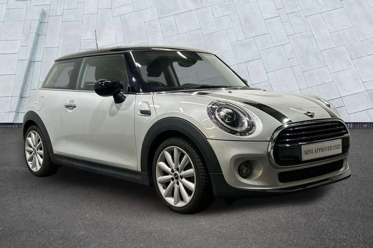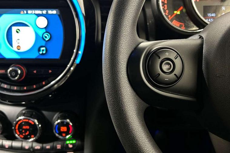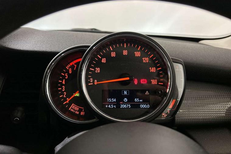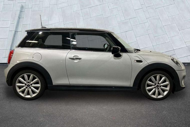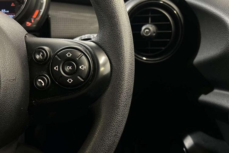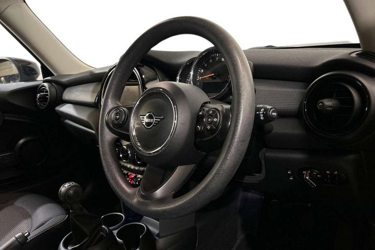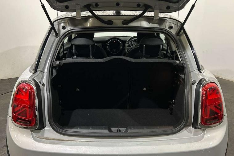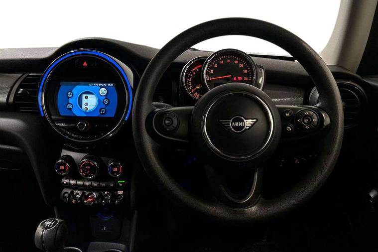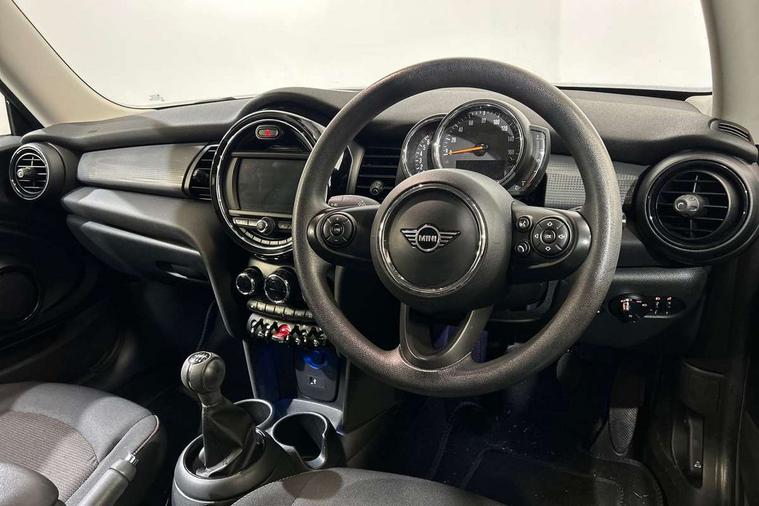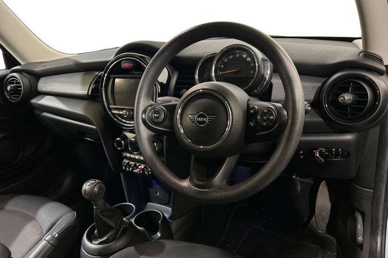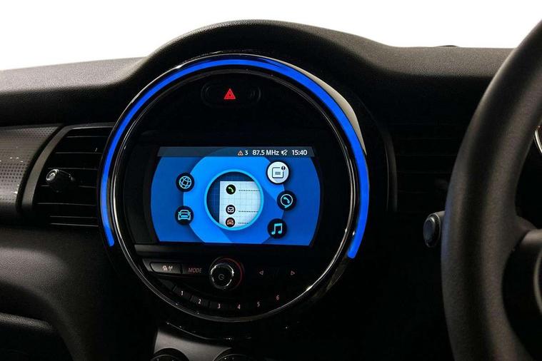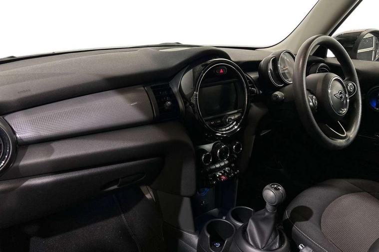 Alarm system with tilt sensor, monitoring doors, bonnet interior and tailgate, Electronic vehicle immobiliser, Start/stop toggle with keyless go, 6.5" touchscreen with LED ring, FM tuner and DAB digital radio, 3 point seatbelts on all four seats, 6 Airbags - front, side, head and seat belt tensioners, Anti-lock braking system (ABS), DSC - Dynamic Stability Control, Front and rear disc brakes, Hill start assist, Single tone fanfare horn, Tyre pressure monitoring system, Automatic headlight activation switch, Body colour fuel filler cap, Chrome border high gloss black slats radiator grille, Dynamic brake lights, Electric front+rear windows, Heated rear window, Heated windscreen washer jets, LED headlight with closed ring and daytime driving lights, Left exhaust tailpipe with chrome finisher, Metal door sill strips with MINI imprint, Model logo Cooper on right of tailgate, Rain sensor window wipers, Rear fog lights, Rear LED lights with union jack design, Rear window wiper, Side scuttle panel with integrated indicator, Sun/heat protection glass, White indicator lenses, 12V Accessory socket in centre console, 4 lashing eyes in luggage compartment, 60/40 split folding rear seat, Chrome interior highlights, Colour line - Carbon black, Cupholders, Front and rear head restraints, Front and rear isofix with front passenger airbag deactivation, Glove compartment, Height and length steering column adjustment, Interior lighting with 12 basic colours selectable via toggle switch in roof, Leather gearshift lever and handbrake gaiters, LED reading lights, vanity mirror lights, front foot well light and spotlight on front seats, Manual air conditioning, Mechanical seat adjustment, driver seat height adjust, forward/back and front seats backrest, Mini logo projection on floor from drivers exterior mirror, Multifunction steering wheel, Satellite grey headlining, Storage compartments in doors, Sunvisors with vanity mirrors, Tool kit, Automatic start/stop function with brake energy recuperation, Compatible mobile phone bluetooth with audio streaming, Electro-mechanical speed dependant steering assistance, Instrument cluster, Mini E-call, MINI TeleServices, On board computer, Service interval indicator, Double Vanos system, Fully variable valve control, High precision injection,