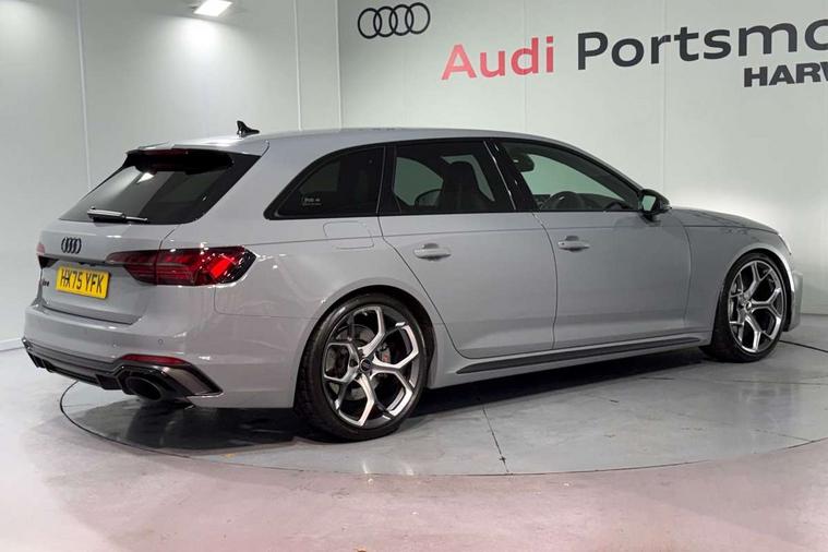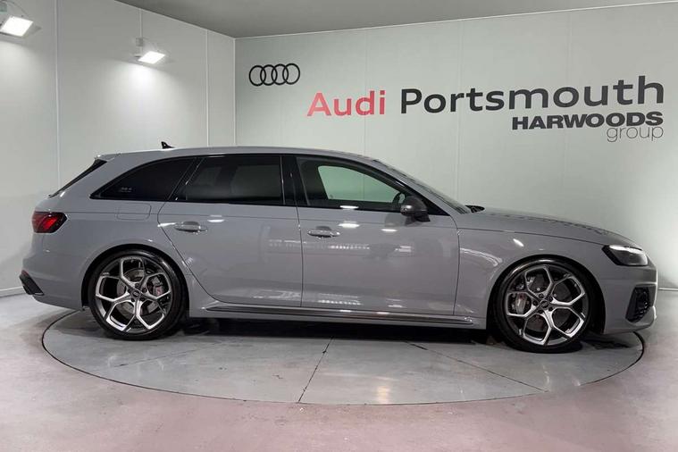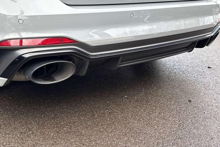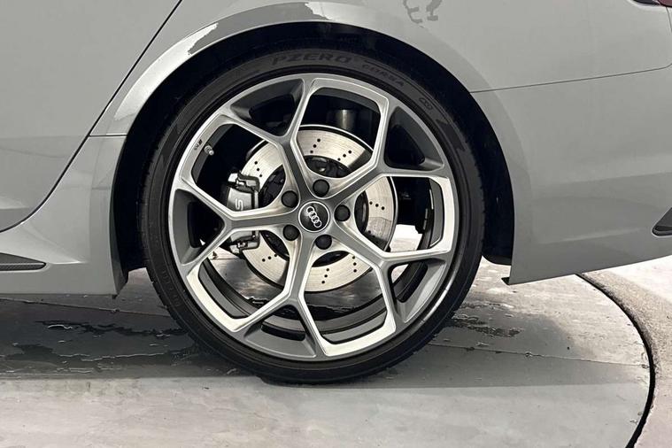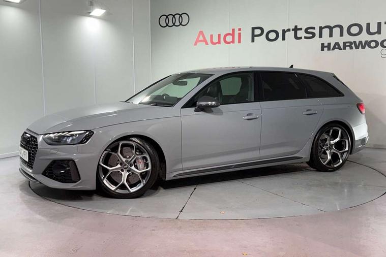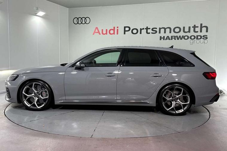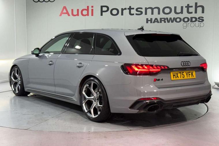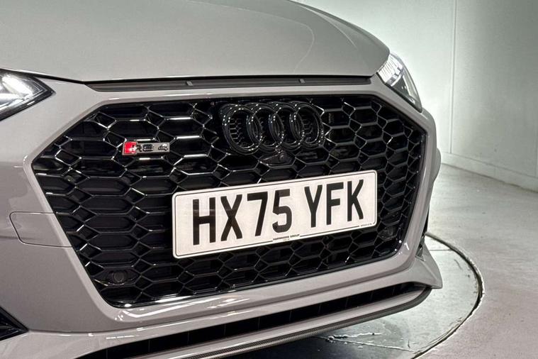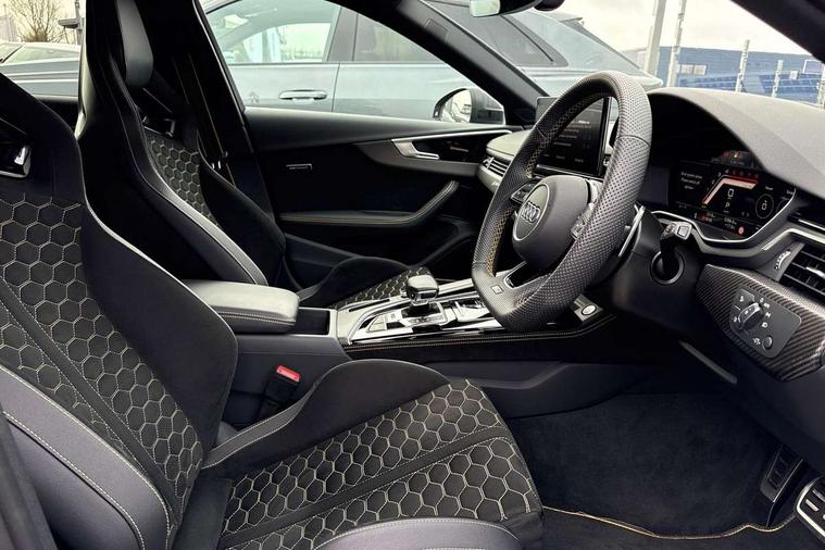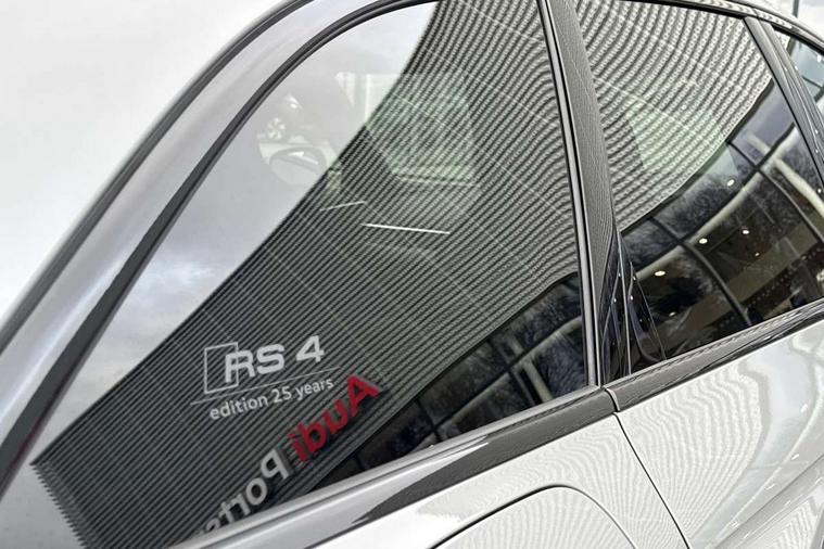 360 degree view camera, 7" Colour driver information system, Adaptive cruise control, Advanced key with electric hands free boot opening system, Audi connect safety and service (e-call), Audi parking system plus with front and rear sensors, Audi phone box light with wireless charging, Audi side assist, Audi smartphone interface, Audi virtual cockpit plus with additional RS layout and white dials, Automatic start-stop system with coasting functionality and efficiency programme, Bluetooth interface, Camera based traffic sign recognition, Email, calendar and text messages displayed via MMI, Lane departure warning, MMI Navigation plus with MMI touch includes 10.1" high resolution colour MMI display, 3D map, Power opening/closing tailgate, Progressive steering, RS Audi drive select, Service interval indicator, Voice control system, 58 Litre fuel tank, RS sport suspension pro - coilover suspension, Top speed restriction increase to 186mph, Updated centre (Torsen) differential with carbon friction discs and with rear torque bias, 2 USB charging ports, Bang + Olufsen 3D sound system, DAB digital radio module, Side part of centre console in alcantara with stitching in calendula yellow, Two additional USB ports for rear passenger in rear centre console, 3rd brake light, Audi Beam uses LEDs to project the RS 4 logo onto ground as you exit your vehicle, Audi Beam uses LEDs to project the RS logo onto ground as you exit your RS4, Audi matrix LED headlights with LED rear lights + dynamic front and rear indicators, Auto dimming rear view mirror, Automatic headlights + automatic windscreen wipers, Blue tinted glass, Body colour door handles, Electric front windows, Electric rear windows, Electrically folding auto dimming/adjustable/heated door mirrors with memory function, LED side indicators and kerb view function for passenger side, Exterior mirror housings in carbon matte, Flared front and rear wheel arches, Front bumper with enlarged air inlets, Headlight range control, High beam assistant, High gloss black triangular aperture at rear door, Honeycomb design grille with quattro logo, Lateral air inlets next to front headlights, LED daytime running lights, LED indicators in door mirrors, Panoramic glass sunroof, Privacy glass (tinted rear window and tinted rear door and side windows), Rain and light sensors, Rear side wing doors, Rear wiper, Roof spoiler, RS 4 badges on grille and rear, RS sport exhaust system plus with matte black tailpipes, RS4 dual branch chrome tailpipes with left and right oval pipes, Side sill extensions in body colour with high gloss black inserts, Towbar preparation, Windscreen with heat insulating and acoustic glazing, 3 seat bench in 2nd row, 3 spoke flat bottomed Sport contour leather multifunction plus steering wheel with calendula yellow stitching, 40/20/40 split folding rear seats with rear centre armrest, Black cloth headlining, Deluxe 3 zone electronic climate control, Dinamica leather upholstery with stitching in calendula yellow and honeycomb design + RS front bucket seats with RS 4 logo. Backrest cover in carbon, Door inserts in black Dinamica microfibre door armrests in black leather with stitching in calendula yellow, Electric load area cover, Front and rear floor mats in black (front floor mats with RS 4 logo, edging and stitching in calendula yellow), Front centre armrest in black leather with stitching in calendula yellow, Front headrests, Gear-lever knob in perforated leather gaiter in Dinamica microfibre with contrasting stitching in calendula yellow, Heated front seats, Heated steering wheel, Height and reach adjustable steering wheel with full size airbag, Illuminated door sill trims with RS4 logo, ISOFIX child seat mounting and top tether, Luggage compartment carpet, Manually adjustable front seats, Rear headrests, Retractable load area cover, Single front passenger seat, Stainless steel pedals, Sunvisors with vanity mirrors, Black styling plus pack - RS4, Carbon matte optics pack - RS4, Edition 25 years design pack - RS4, Extended LED Interior multi-coloured lighting pack - RS4, LED Interior light pack - RS4, Non Smokers pack, 3 point seatbelts on all rear seats, Adaptive driver and front passenger airbags, Attention and drowsiness assist, Audi pre sense basic and rear, Brake calipers painted in gloss anthracite grey, Electric child safety locks, Electromechanical parking brake, Electronic stabilisation control including ABS, ASR and EDL, Enhanced braking system, Front head airbags, Front seatbelt pretensioners + load limiters, Front side airbags, Hill hold assist, Multi-Collision braking, Pop-up bonnet for pedestrian protection, Pre sense city, Rear side airbags, RS ceramic brakes (high-performance brake system with carbon fibre reinforced ceramic brake discs at the front axle), Seatbelt monitoring, Traction control, Tyre pressure warning, Variable restraint system, Warning triangle and first aid kit, Anti theft alarm, Anti-theft wheel bolts, Immobiliser, Keyless Go, Remote central locking, Remote control key with RS emblem, Inlays in matt carbon twill, Tool kit, Tyre repair kit,
