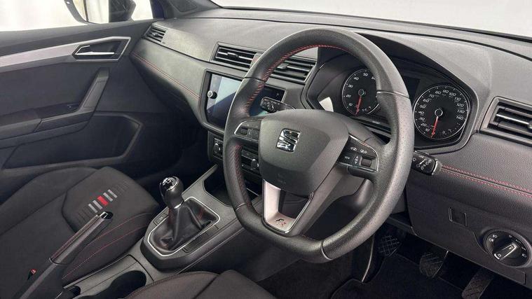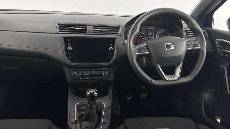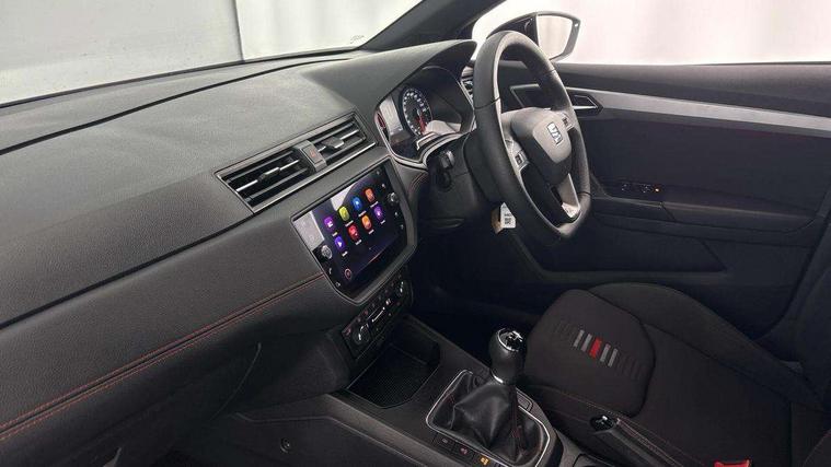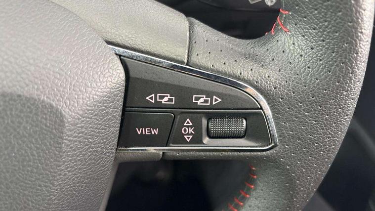 'Lights On' Reminder warning buzzer, Bluetooth audio streaming with handsfree system, Cruise control, Digital clock, Full Link Smartphone Integration with Mirror Link, Apple Car Play, Google Android Auto, Low fuel warning light, Navigation system with 8" touch screen + proximity sensor, voice control and USB type C sockets, Outside temperature gauge, Power Steering, Seat connect with safety, service, remote and online, SEAT Drive profile, SEAT logo boot release, Speed limiter, Trip computer, Sports suspension, 6 speakers, Auxiliary input socket, CD player, Digital Audio Broadcast (DAB) Tuner, Radio/MP3 player, SD card slot, Steering wheel mounted controls, USB (type C) cable for Apple and Android compatibility, Anti theft roof antenna, Auto dimming rear view mirror, Automatic headlights, Automatic rain sensing wipers, Body colour bumpers, Body colour door handles, Brilliant black door mirrors, Brilliant black window surrounds, Chrome front grille frame, Coming/leaving home lighting function, Dark tinted rear windows, Electric folding door mirrors, Electric front windows, Electric headlight adjustment, Electric rear windows, Electrically adjustable and heated door mirrors, Exclusive FR rear bumper, Front/rear fog lights, LED daytime running lights, LED headlights with dynamic headlight range control, LED tail lights, Rear spoiler with twin exhausts, 60/40 split folding rear seat, Ambient interior lighting, Chrome detailing, pearl grey headlining and leather effect door trim panels, Driver's sunvisor with ticket holder/vanity mirror, Dual zone climate control with combination filter, Front courtesy lights, Front cupholders x 2, Front reading lights, Gear shift indicator, Glovebox, Height adjustable driver's seat, Height adjustable passenger seat, Height/reach adjust steering wheel, Illuminated boot, Instrument lighting with brightness control, Leather dashboard, Leather multifunction flat bottomed steering wheel with FR logo, leather gear knob and handbrake, Nora cloth upholstery, Passenger sunvisor, Rear top tether child seat ISOFIX attachment, Sports seats, Two height adjustable front and rear headrests (three in rear), 3 point seatbelts on all 3 rear seats, ABS, Active front headrests, Child locks on rear doors, Curtain airbags, Driver/Front Passenger airbags, ESP+EBA, Front assist (AEB), Front passenger airbag deactivation, Front side airbags, Hill hold control, Multi-Collision braking, Seat belt reminder for front and rear seats, Tiredness recognition system, Tyre pressure monitoring system, Anti theft wheel bolts, Electronic engine immobiliser, Perimeter alarm and interior monitoring with backup horn and tow away protection, Remote central locking + deadlocks, 17" Dynamic alloy wheels,