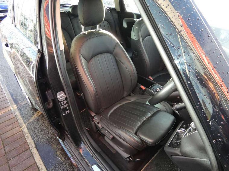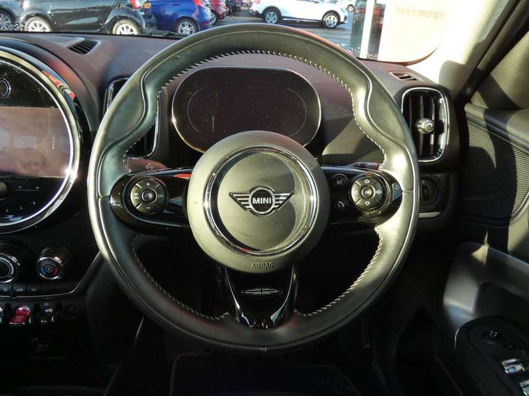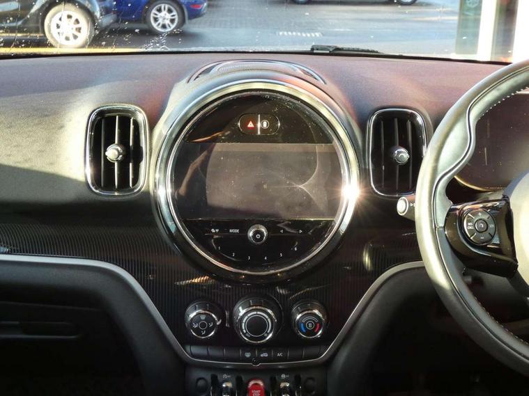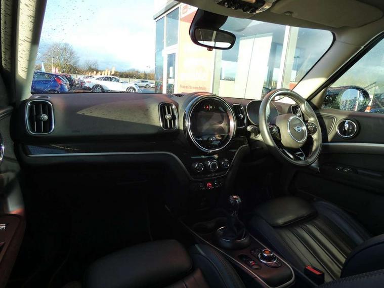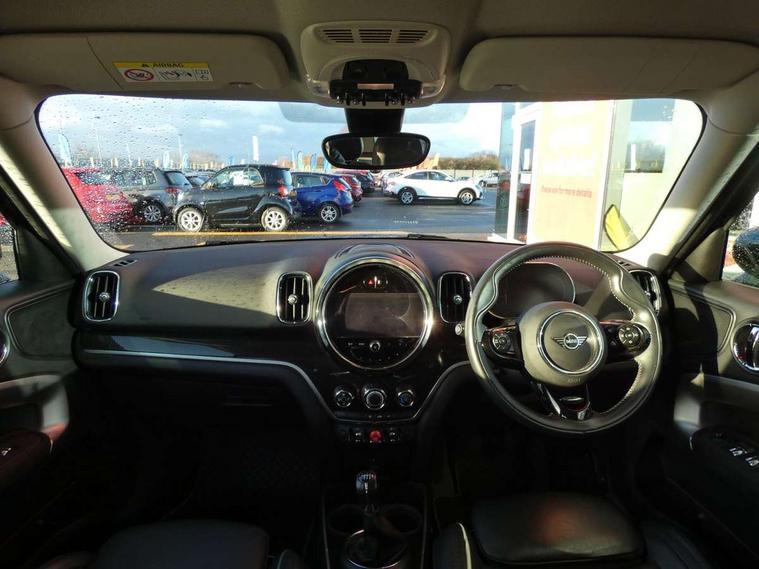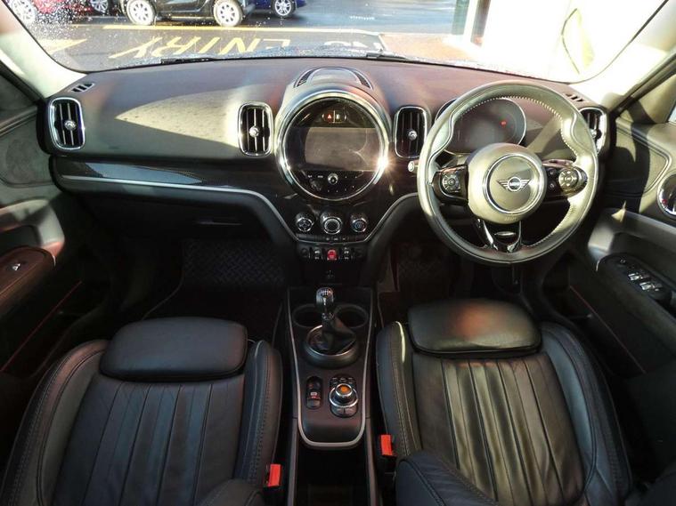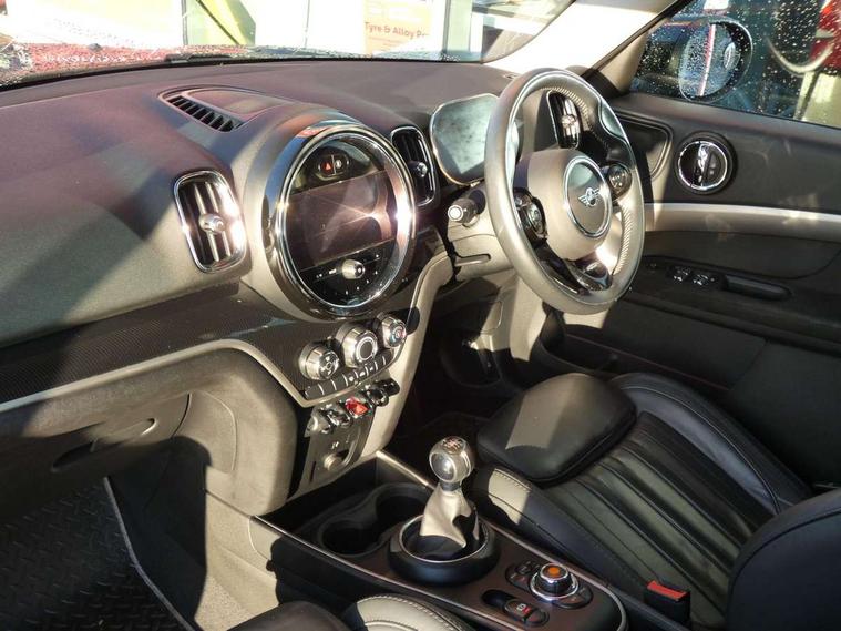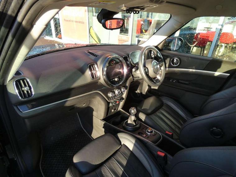 Active Guard incl speed limiting and lane departure functions with auto steering, and front collision warning with brake intervention, Automatic start/stop function with brake energy recuperation, Compatible mobile phone bluetooth with audio streaming, Electro-mechanical speed dependant steering assistance, Instrument cluster, On board computer, Rear parking distance control, 51 Litre fuel tank, 6 Speed manual transmission including gear change indicator display, Double Vanos system, Fully variable valve control, High precision injection, Performance Control, FM tuner and DAB digital radio, Body colour fuel filler cap, Day time driving lights, Door sill strips, Dynamic brake lights, Electric windows, Heated rear window, Heated windscreen washer jets, LED fog lights, LED Headlights, MINI yours exterior badge in C-Pillar, driver and passenger side, Model logo, Model logo on Tailgate, Rain sensor with auto headlights, Rear fog lights, Rear window wiper, Side scuttle panel with integrated indicator, Split rear doors, Sun/heat protection glass, White indicator lenses, 12V socket in centre console, 360L luggage compartment capacity, 4 lashing eyes in luggage compartment, 40:20:40 split folding rear seats, Anthracite headlining with grab handles and clothes hooks, Chrome interior highlights, Colour line - Carbon black, Cupholders, English handbook, Front headrests, Glove compartment, Height and length steering column adjustment, Interior lighting with 12 basic colours selectable via toggle switch in roof, Isofix rear child seat preparation, Leather gearshift lever and handbrake gaiters, LED reading lights, vanity mirror lights, front foot well light and spotlight on front seats, Manual air conditioning, MINI Yours fine walk nappa leather steering wheel with contrast stitching in silver and MINI Yours badge, MINI Yours floor mats, Multifunction steering wheel, Rear headrests, Storage compartments in doors, Sunvisors with vanity mirrors, Excitement pack - Countryman, Navigation pack - Countryman, 2 tone horn, 3 point seatbelts on all seats, 6 Airbags - front, side, head and seat belt tensioners, Anti-lock braking system (ABS), DSC - Dynamic Stability Control, Electronic handbrake, Front and rear disc brakes, Hill start assist, Tyre pressure monitoring system, Alarm system with tilt sensor, monitoring doors, bonnet interior and tailgate, Auto drive away locking, Deadlocking function, Electronic vehicle immobiliser, Locking wheel bolts, Start/stop toggle with keyless go, Tool kit,