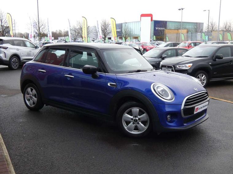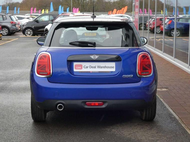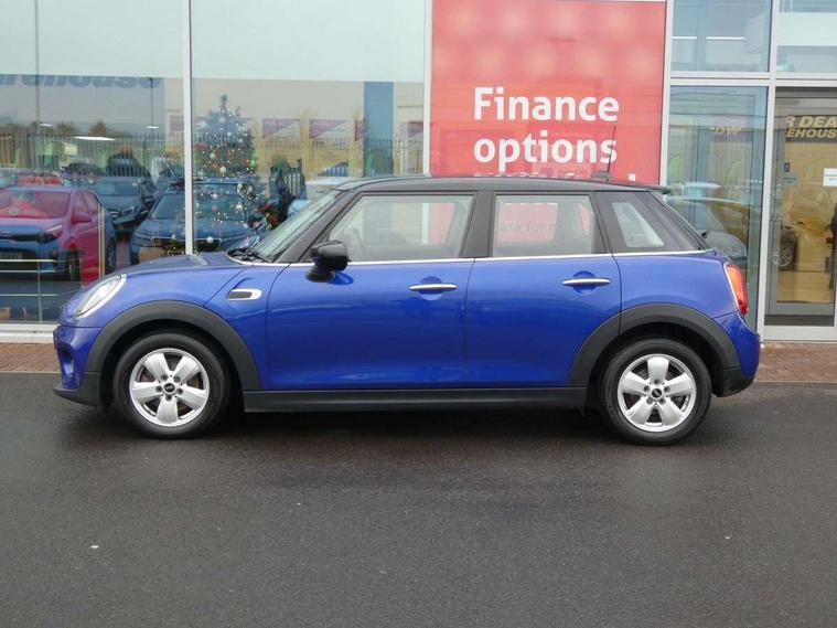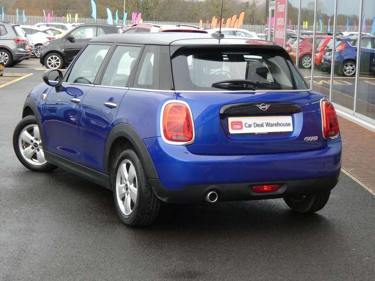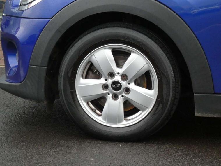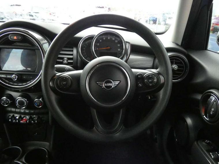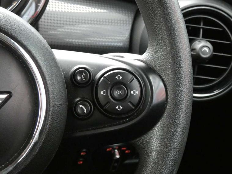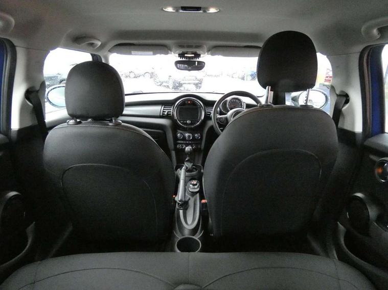 Automatic start/stop function with brake energy recuperation, Compatible mobile phone bluetooth with audio streaming, Electro-mechanical speed dependant steering assistance, Instrument cluster, Mini E-call, MINI TeleServices, On board computer, Service interval indicator, Double Vanos system, Fully variable valve control, High precision injection, 6.5" touchscreen with LED ring, FM tuner and DAB digital radio, Automatic headlight activation switch, Body colour fuel filler cap, Chrome border high gloss black slats radiator grille, Dynamic brake lights, Electric front+rear windows, Heated rear window, Heated windscreen washer jets, LED headlight with closed ring and daytime driving lights, Left exhaust tailpipe with chrome finisher, Metal door sill strips with MINI imprint, Model logo Cooper on right of tailgate, Rain sensor window wipers, Rear fog lights, Rear LED lights with union jack design, Rear window wiper, Side scuttle panel with integrated indicator, Sun/heat protection glass, White indicator lenses, 12V Accessory socket in centre console, 4 lashing eyes in luggage compartment, 60/40 split folding rear seat, Chrome interior highlights, Colour line - Carbon black, Cupholders, Front and rear head restraints, Front and rear isofix with front passenger airbag deactivation, Glove compartment, Height and length steering column adjustment, Interior lighting with 12 basic colours selectable via toggle switch in roof, Leather gearshift lever and handbrake gaiters, LED reading lights, vanity mirror lights, front foot well light and spotlight on front seats, Manual air conditioning, Mechanical seat adjustment, driver seat height adjust, forward/back and front seats backrest, Mini logo projection on floor from drivers exterior mirror, Multifunction steering wheel, Satellite grey headlining, Storage compartments in doors, Sunvisors with vanity mirrors, 3 point seatbelts on all five seats, 6 Airbags - front, side, head and seat belt tensioners, Anti-lock braking system (ABS), DSC - Dynamic Stability Control, Front and rear disc brakes, Hill start assist, Single tone fanfare horn, Tyre pressure monitoring system, Alarm system with tilt sensor, monitoring doors, bonnet interior and tailgate, Electronic vehicle immobiliser, Start/stop toggle with keyless go, Tool kit,