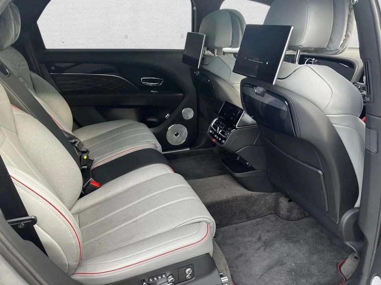 10.9" touch screen high resolution and configurable infotainment display and digital drivers information display, Advanced navigation function with text, search, 3D, satellite maps, speed limit, dynamic traffic route guide, telephone, Text-speech + voice, Bentley GPS tracking system full fitment, Bentley safeguard plus, Blind spot assist, Bluetooth and WIFI enabled, Emergency services call system, Four drive dynamics modes (bentley, comfort, sport, custom), Front/rear park distance control, Hands free power tailgate, MMI Screen, Mulliner clock, Mulliner driver's information panel graphics, My Bentley connected car services, Power latching to all doors for easy entry, Redesigned instrument panel lower trim rolls, incorporating a storage compartment on the passenger side, Seamlessly integrated technology with wireless apple car play and android auto, Speed sensitive variable ratio electric power steering, Touch screen remote, Traffic jam assist, Voice control system, Wireless phone charging compartment, Air suspension with continuous damping control, Bentley Dynamic ride with electronic all wheel steer, Permanent all wheel drive with centre torsen differential, DAB Digital radio, 3rd brake light, Acoustic rear privacy glass, Adaptive low beam, Auto dimming rear view mirror, Automatic headlights, Bentley badge in tailgate opening switch, Bentley lettering under the wings in tailgate, Black painted shark fin aerial, Body coloured lower bodywork - Standard paint range, Bright chromed matrix style grille to lower bumper apertures, Bumper design with large side intakes and sculptured surfaces, Elec/heat/adj/fold door mirror+memory, Electric tilt/slide panoramic sunroof, Fender design reduces over bodied perception, Fixed rear spoiler, Front and rear fog lamps, Full LED supplementary lamps and tail lamps, Full matrix LED headlamps with high beam assist, Full width clamshell design and deeply contoured rear tailgate panel, Heated rear windscreen, Illuminated treadplates, Jewel fuel and oil filler caps, Large dominant B shaped side wing vent front position, LED daytime running lights, Long fender vent above the power line on body side, Lower door side mouldings, Mulliner animated welcome lamps, Mulliner double diamond radiator grille bright, Mulliner self levelling wheel badge, Mulliner wing vent, Number plate aperture position under rear bumper, Oval split tailpipe, Phone antenna amplifier, Power close rear door, Rain sensing wipers, Rear side wing doors, Rear wiper, Roof rails, Satin monobeam silver painted mirror caps, Trailer sway mitigation, Tunnel detection for auto light control, V8 exterior badge, Wet arm wipers and heated water jets, 12V power in rear centre console, 12V socket in glovebox, 12V socket in luggage compartment, 3 seat bench in 2nd row, 4-Zone HVAC, Air Ioniser, Deep pile overmats to front and rear, Dinamica headlining and upper trim, Electric tilt and reach adjustment steering column with memory and easy entry function, Electronic accessory preparation, Embroidered Bentley emblems, Foams and cover design on all seats, Folding luggage compartment cover, Front and rear cupholders, Indented steering wheel, Interior mood lighting, Isofix attachments on outer rear seats, Load through facility, Lockable cooled glovebox, Luggage rails, Mulliner 3 colour key box and pouches, Mulliner seat embroidery, Rear dual window switches, Rear seat climate control, Single front passenger seat, Sports pedals, Stowage with instrument panel, doors (front and rear), armrests and console, Twin front armrests, Two metal bulls eye vents with organ stops and redesigned centre vents, Two type C USB ports front and rear, Wing pockets for small items, 4+1 seat configuration pack - Bentayga, Bentley airline seat specification pack - Bentayga, Bentley diamond illumination pack - Bentayga - Mulliner EWB, Harmony diamond quilt specification pack - Bentayga, Touring specification pack - Bentayga, 3 rear seatbelts, ABS/EBD, Child safety lock, EDL, Electronic park brake with move-off assist, Electronic tyre pressure monitoring, ESP + MSR + ASR, Exit warning, Front and rear head airbags, Front and rear thorax airbag system, Front passenger airbag deactivation, Front seatbelt pretensioners with force limiters, Hill descent function, Hydraulic Brake Assist (HBA), Rear outer seatbelt pretensioners with force limiters, Rollover mitigation, Side airbags, Traction control, Immobiliser, Keyless entry, Keyless ignition, Preparation for vehicle tracking, Remote central locking, Volumetric anti theft alarm, Mulliner 3D diamond milled finished to centre console, Veneered centre fascia panel, 22" Summer tyres,