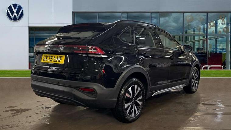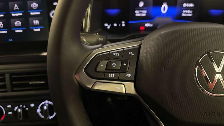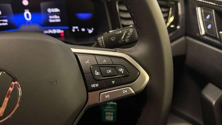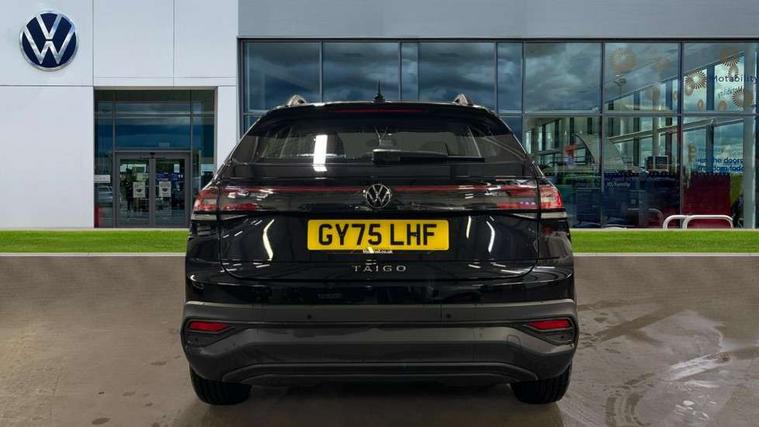 8" Digital cockpit basic display, Advanced driver attention and drowsiness monitor, Dynamic road sign display, e-Call (emergency call), Power Steering, Predictive adaptive cruise control, Travel assist including emergency assist, Washer fluid level indicator, Wireless Charging including Bluetooth, Start-stop system with battery regeneration (recuperation - energy recovery during braking), Digital radio reception (DAB+), WeConnect plus, Ambient lighting with logo projection, Aspherical driver's exterior mirror, Auto headlights, Body coloured bumpers, Body coloured exterior mirror housings and door handles, Electric windows, External USB type C socket and charging sockets, Heat insulating glass windscreen, LED rear combination lamp, LED third brake light, Left convex exterior mirror, Power folding adjustable/heated exterior mirrors and front passenger exterior mirror lowering function, Rear fog light on one side, reversing light on both sides, Rear side wing doors, Rear wash/wipe with intermittent wipe setting, 'Slash/ Austin' Cloth upholstery, 12V socket in centre console, 2 front reading lights, 3 rear head restraints, 3 seat bench in 2nd row, Black carpets, Child seat anchor for child seat system i-Size, 2x top tether and child seat anchor in front on front passenger side, Door and side trim panels in titan black, Driver and front passenger seat height adjustment, Front centre armrest, Handbrake lever handle in leather, Height and reach adjustable steering wheel, Leather trimmed gear knob, Leather wrapped multifunction steering wheel, Luggage compartment floor, Luggage compartment light, Lumbar support for driver's and front passengers seat, Seat covers in titanium black, Single front passenger seat, Split folding backrest with centre armrest and unsplit rear seat bench, Storage compartment under front seats, Sun visors with illuminated vanity mirrors, Chrome Package - Taigo, Drivers assistance pack - Taigo, Light and Sight pack including High beam assist - Taigo, 2 x 3-point seatbelts/outer rear seats with ECE label, 3-point seat belts in front with pretensioner and height adjustment, 3-point seatbelt for centre rear seat, Adaptive driver and front passenger airbags with passenger airbag deactivation function, Driver and front passenger airbags with front passenger airbag de-activation, front side and curtain airbags, Driver and front passenger safety-optimised head restraints, Electronic stability control, Extended and predictive pedestrian/ cyclist protection, Front and rear disc brakes, Front curtain and side airbags with center airbag, Hill start assist, Manual rear child locks, Single tone horn, Tyre pressure loss indicator, Anti-theft alarm system with interior monitoring, backup horn, and towing protection, Lava stone black gloss/matt decorative inserts in dash and front door panels, Low rolling resistance tyres,